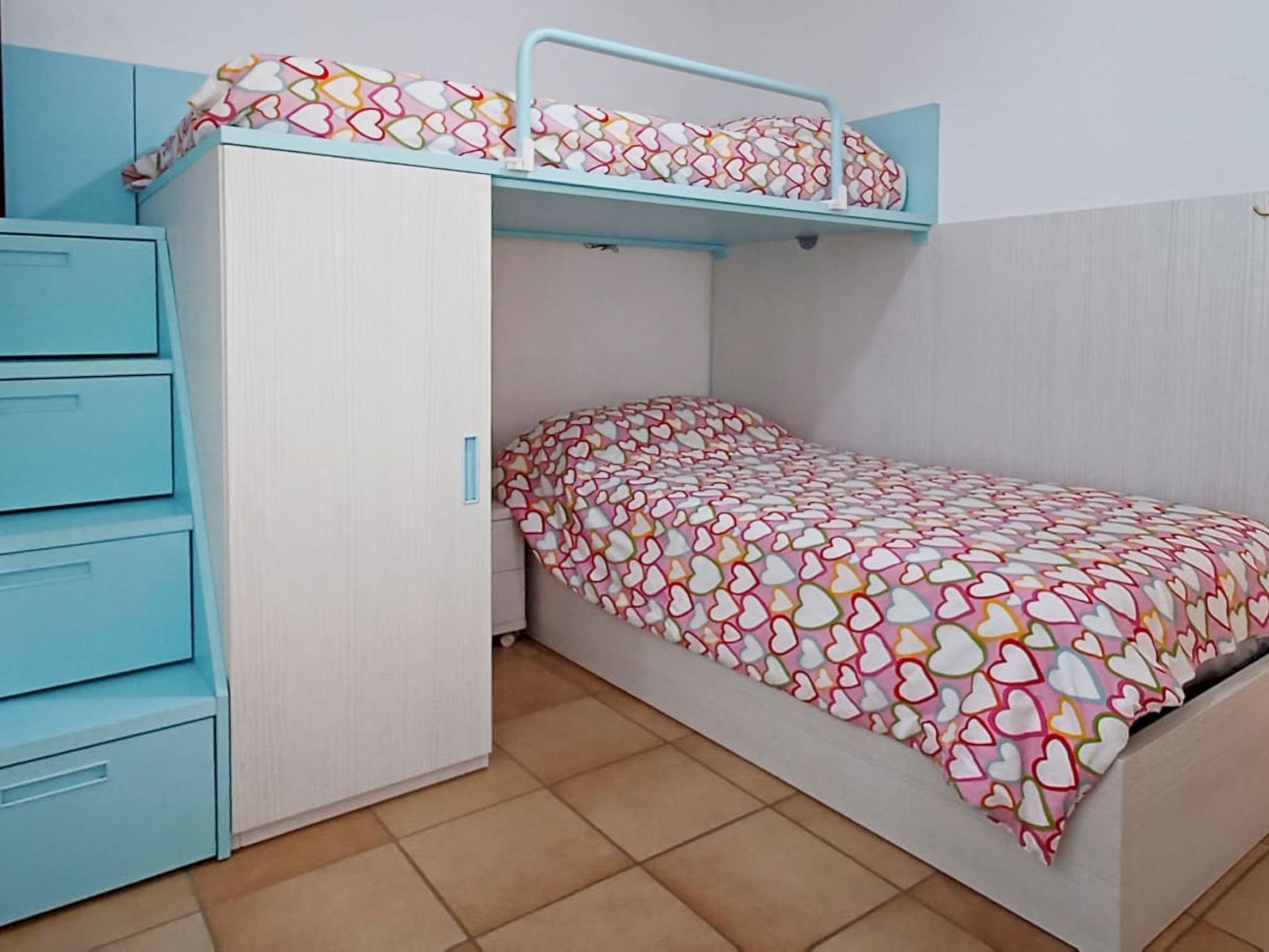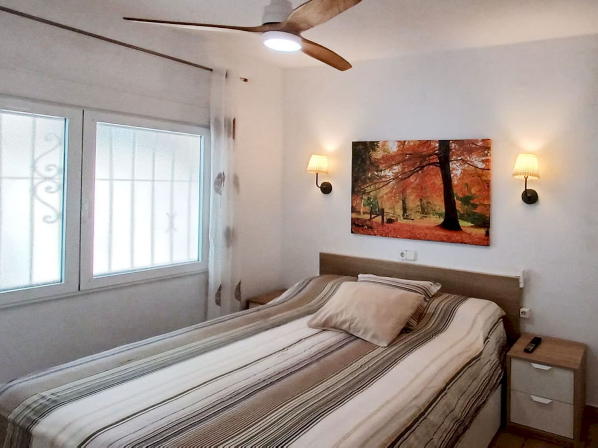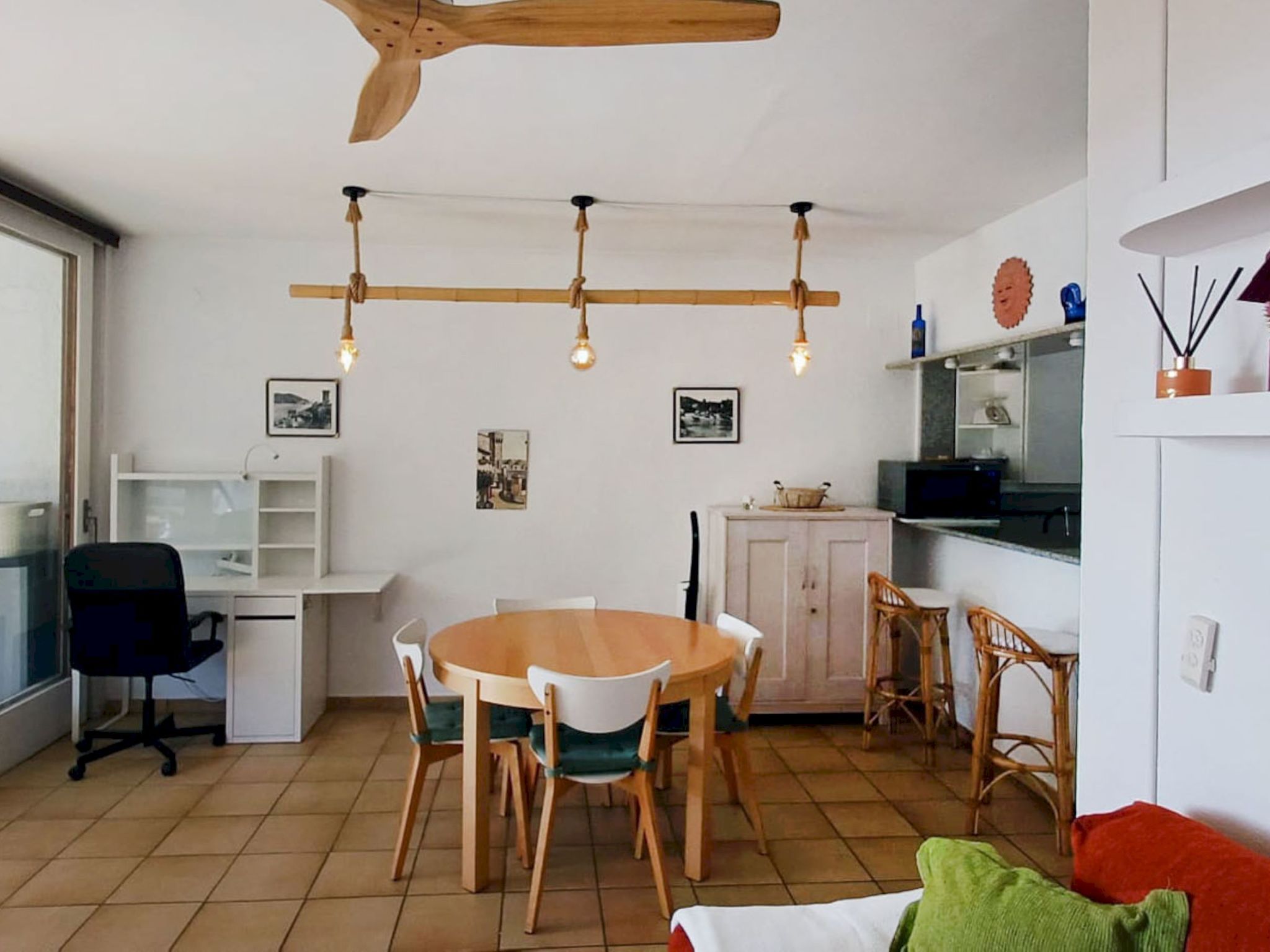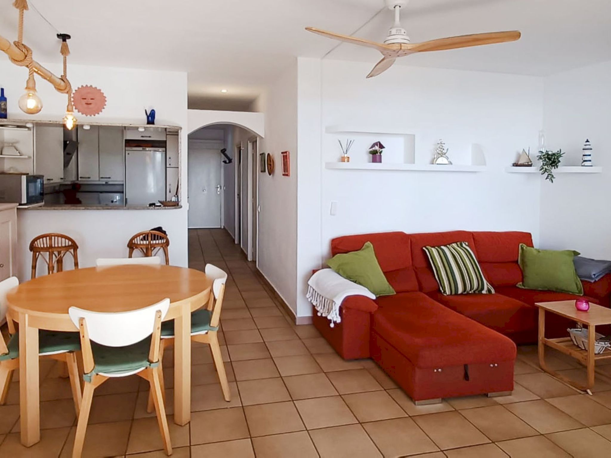 "Too Menuda", 4-room apartment 60 m2. Spacious and bright, practical and stylish furnishings: 1 double bedroom, window onto the courtyard with 1 french bed (150 cm, length 200 cm), fan. 1 room with 1 x 2 bunk beds (90 cm, length 190 cm), fan. Living/dining room. Large, open kitchen (oven, dishwasher, 4 ceramic glass hob hotplates, toaster, kettle, microwave, freezer, electric coffee machine) with dining table, satellite TV, digital TV and international TV channels. Exit to the patio. Shower/WC, sep. WC. No heating option. Large terrace 20 m2. Terrace furniture. View of the sea. Facilities: washing machine, iron, hair dryer. Internet (WiFi, free). Parking (1 car). Please note: suitable for families. Maximum 1 small pet/ dog allowed. TV only ES. No lift. HUTG-020139 // Reg. Nr.: ESFCTU000017021000423750000000000000000000000000201393