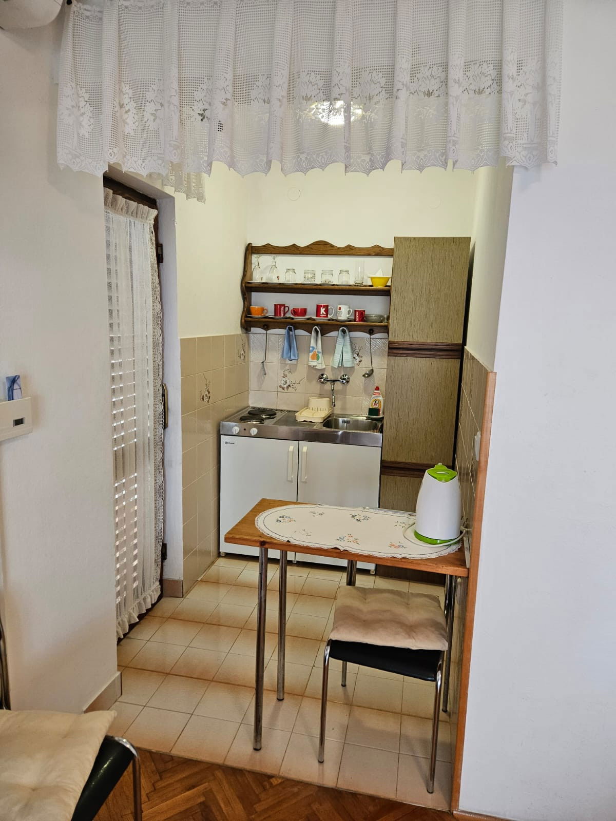 Nestled in the charming coastal village of Tribunj, this cosy apartment offers a perfect retreat for couples or solo travelers seeking a peaceful Croatian getaway. The compact 34 square metre space is thoughtfully designed to maximize comfort and convenience, featuring a queen-size bed and a supplementary bed to accommodate up to two adults and one child.