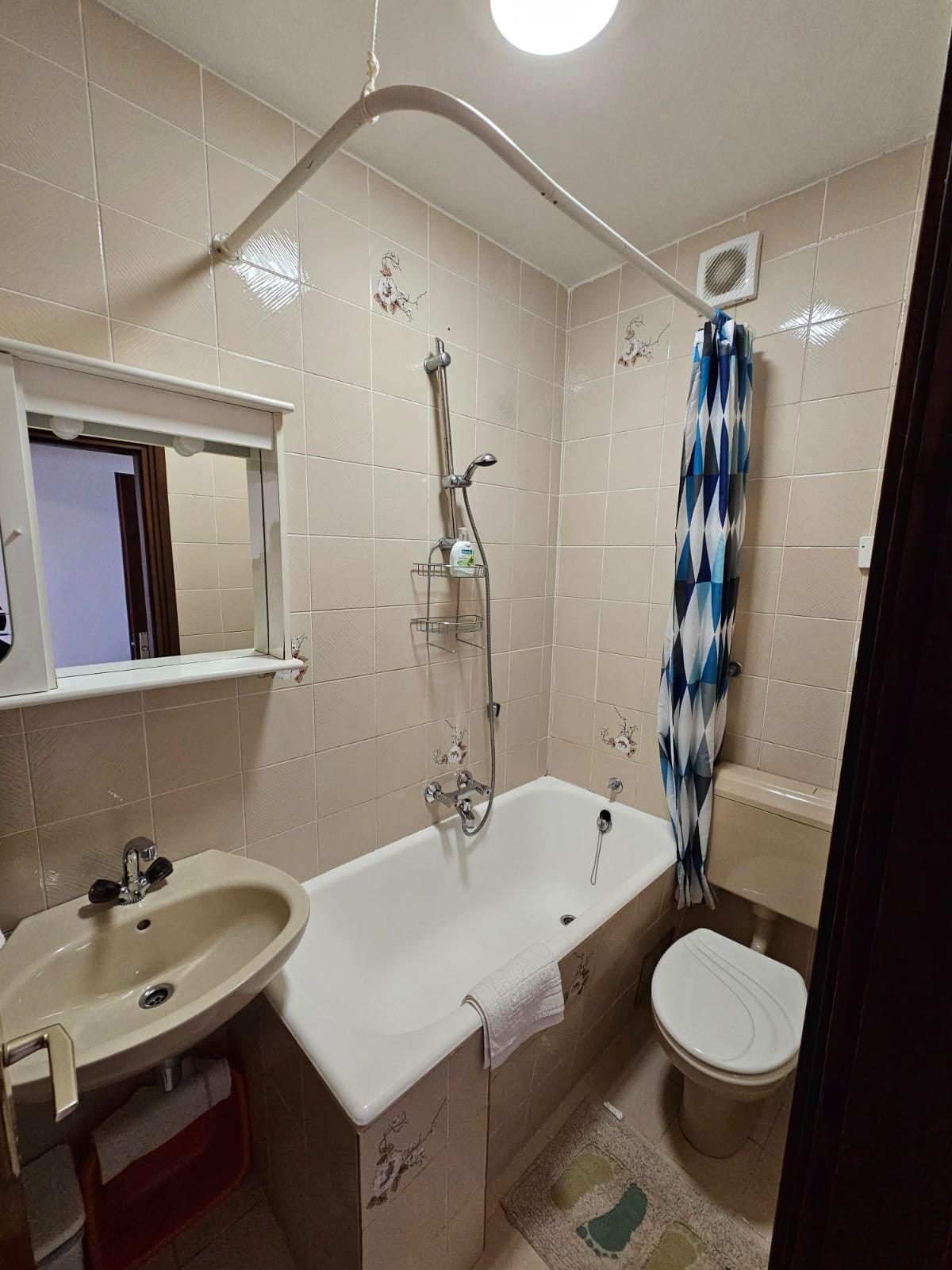 The apartment boasts a fully equipped independent kitchen with modern amenities including a fridge, freezer, washing machine, coffee machine, microwave, and essential kitchenware. A comfortable living area with a TV ensures entertainment and relaxation after a day of exploring. The air-conditioned space provides welcome relief during warm summer days, while complimentary WiFi keeps you connected.