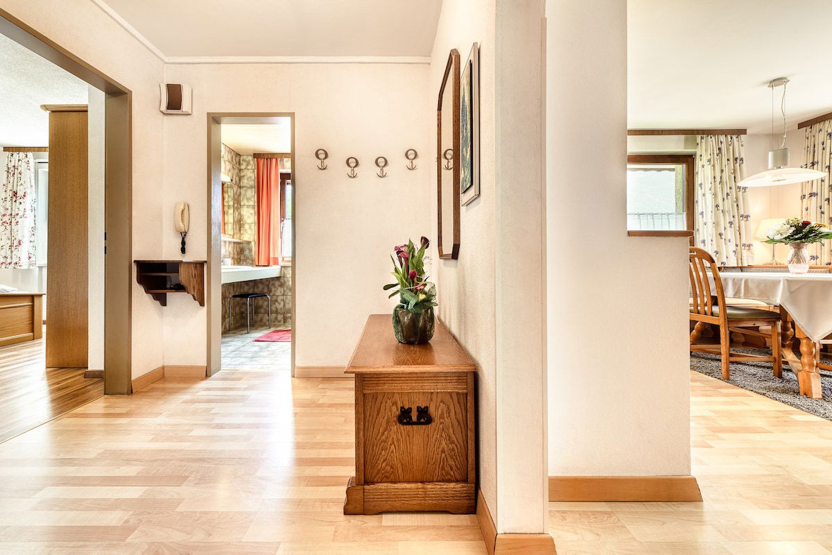 Look forward to holiday apartments, each with its own balcony. The rustic and alpine holiday apartments offer a living room with satellite TV and a very well equipped kitchen with dishwasher. The private bathroom has a shower or bath. Landhaus Mäser also offers free private parking. You can store your skis next to our new ski boot dryer. In the basement, a table tennis table invites you to a brisk game. Free WiFi is also provided for you.