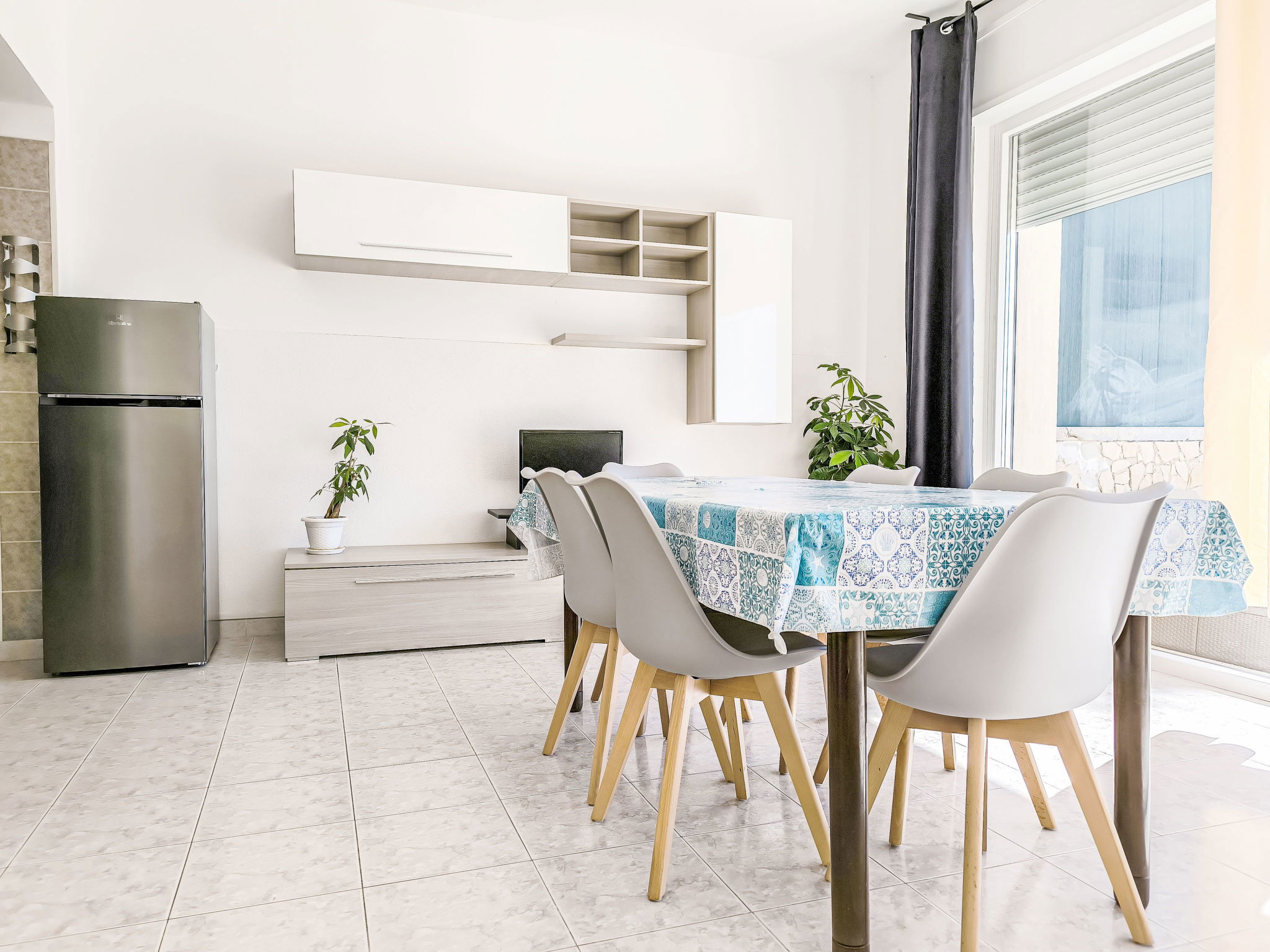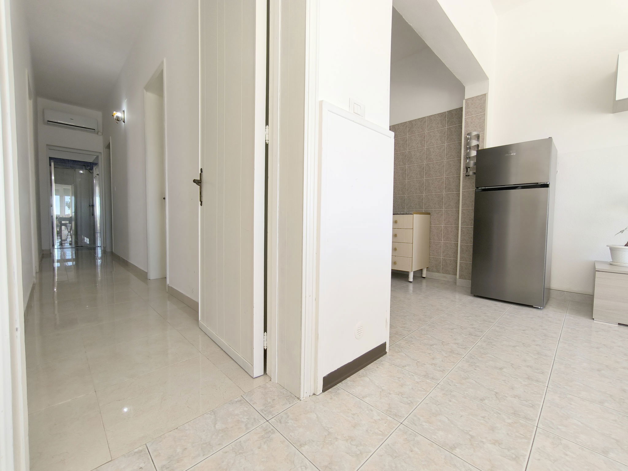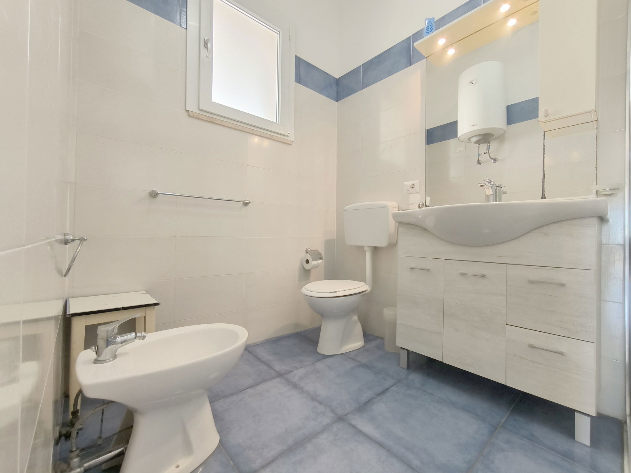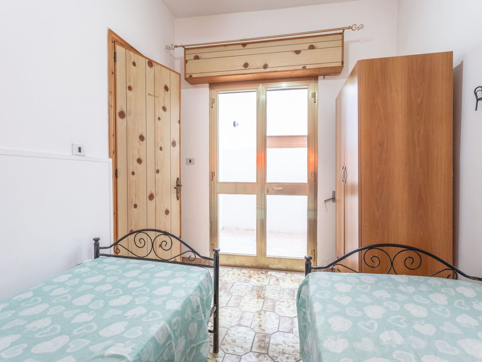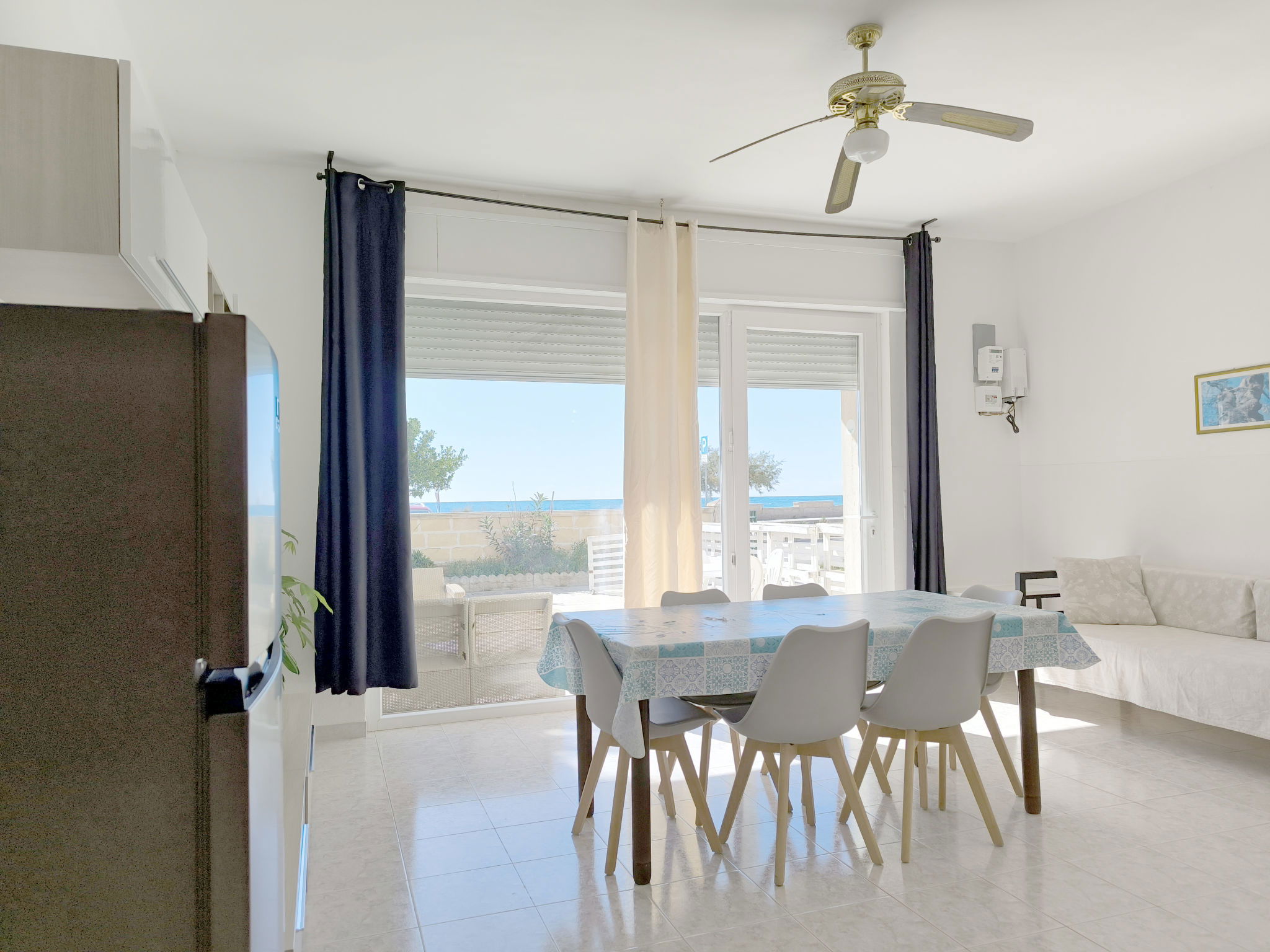 3-room apartment 65 m2, on the ground floor. Practical furnishings: living/sleeping room with 1 sofabed, dining table and fan. Exit to the patio. Walk-through room with air conditioning and forced-air heating. 1 room with 1 double bed and fan. 1 room with 2 beds and fan. Open kitchen (oven, 4 gas rings). Shower/bidet/WC. Heating not available in all rooms. Patio. Terrace furniture. View of the sea. Parking (fenced 1 car) at the house. Please note: maximum 1 pet/ dog allowed. Private entrance. IT075090C200101545
