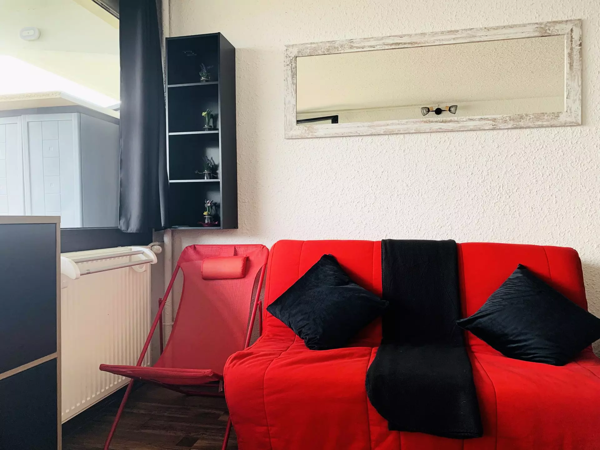 COMMENTS: Charming studio with parquet flooring, new kitchen and window (2023). Ideal for a mountain stay, located close to the slopes and shops. Beautiful balcony with panoramic views of the entire valley. Individual ski locker at the entrance level.