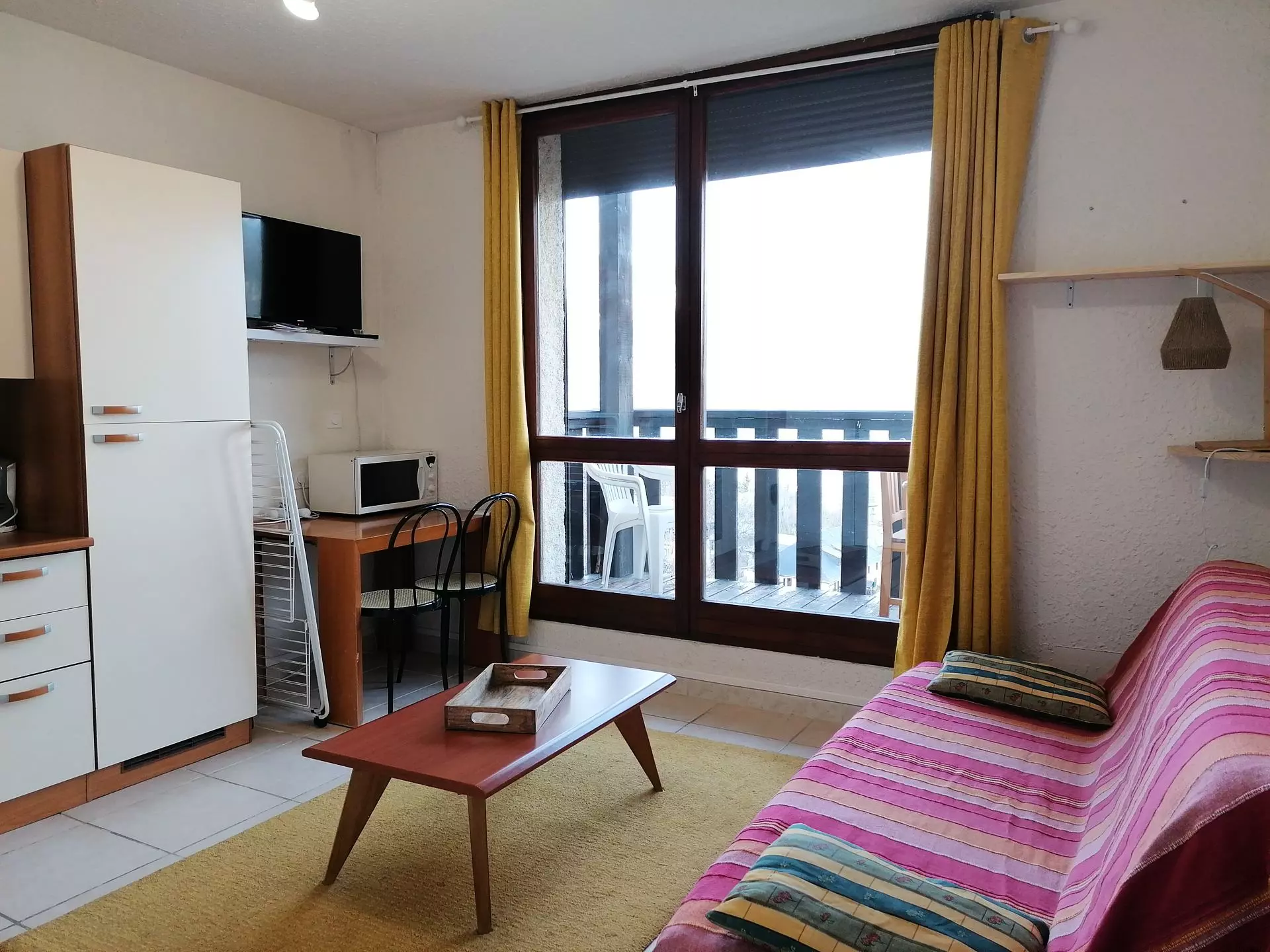 COMMENTS: Very pleasant, sunny little studio with a beautiful view of the mountains. Direct access by stairs to the main station of the Molanès cable car. Tiled floor. Ski box.
