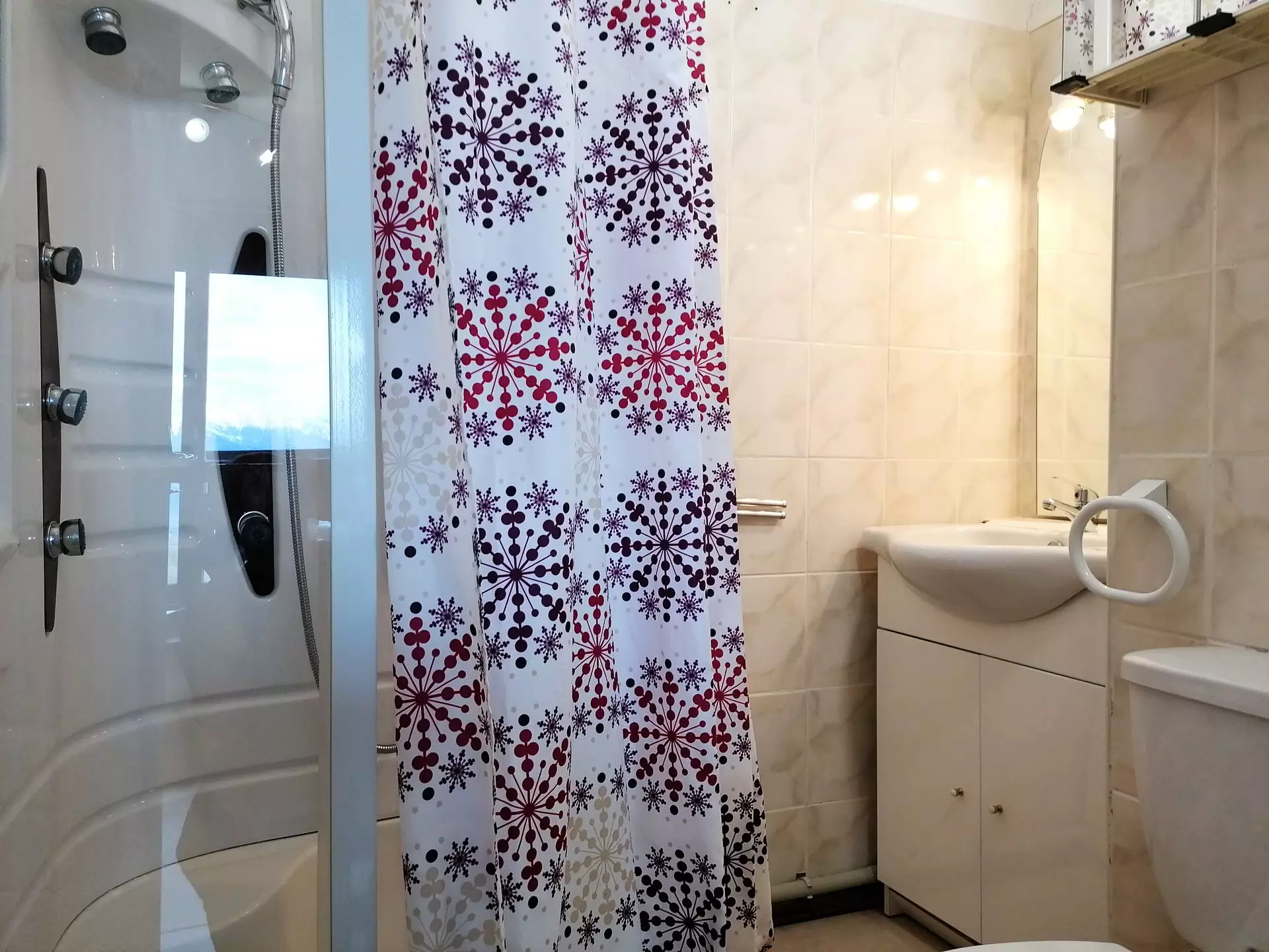* Bathroom with shower cabin and WC, hairdryer, fully renovated.