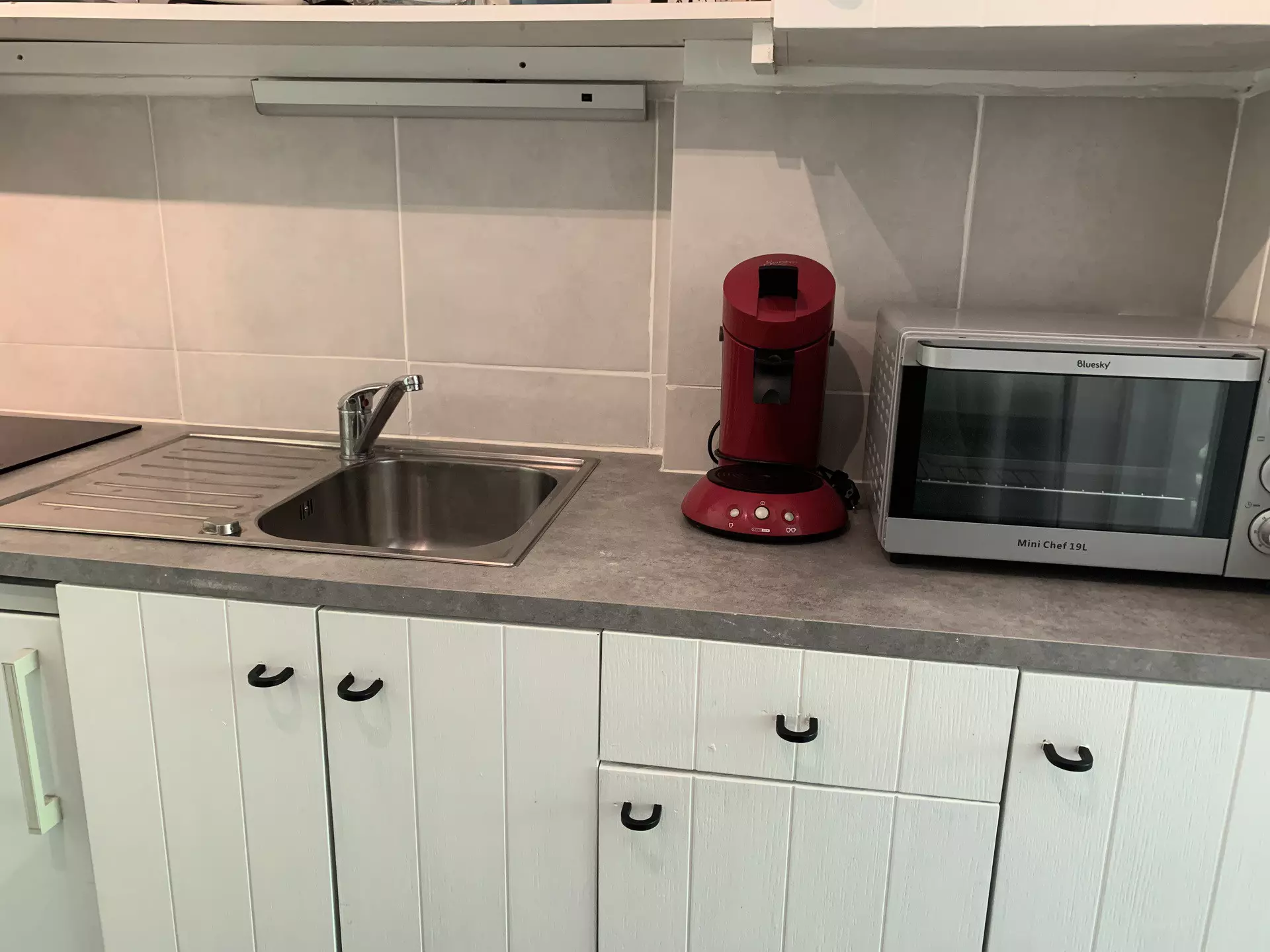 * Kitchenette: refrigerator, 2 electric hotplates, mini oven, microwave, Senseo coffee maker, kettle, toaster, raclette machine, plancha;