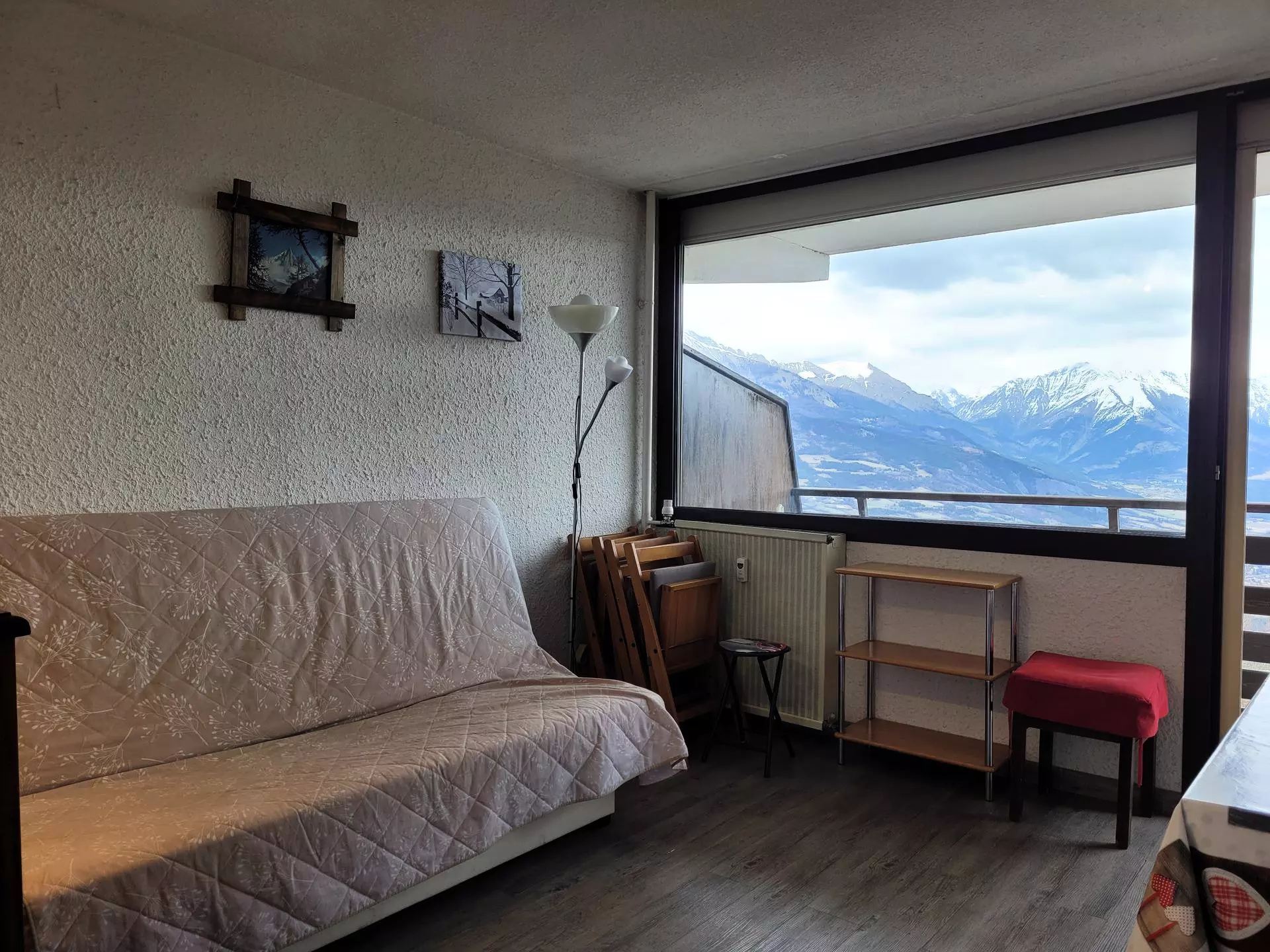 Studio for 2 to 4 people, approximately 24 m². Located on level 2 of the valley, i.e., the second basement via elevator. North/East facing with a balcony and a beautiful view of the valley.