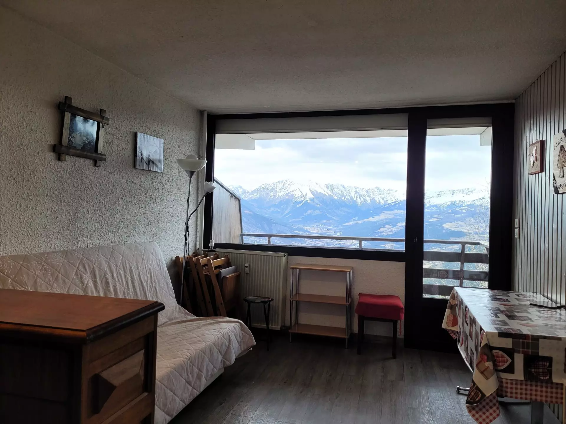 COMMENTS: Pleasant studio with a magnificent panorama of the surrounding mountains and the valley. Duvets and blankets. Hardwood floors. Communal heating and hot water. Ski box required. Close to the slopes.