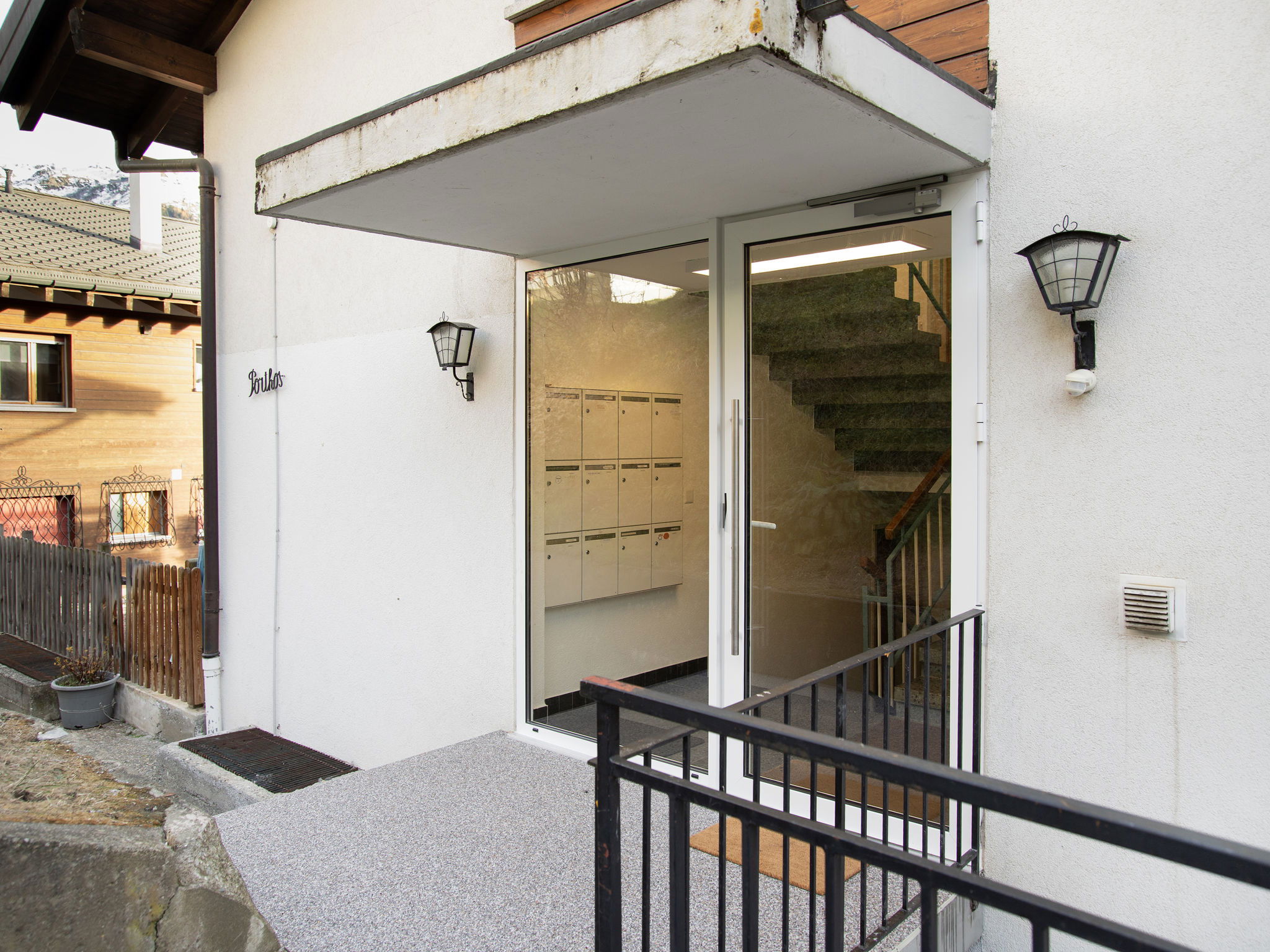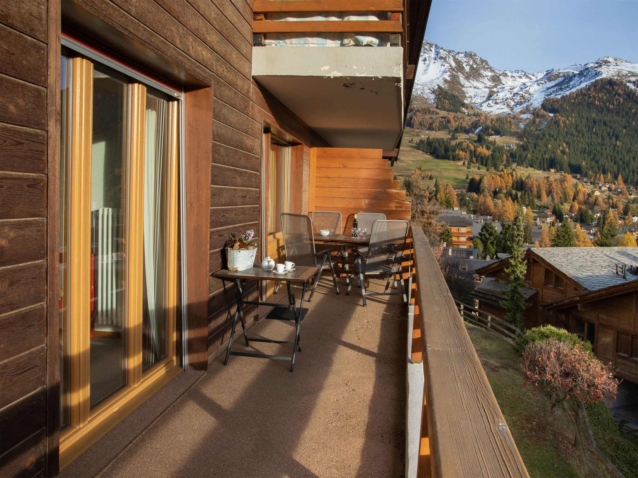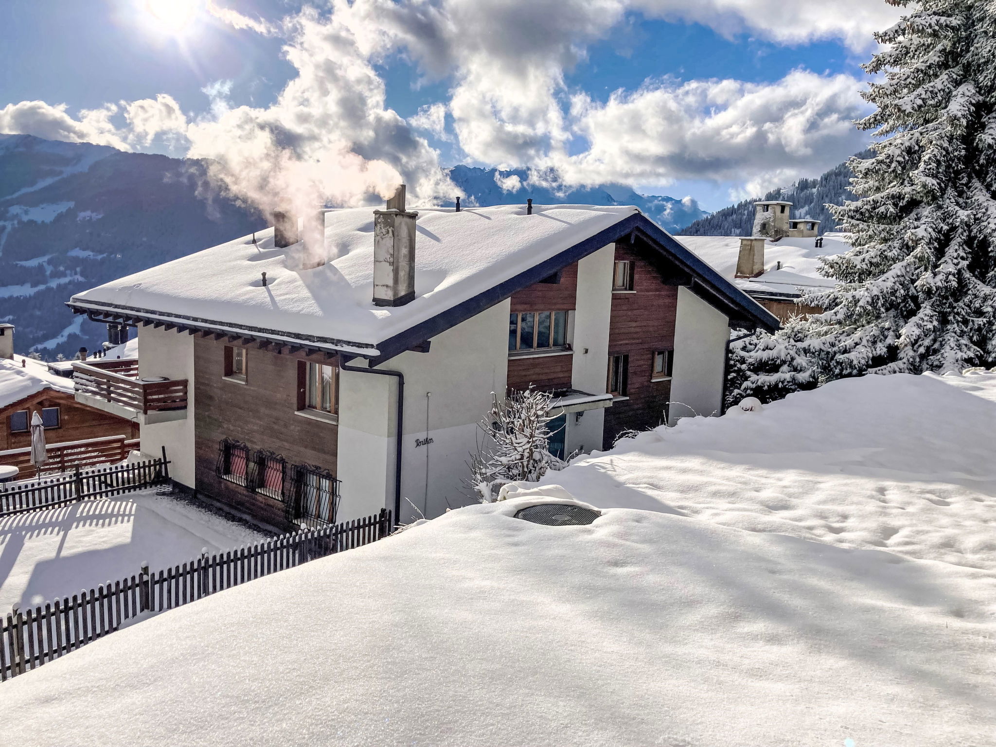 Verbier: Apartment house "Porthos". In the district of Savoleyres, in the resort 1 km from the centre of la station, in a quiet, sunny position, in a cul-de-sac, south facing position. In the house: storage room for skis, central heating system. Motor access to 150 m from the house. Stepped path (75 steps) to the house. Public parking 2 km. Shop 1 km, supermarket 1.4 km, restaurant 300 m, bar 1 km, bakery 50 m, café 1 km, bus stop "Savoleyres" 50 m, indoor swimming pool 1.4 km. Golf course (18 hole) 1.9 km, tennis 1.4 km, riding stable 1.4 km, sports centre 1.4 km, skisport facilities 1.3 km, ski school 1.2 km, ski-kindergarten 1.2 km, ice rink 1.4 km, children's playground 1 km. Free ski bus service to the ski region Médran 1,3km, Savoleyres 0,5km et and Le Carrefour 1,9km.