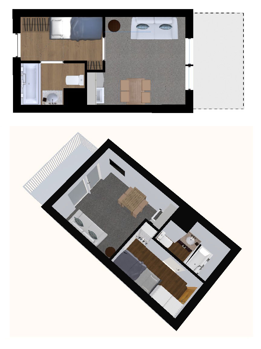 Well-equipped and functional villas, chalets and apartments with garden or terrace.