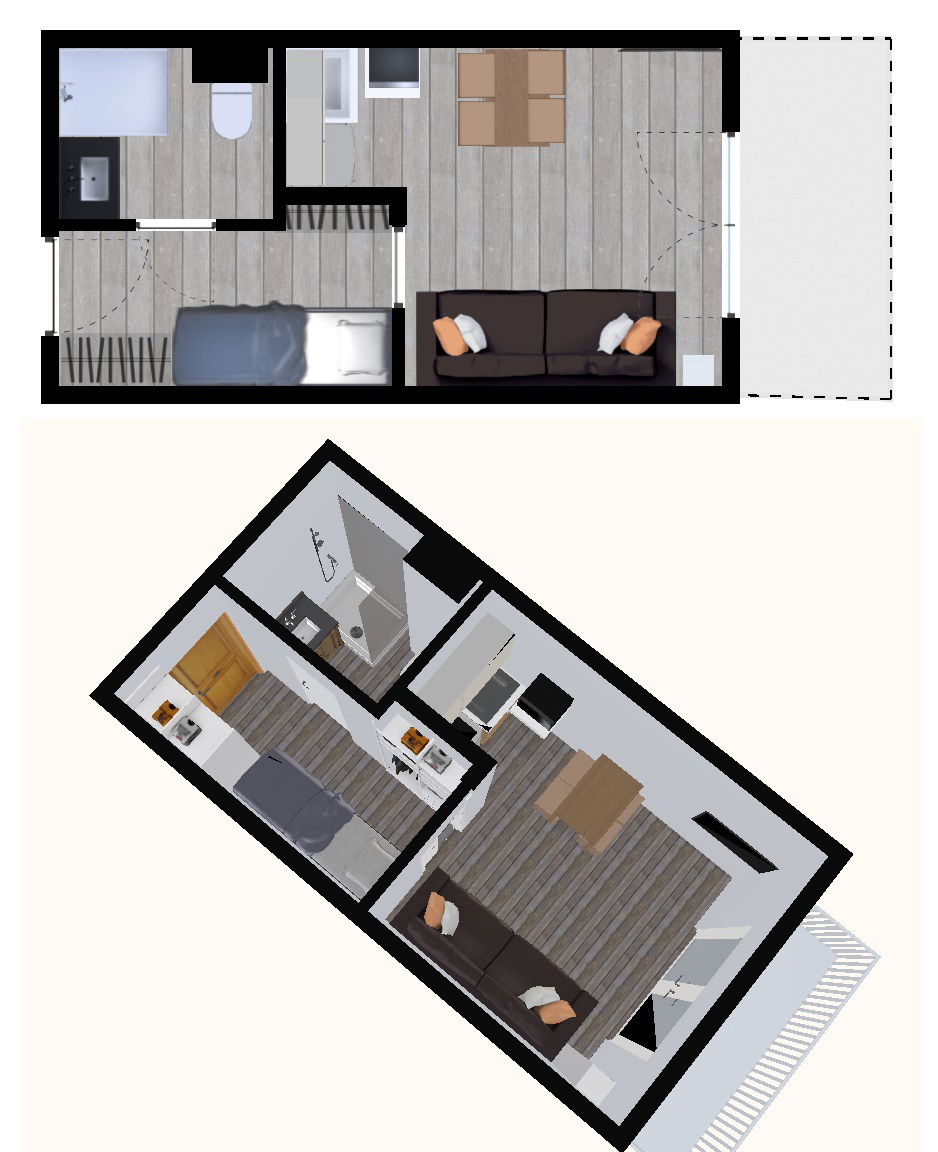 Studio of 18m2 for 3 people