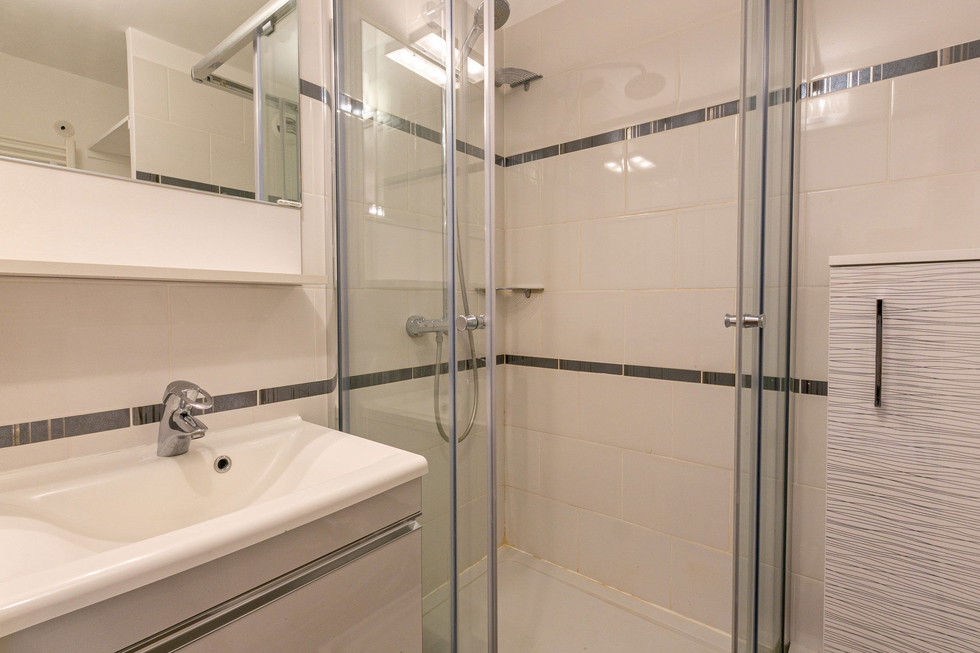 Closed by a sliding door