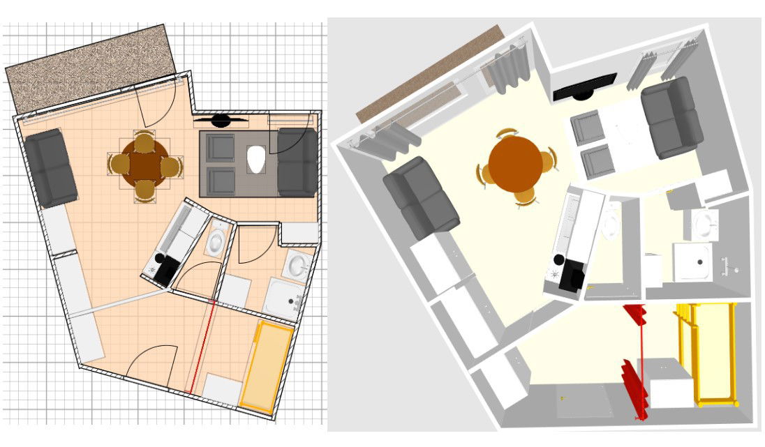 2 rooms with mountain corner of 32m2 which can accommodate 6 people