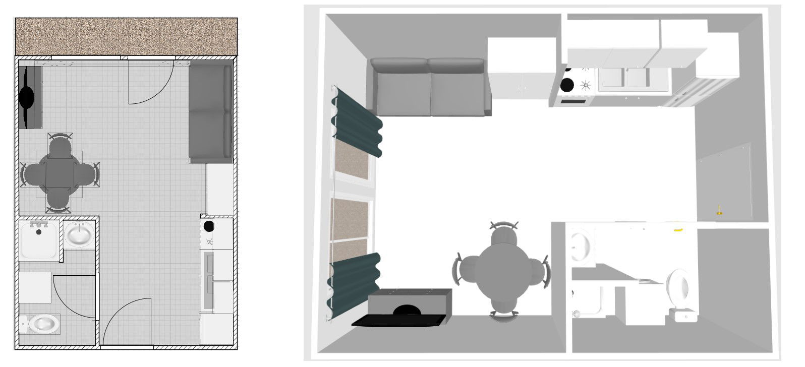19 m2 studio that can accommodate 2 people On the 3rd floor of the residence...