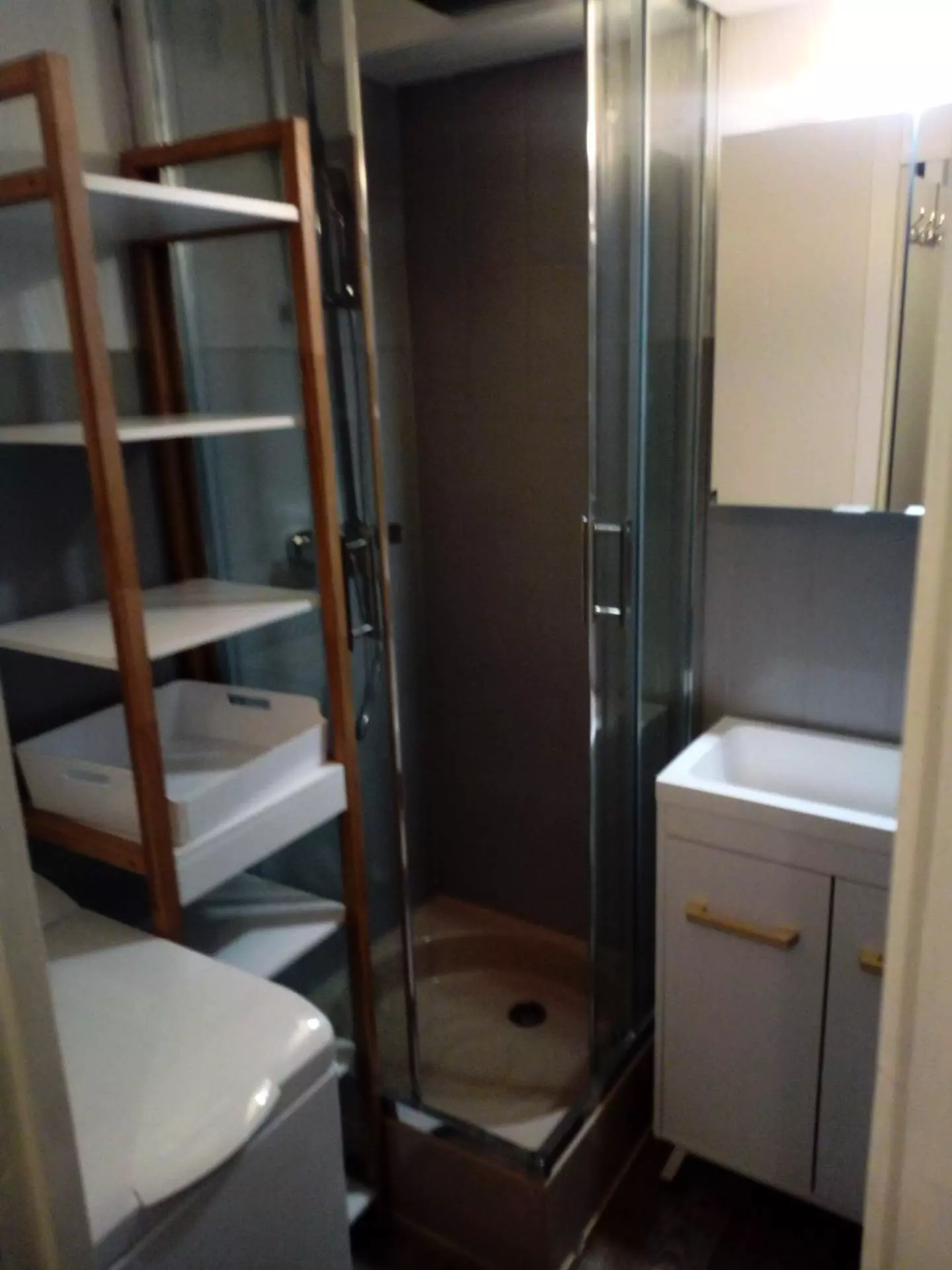 Bathroom: shower, sink, hairdryer, washing machine. Separate WC.