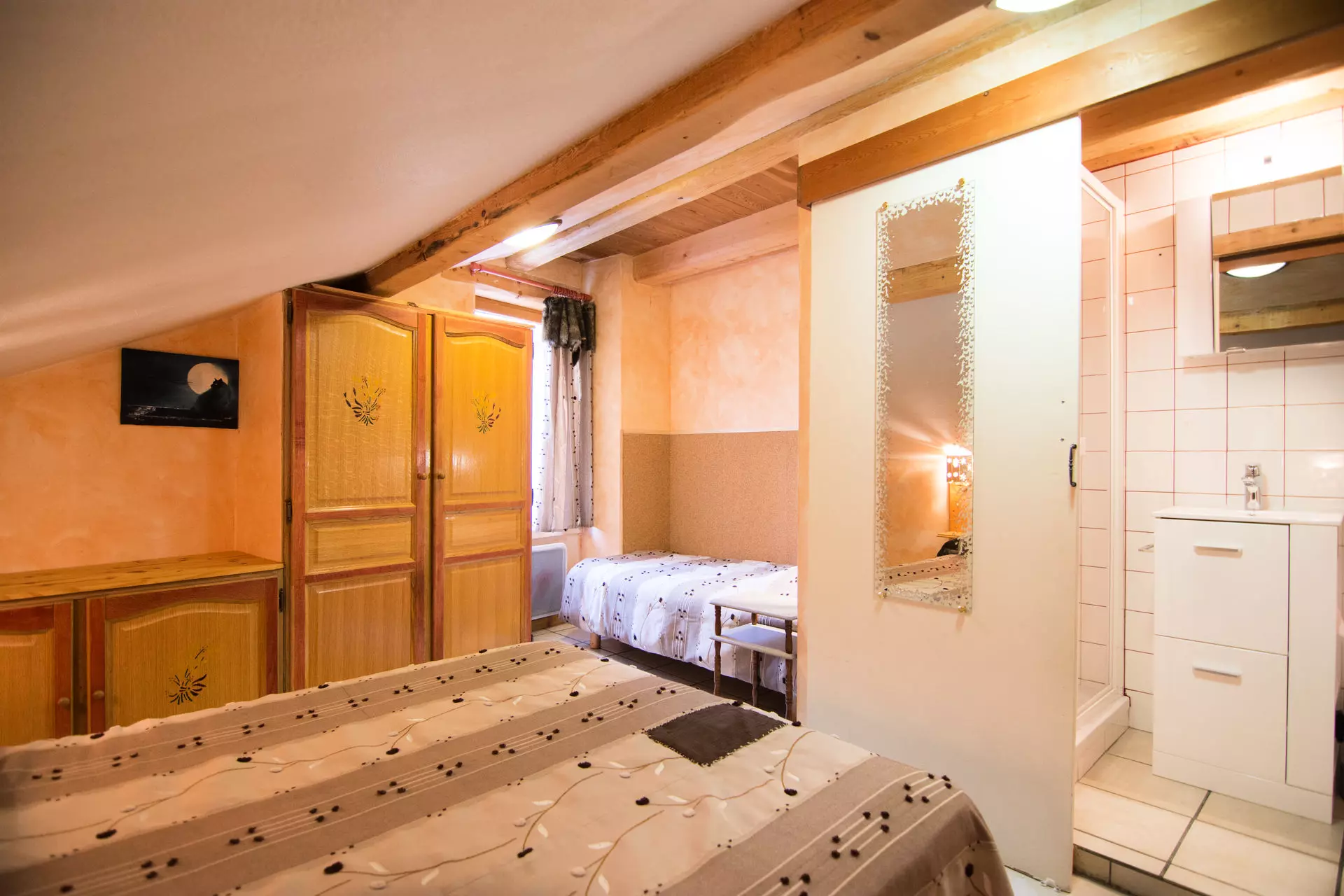 Bedroom 1 (11m²/ East): 1 double bed (140x190cm) + 1 single bed (80x190cm) + shower room