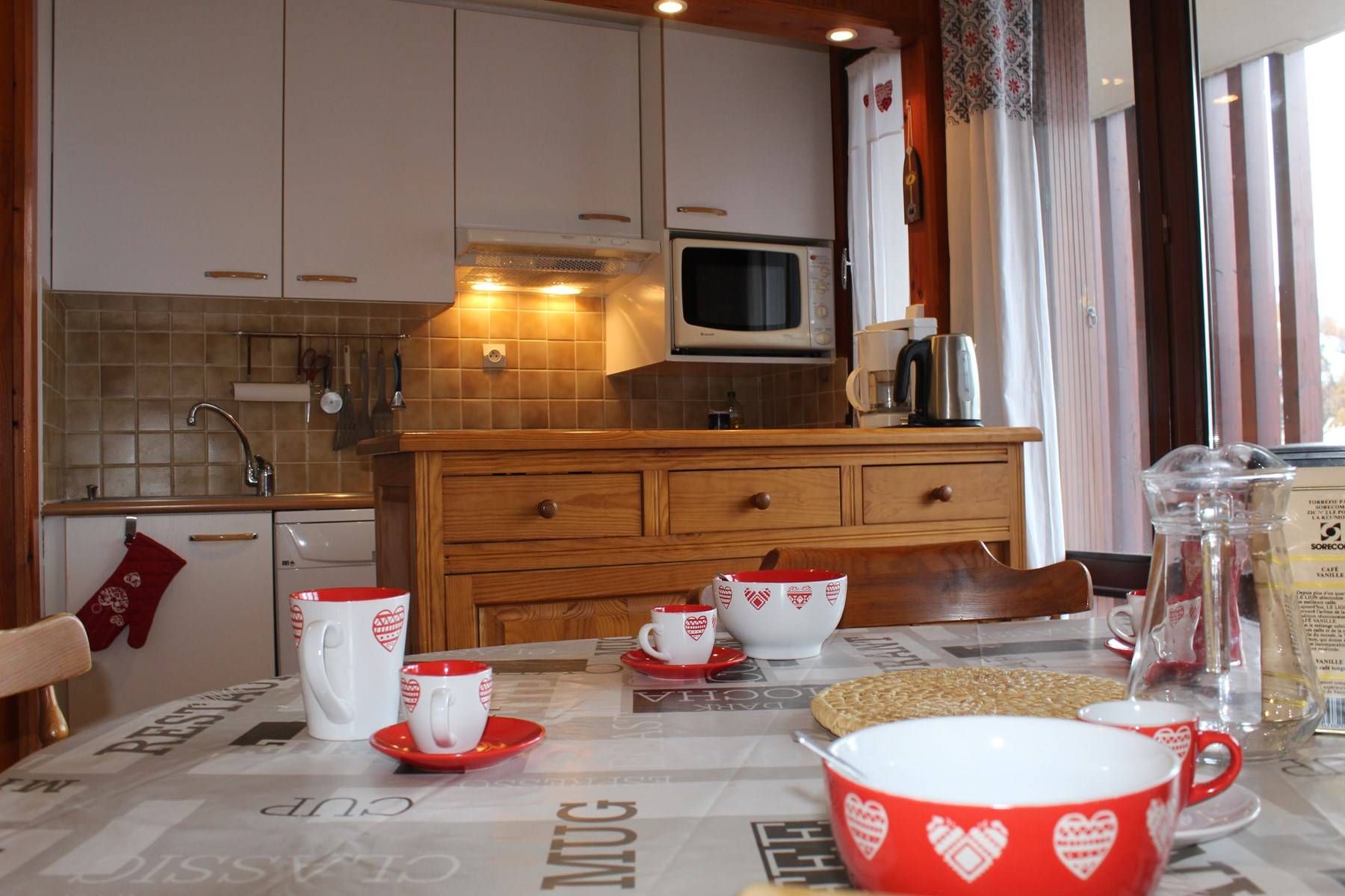 Accommodation: This vacation rental includes two two-seater convertible sofa beds in the living room, an equipped kitchen area and a balcony. In the entrance you will find the mountain corner with two single bunk beds. And a bathroom with shower and separate toilets.