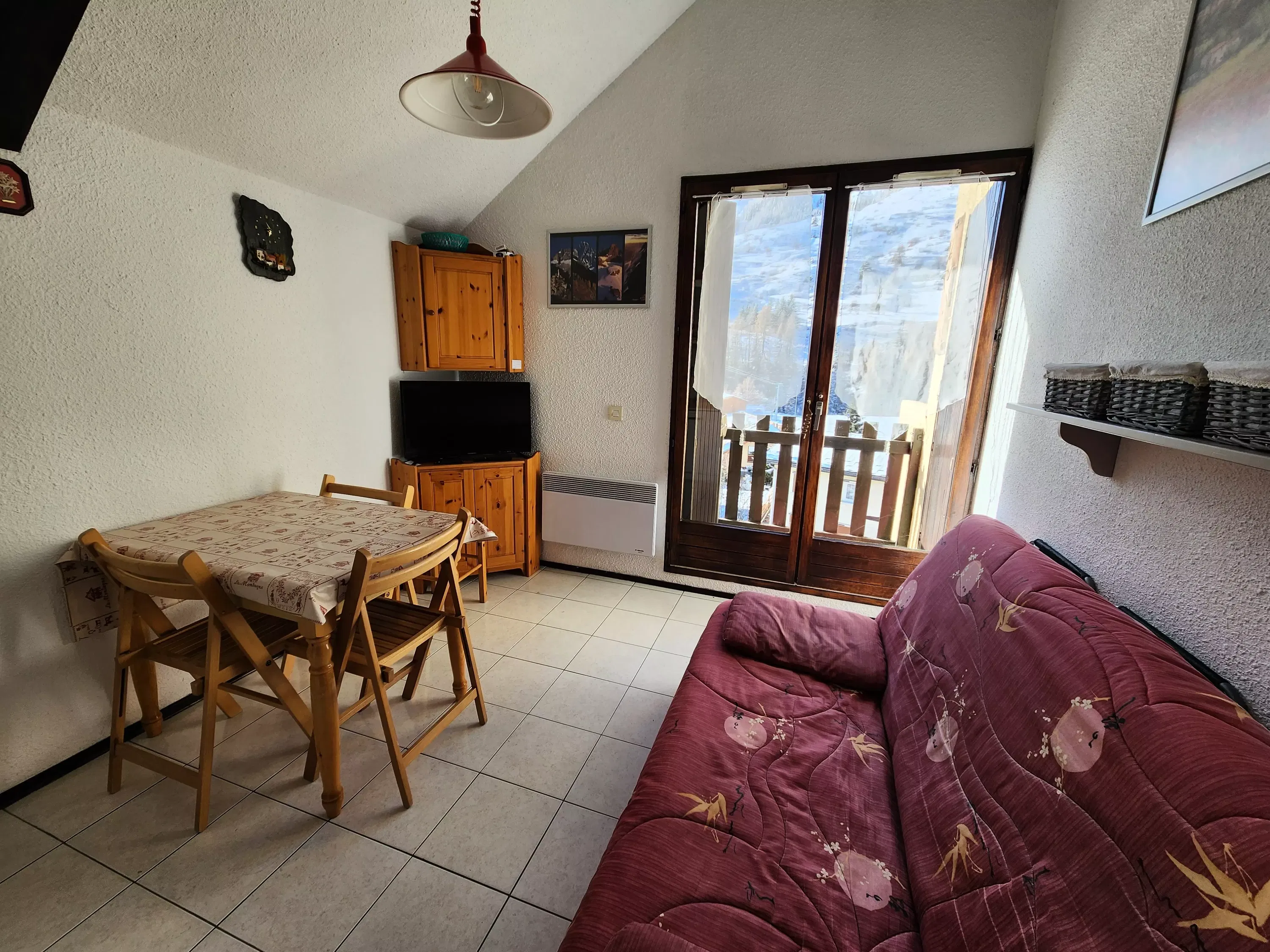 The advantages of your rental: Located in the heart of the village, this -floor apartment offers a west-facing balcony with beautiful mountain views, while remaining within easy reach of shops and just minutes from the slopes. Well laid out, it features a comfortable living room with a sofa bed, a bedroom with a double bed, and a sleeping alcove with bunk beds, ideal for family stays. The open-plan kitchen is fully equipped with a mini-oven, microwave, electric hob, dishwasher, etc. A simple and practical apartment, perfect for enjoying a mountain holiday in the heart of the resort.