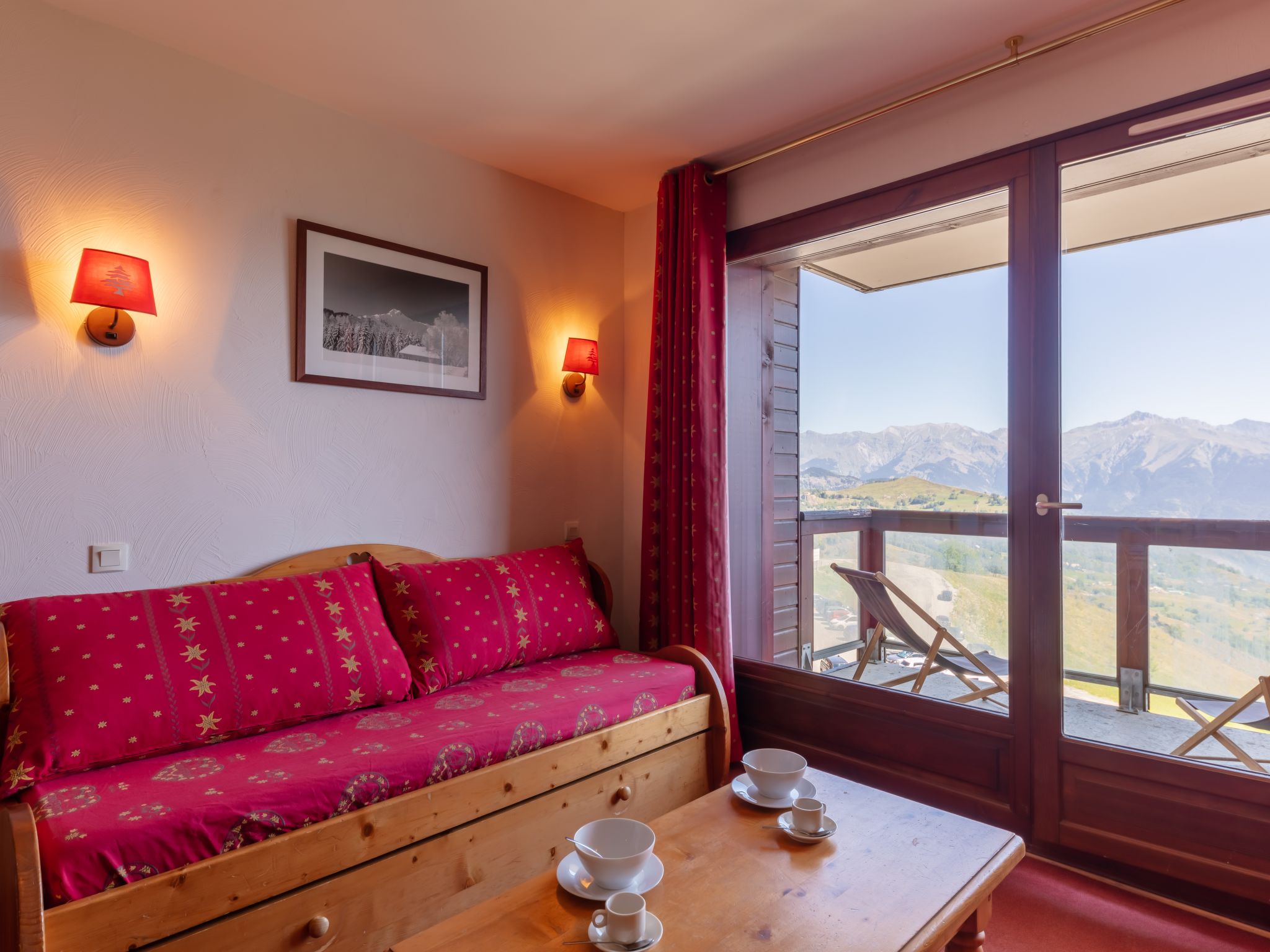 3-room apartment 41 m2 on 5th floor, north facing position. Beautiful and cosy furnishings: living/dining room with 1 pull-out bed (2 pers. 2 x 80 cm, length 190 cm), TV (flat screen). Exit to the balcony. 1 room with 1 french bed (140 cm, length 190 cm). 1 room with sliding door, without window with 2 beds (80 cm, length 190 cm). Open kitchen (4 hot plates, dishwasher, toaster, kettle, electric coffee machine, combination microwave). Bathroom, sep. WC. Electric heating. Carpet. Balcony 8 m2, north facing position. Deck chairs (2). Very beautiful view of the mountains and the valley. Facilities: iron, hair dryer. Internet (WiFi, extra). Parking (roofed, 1 car), height 200 cm. Please note: non-smokers only. Maximum 1 pet/ dog allowed. Smoke alarm. Offer by a private individual according to Art. 155, IV of CGI.