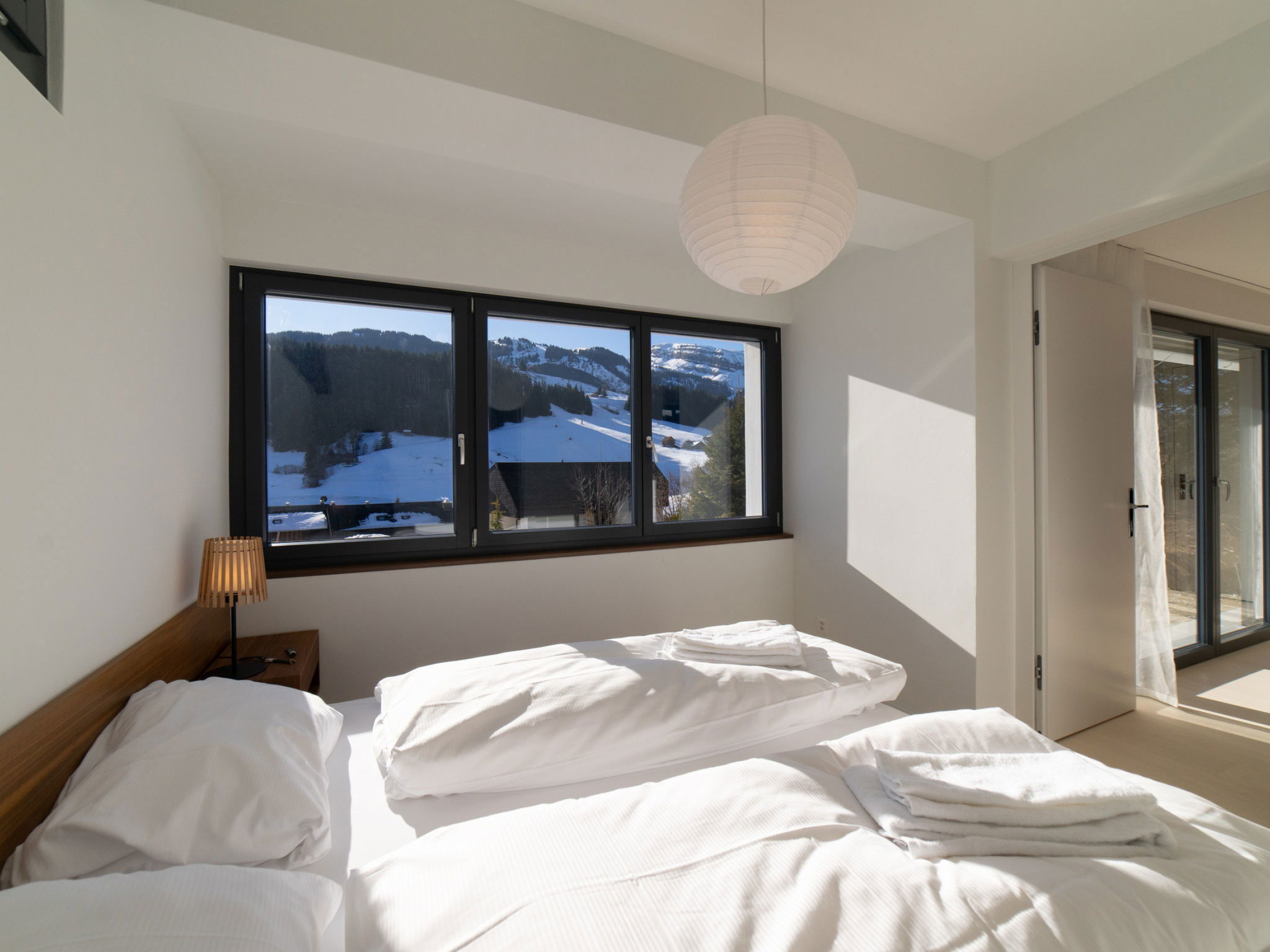 "Alpstein", 2-room apartment 55 m2, on the ground floor. Object suitable for 4 adults. 1 room with 1 x 2 bunk beds, TV. 1 room with 2 beds. Open kitchen (oven, dishwasher, 4 ceramic glass hob hotplates, microwave, freezer, electric coffee machine). Shower/WC. Barbecue. View of the mountains and the garden. Facilities: washing machine, dryer, hair dryer. Internet (WiFi, free). Parking, garage. Please note: non-smokers only. 1 pet/ dog allowed. DescriptionThe holiday apartment "Alpstein" is located in Wildhaus and offers space for up to 4 people in two bedrooms. The apartment was completely renovated in January 2025 and furnished to a very high standard.The holiday apartment is very well equipped and features a garden, washing machine, tumble dryer, barbecue area, central heating, garage and parking directly on the property. A television with satellite TV is available for entertainment.The apartment offers a spacious living area and is distinguished by a magnificent view of the mountains and the garden.The central location makes the apartment particularly attractive: It is only 650 m from the ski station "Talstation Wildhaus Thur", 1 km from the bus stop "Busstation Wildhaus Dorf", 1 km from the village centre "Wildhaus Dorf" and the "SPAR" supermarket. Various restaurants, shopping opportunities and the ice sports centre are located in the immediate vicinity.The open kitchen with ceramic hob is modern and offers everything needed for a comfortable stay: refrigerator, microwave, oven, freezer, dishwasher as well as crockery, cutlery, cooking utensils and coffee machine.For larger groups, the holiday apartment "Alpstern" located above can be rented additionally. Both apartments are accessible via a connecting door and offer space for larger families or groups.The holiday apartment "Alpstein" is the ideal starting point for relaxing holidays in the midst of the mountain world.Mandatory or included services:Baby bed : IncludedBed linen : CHF 12.00 /personFinal Cleaning : CHF 160.00 /bookinggarage and car park : IncludedHeating : IncludedInternet Access : IncludedStarter Package : CHF 25.00 /bookingTowels : CHF 8.00 /personCheck-in schedule:1.1-31.12 from 00:00 to 23:59, Monday, Tuesday, Wednesday, Thursday, Friday, Saturday, SundayCheck-out schedule: 10:00