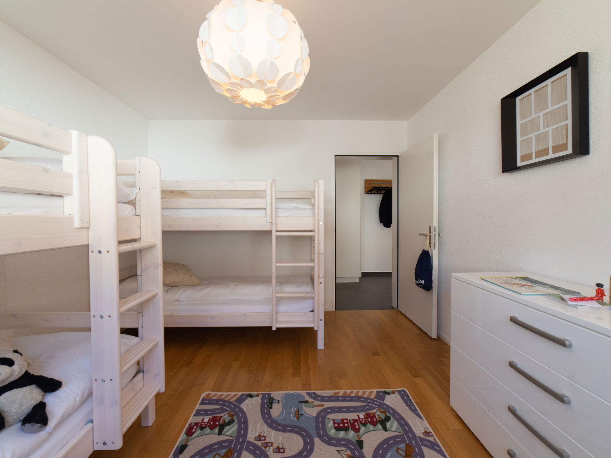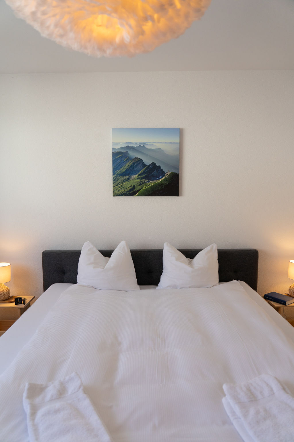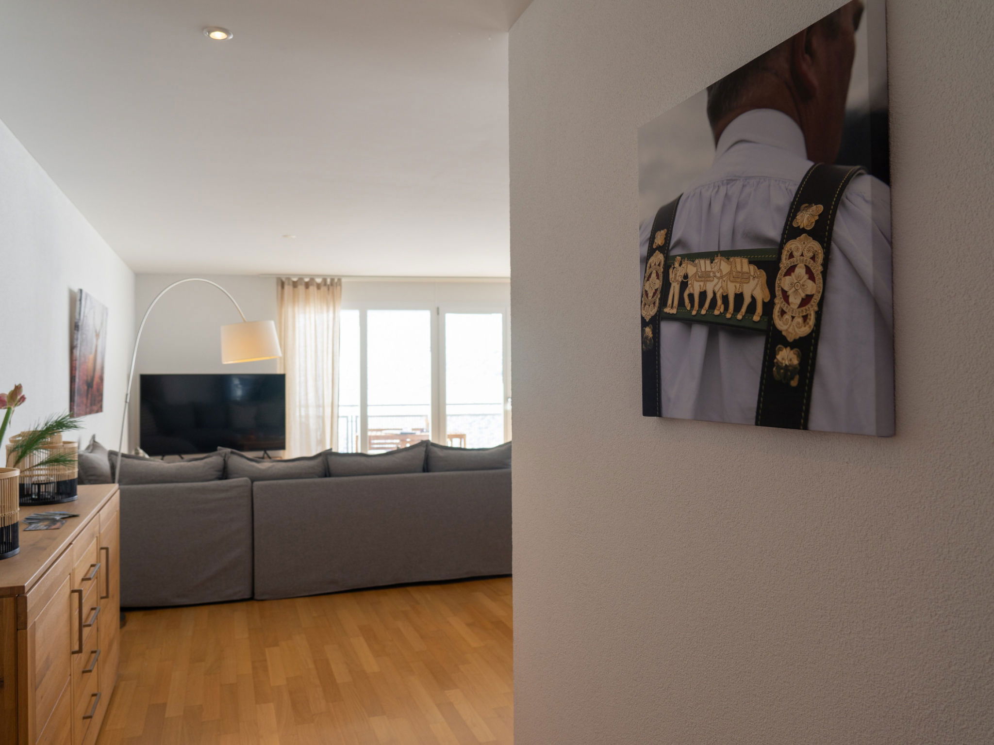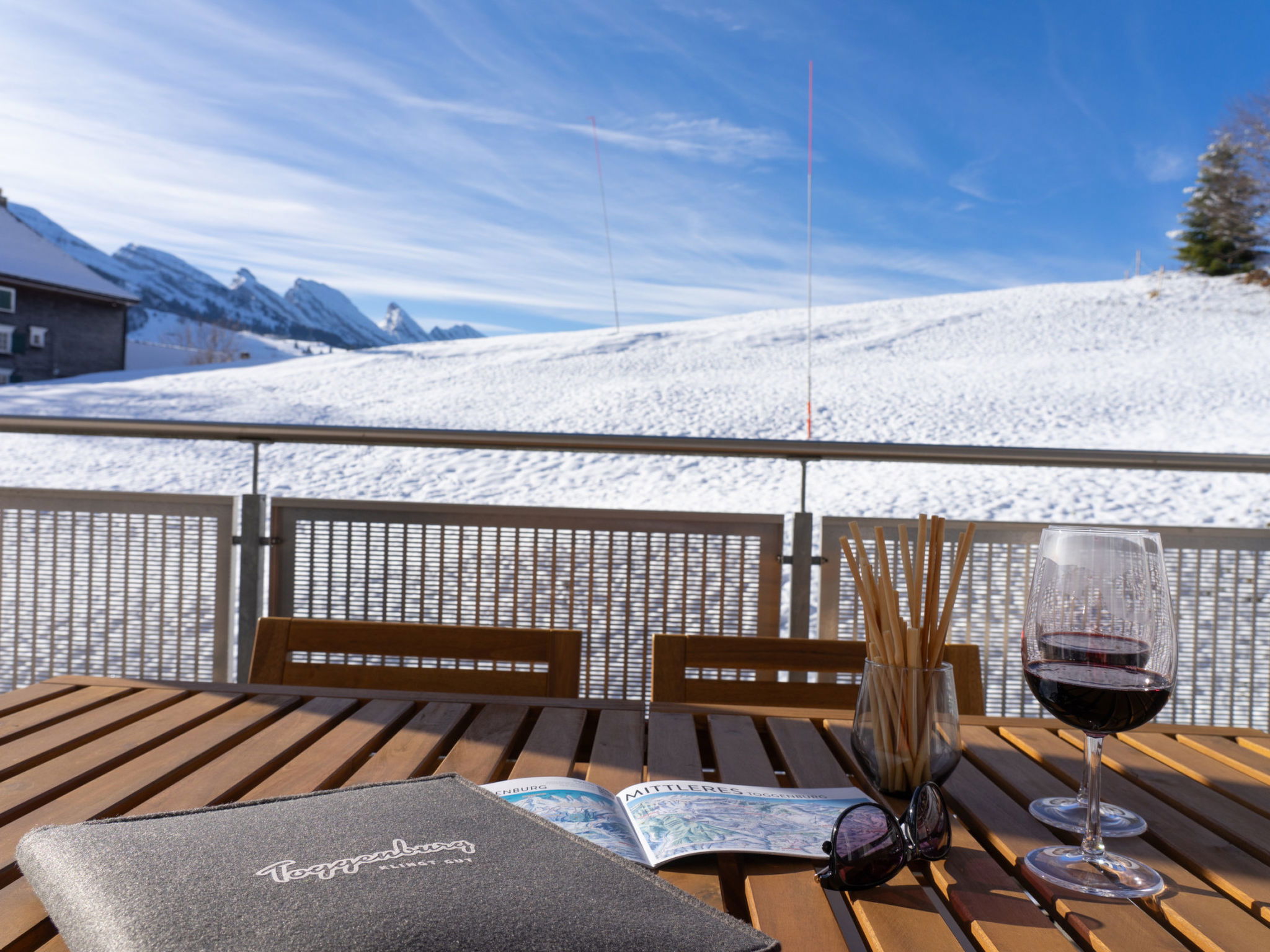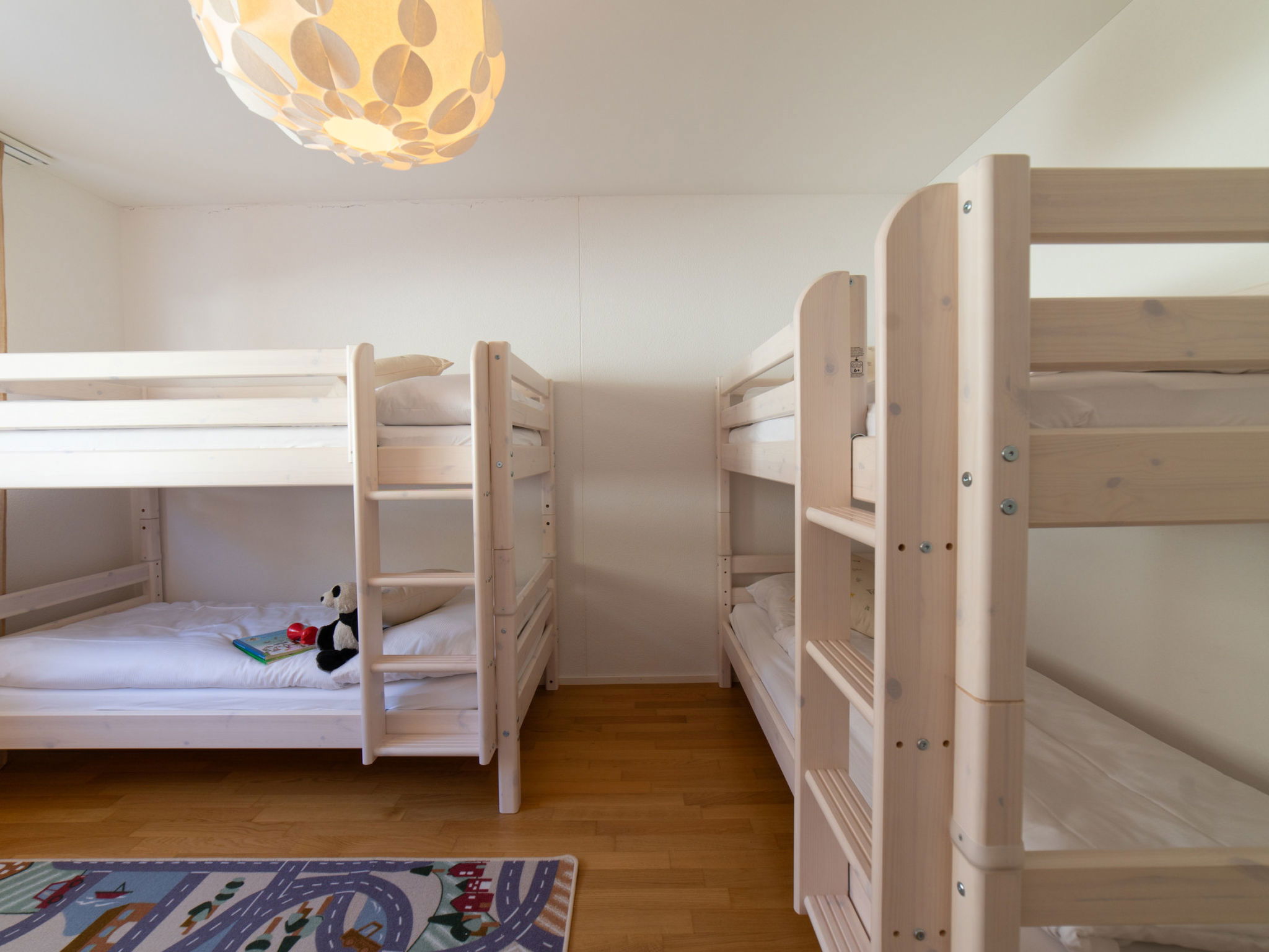 "Säntis", 3-room apartment 107 m2 on 1st floor. Object suitable for 8 adults. 1 room with 1 double bed and TV. 1 room with 1 double bed. 1 room with 2 x 2 bunk beds. Open kitchen (oven, dishwasher, 4 ceramic glass hob hotplates, toaster, freezer, electric coffee machine, raclette grill). Bath/WC, sep. WC. Balcony. Barbecue. View of the mountains and the ski run. Facilities: washing machine, dryer. Internet (WiFi, free). Garage (1 car). Please note: non-smokers only. 1 pet/ dog allowed. DescriptionThe Säntis holiday apartment in Wildhaus offers space for up to 8 people and comprises 3 cosy bedrooms. Enjoy not only a breathtaking view of the mountains, but also a perfect location that allows you to reach the valley station in no time. The charming village centre with numerous shopping opportunities is also just a few minutes' walk away.In summer, you can look forward to countless leisure activities. Thanks to the ideal location, you will be on various hiking trails suitable for all levels of difficulty in just a few minutes. Families in particular will get their money's worth here and enjoy unforgettable experiences in the midst of nature.Mandatory or included services:Baby bed : IncludedBed linen : CHF 12.00 /personFinal Cleaning : CHF 180.00 /bookingGarage : IncludedHeating : IncludedInternet Access : IncludedStarter Package : CHF 25.00 /bookingTowels : CHF 8.00 /personOptional services:Pet : CHF 10.00 / dayCheck-in schedule:1.1-31.12 from 00:00 to 23:59, Monday, Tuesday, Wednesday, Thursday, Friday, Saturday, SundayCheck-out schedule: 10:00