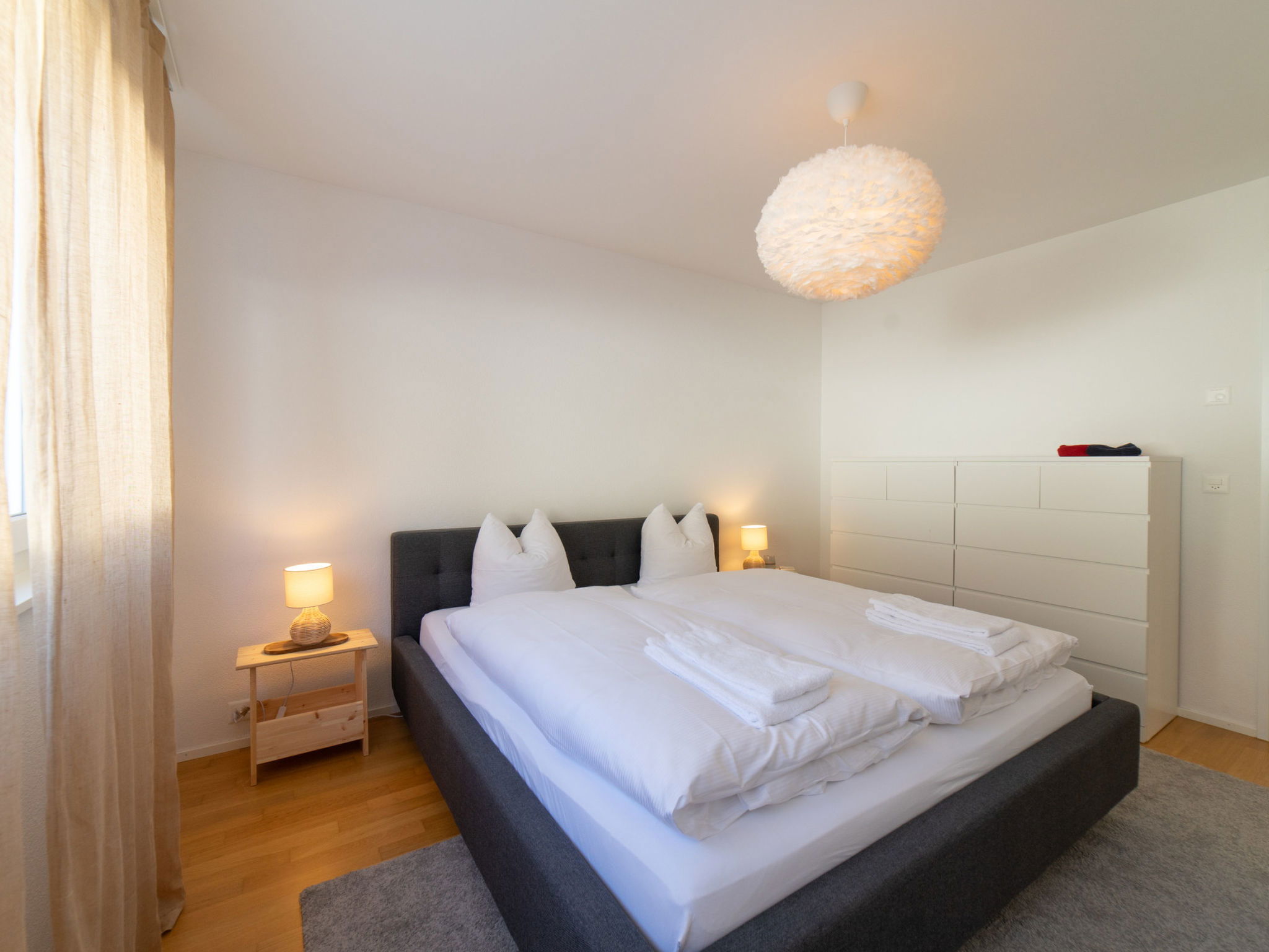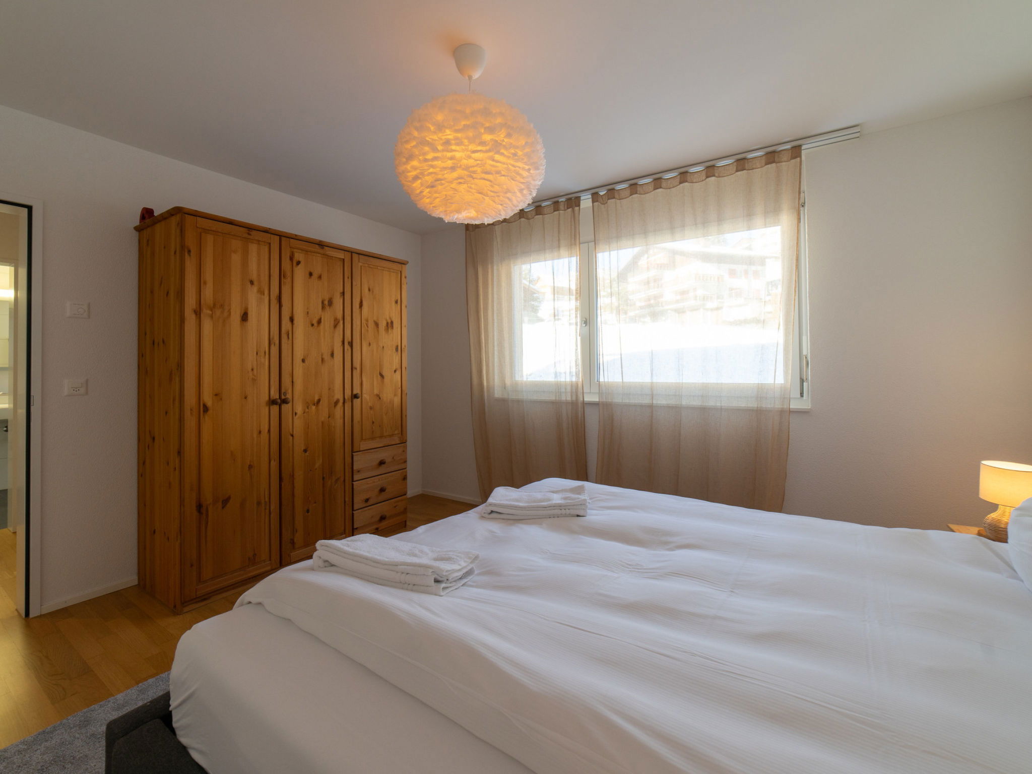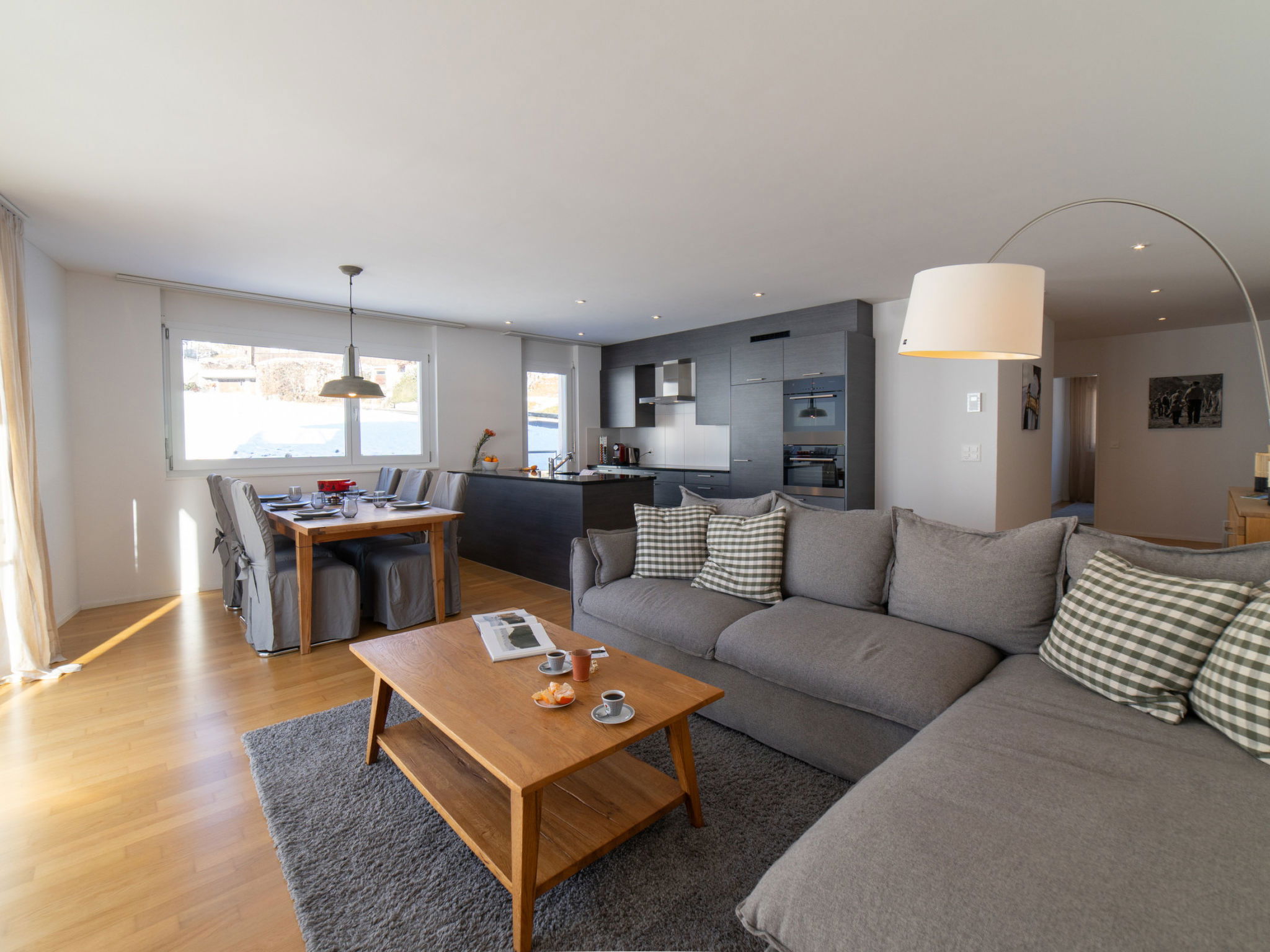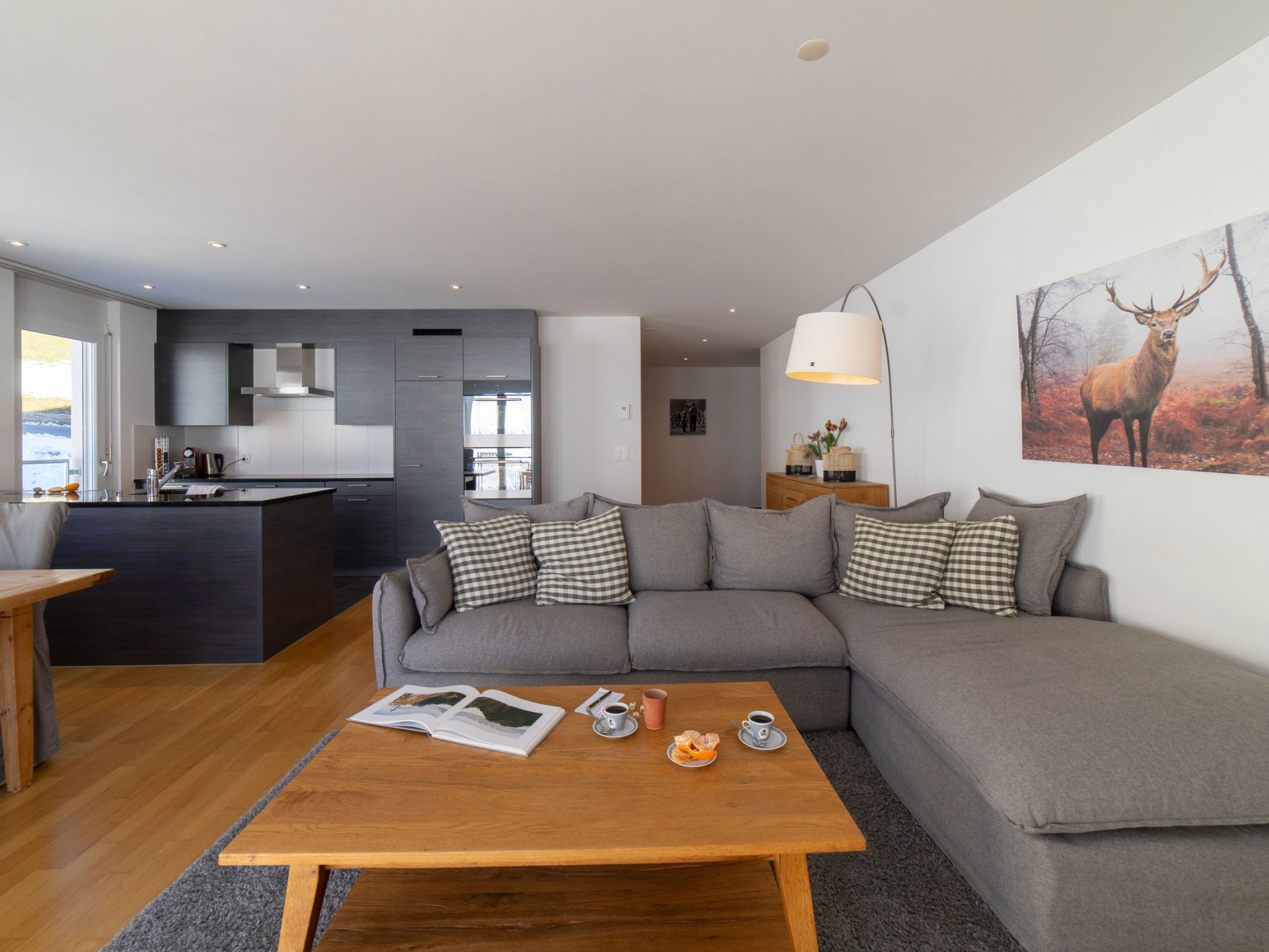 "Säntis", 3-room apartment 107 m2 on 1st floor. Object suitable for 8 adults. 1 room with 1 double bed and TV. 1 room with 1 double bed. 1 room with 2 x 2 bunk beds. Open kitchen (oven, dishwasher, 4 ceramic glass hob hotplates, toaster, freezer, electric coffee machine, raclette grill). Bath/WC, sep. WC. Balcony. Barbecue. View of the mountains and the ski run. Facilities: washing machine, dryer. Internet (WiFi, free). Garage (1 car). Please note: non-smokers only. 1 pet/ dog allowed. DescriptionThe Säntis holiday apartment in Wildhaus offers space for up to 8 people and comprises 3 cosy bedrooms. Enjoy not only a breathtaking view of the mountains, but also a perfect location that allows you to reach the valley station in no time. The charming village centre with numerous shopping opportunities is also just a few minutes' walk away.In summer, you can look forward to countless leisure activities. Thanks to the ideal location, you will be on various hiking trails suitable for all levels of difficulty in just a few minutes. Families in particular will get their money's worth here and enjoy unforgettable experiences in the midst of nature.Mandatory or included services:Baby bed : IncludedBed linen : CHF 12.00 /personFinal Cleaning : CHF 180.00 /bookingGarage : IncludedHeating : IncludedInternet Access : IncludedStarter Package : CHF 25.00 /bookingTowels : CHF 8.00 /personOptional services:Pet : CHF 10.00 / dayCheck-in schedule:1.1-31.12 from 00:00 to 23:59, Monday, Tuesday, Wednesday, Thursday, Friday, Saturday, SundayCheck-out schedule: 10:00