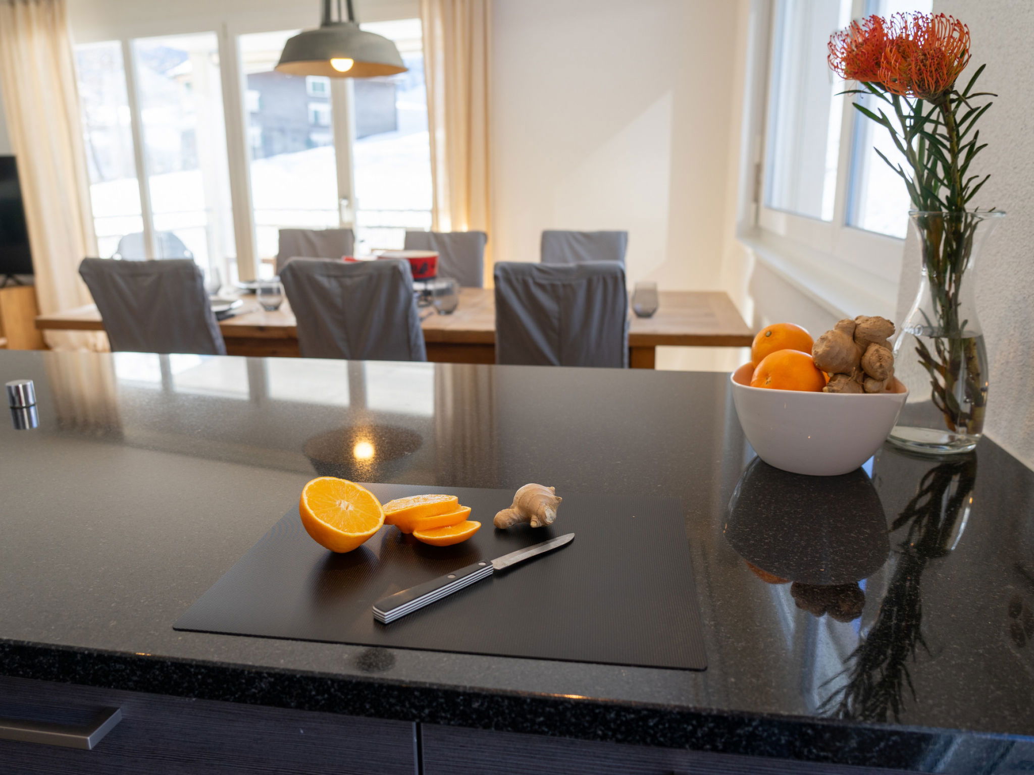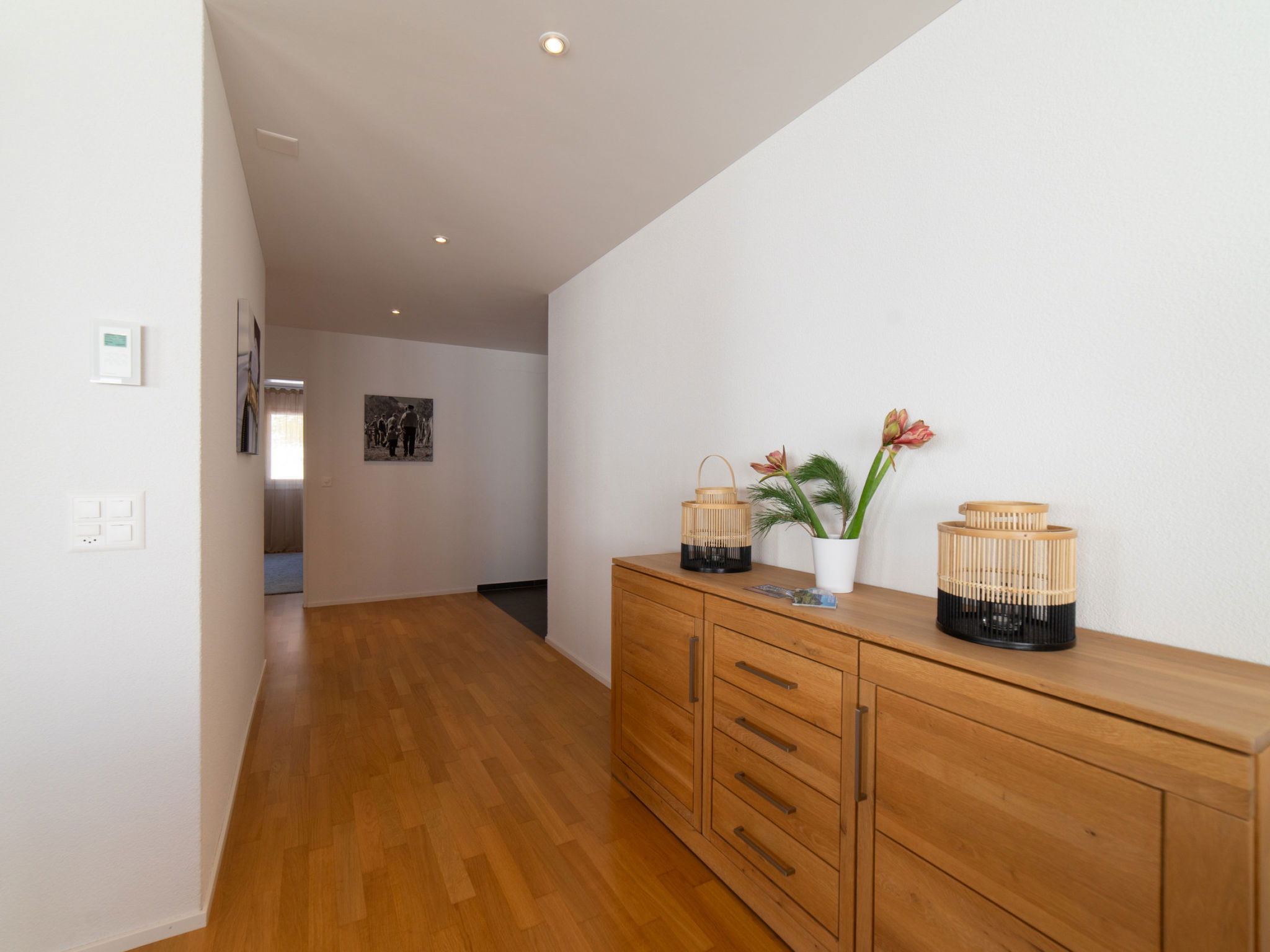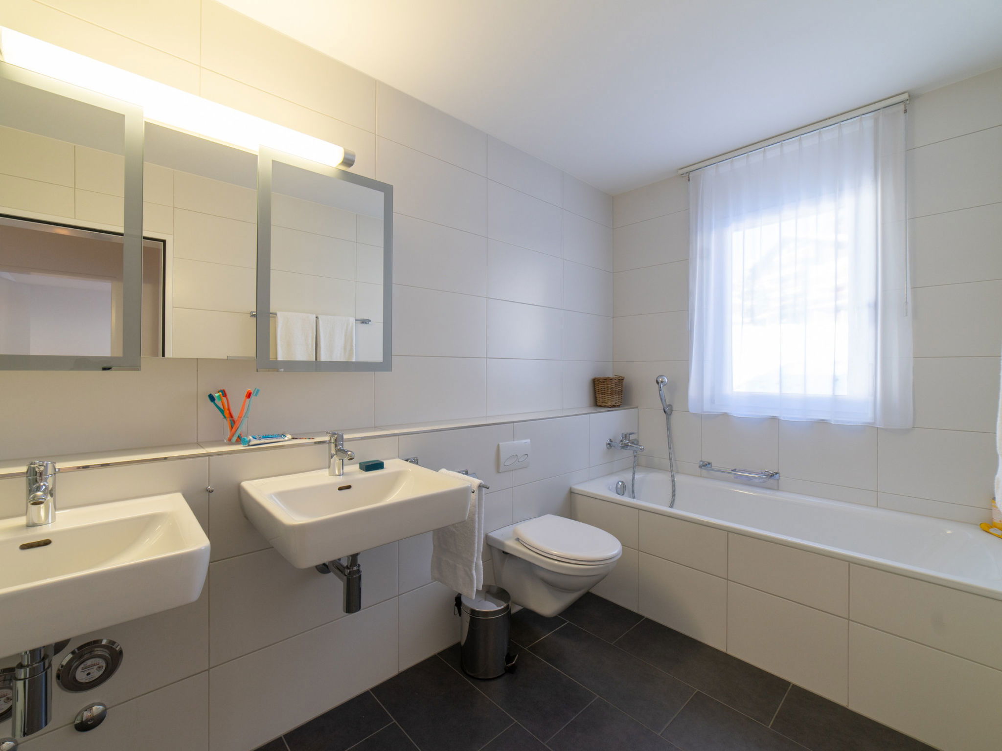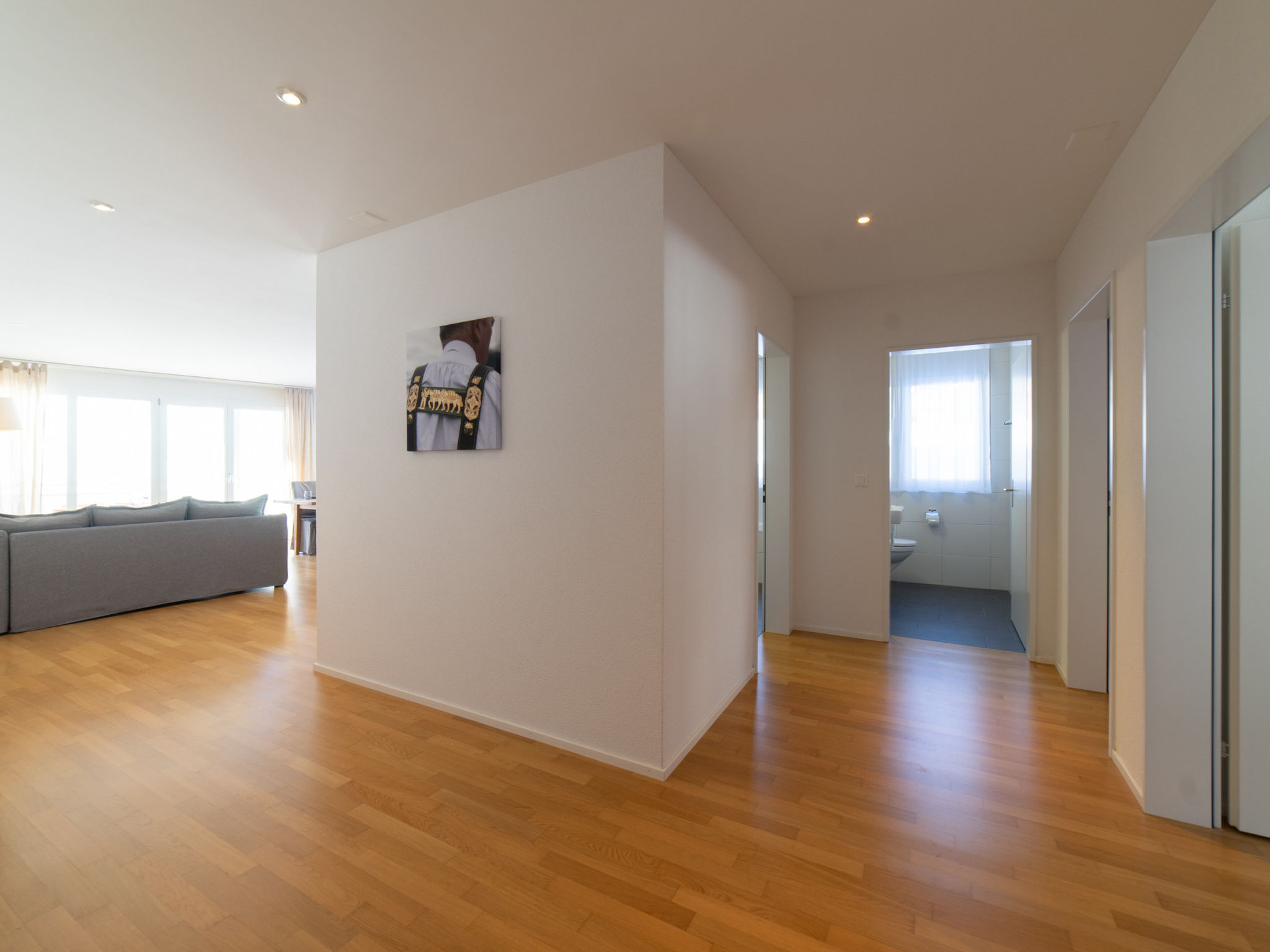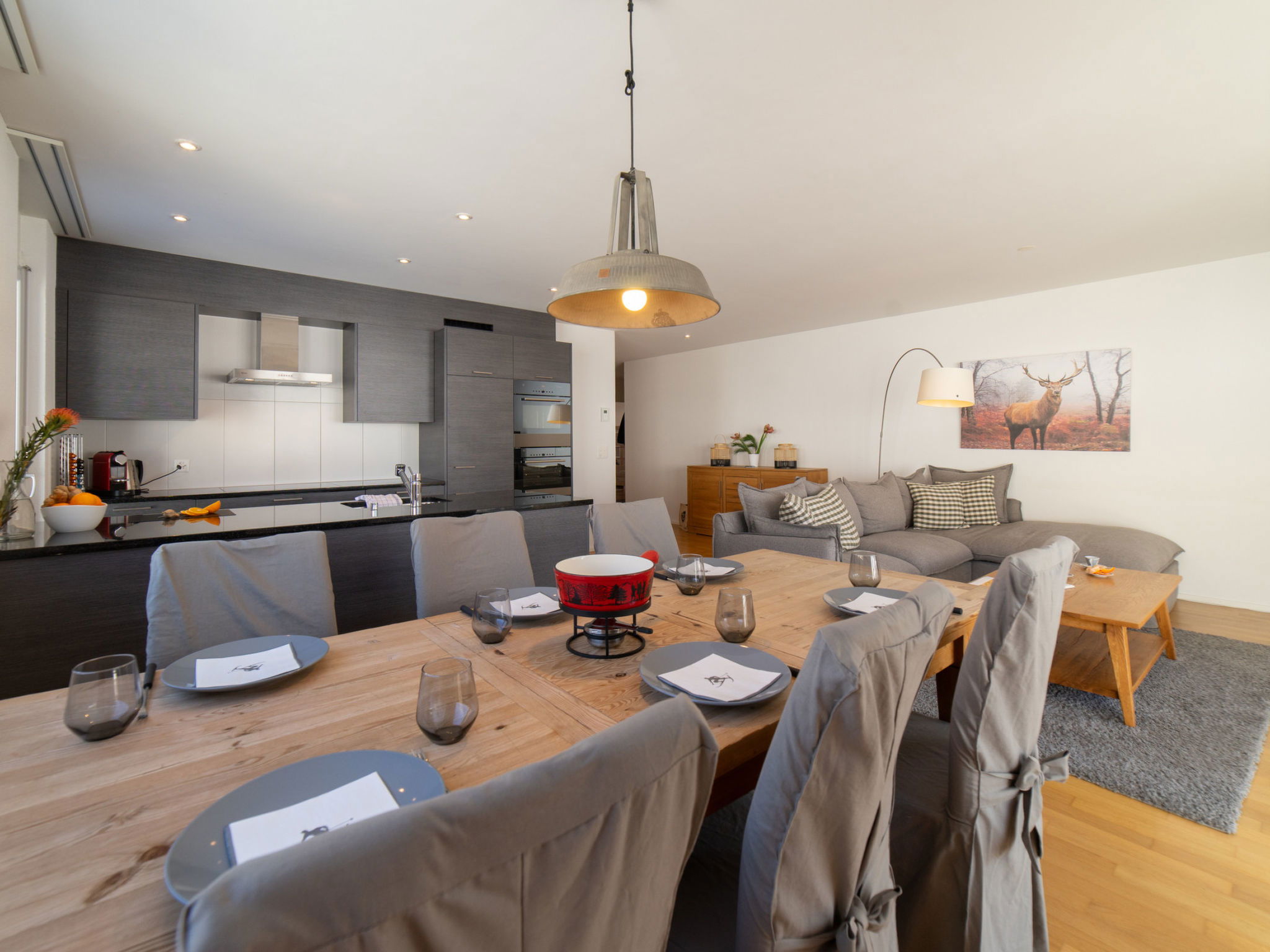 "Säntis", 3-room apartment 107 m2 on 1st floor. Object suitable for 8 adults. 1 room with 1 double bed and TV. 1 room with 1 double bed. 1 room with 2 x 2 bunk beds. Open kitchen (oven, dishwasher, 4 ceramic glass hob hotplates, toaster, freezer, electric coffee machine, raclette grill). Bath/WC, sep. WC. Balcony. Barbecue. View of the mountains and the ski run. Facilities: washing machine, dryer. Internet (WiFi, free). Garage (1 car). Please note: non-smokers only. 1 pet/ dog allowed. DescriptionThe Säntis holiday apartment in Wildhaus offers space for up to 8 people and comprises 3 cosy bedrooms. Enjoy not only a breathtaking view of the mountains, but also a perfect location that allows you to reach the valley station in no time. The charming village centre with numerous shopping opportunities is also just a few minutes' walk away.In summer, you can look forward to countless leisure activities. Thanks to the ideal location, you will be on various hiking trails suitable for all levels of difficulty in just a few minutes. Families in particular will get their money's worth here and enjoy unforgettable experiences in the midst of nature.Mandatory or included services:Baby bed : IncludedBed linen : CHF 12.00 /personFinal Cleaning : CHF 180.00 /bookingGarage : IncludedHeating : IncludedInternet Access : IncludedStarter Package : CHF 25.00 /bookingTowels : CHF 8.00 /personOptional services:Pet : CHF 10.00 / dayCheck-in schedule:1.1-31.12 from 00:00 to 23:59, Monday, Tuesday, Wednesday, Thursday, Friday, Saturday, SundayCheck-out schedule: 10:00