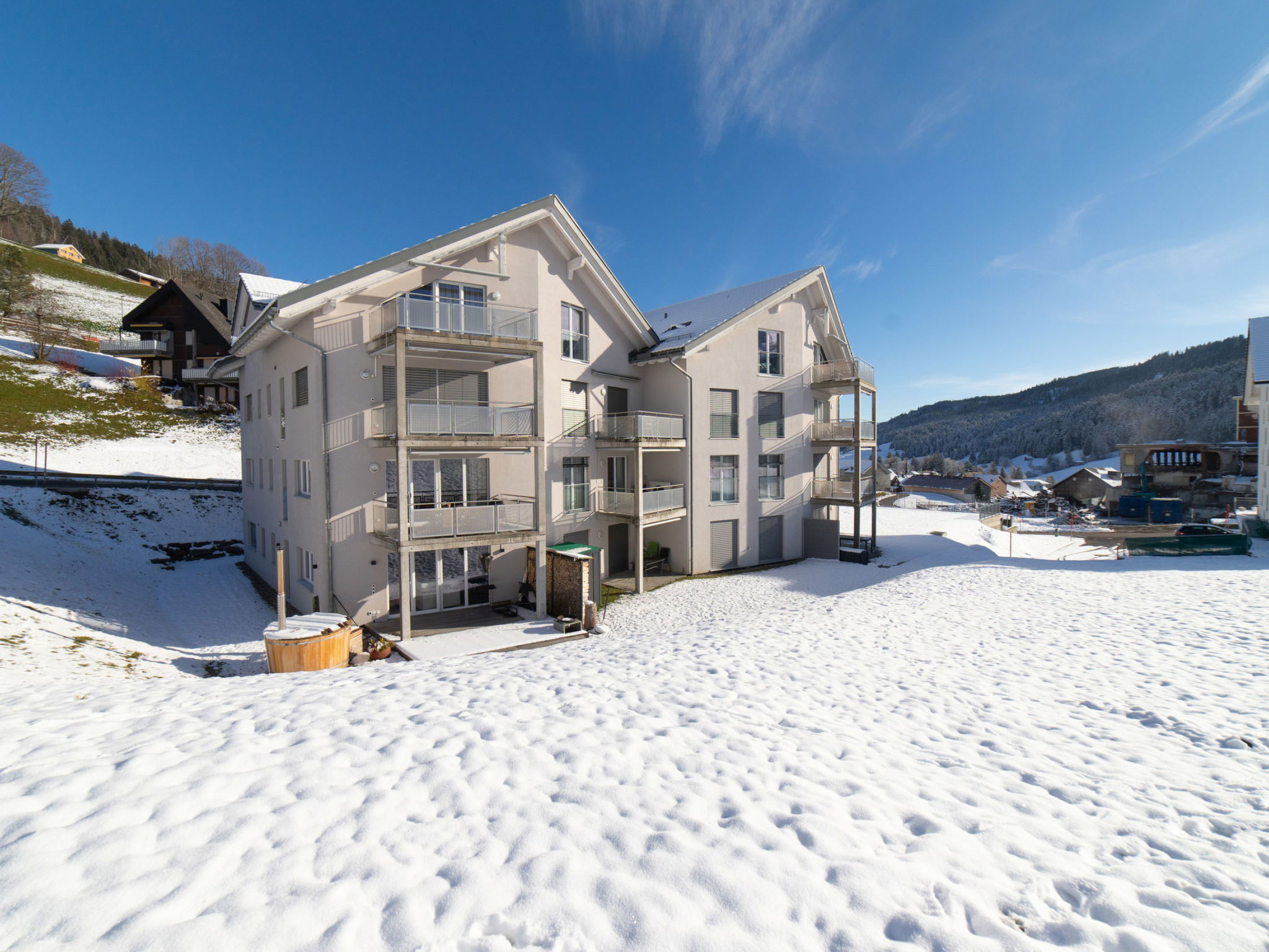 Wildhaus: Apartment block. 650 m from the skiing area. Supermarket 2.8 km, restaurant 2.5 km, bus stop 1.2 km. The owner does not accept any youth groups.