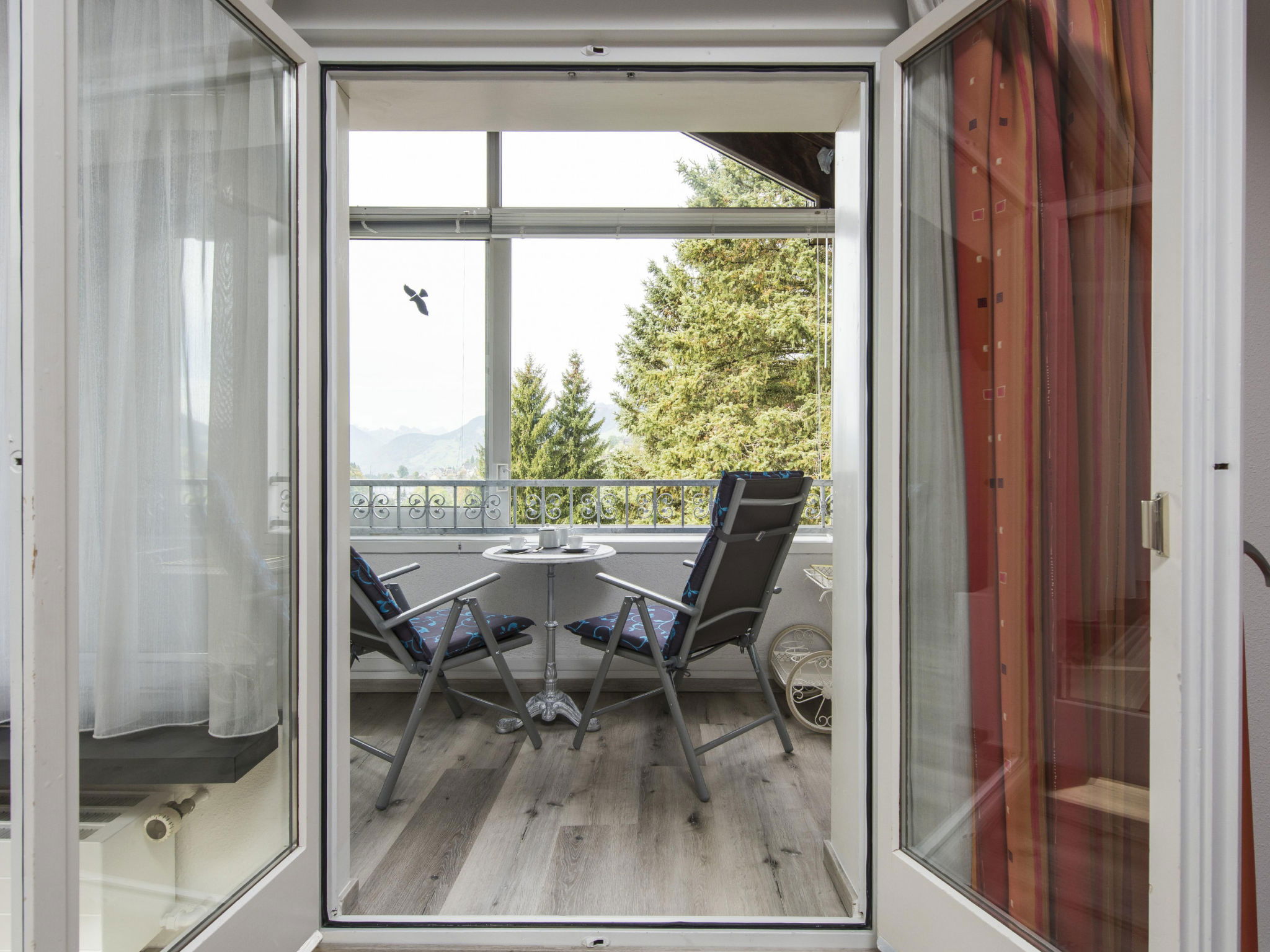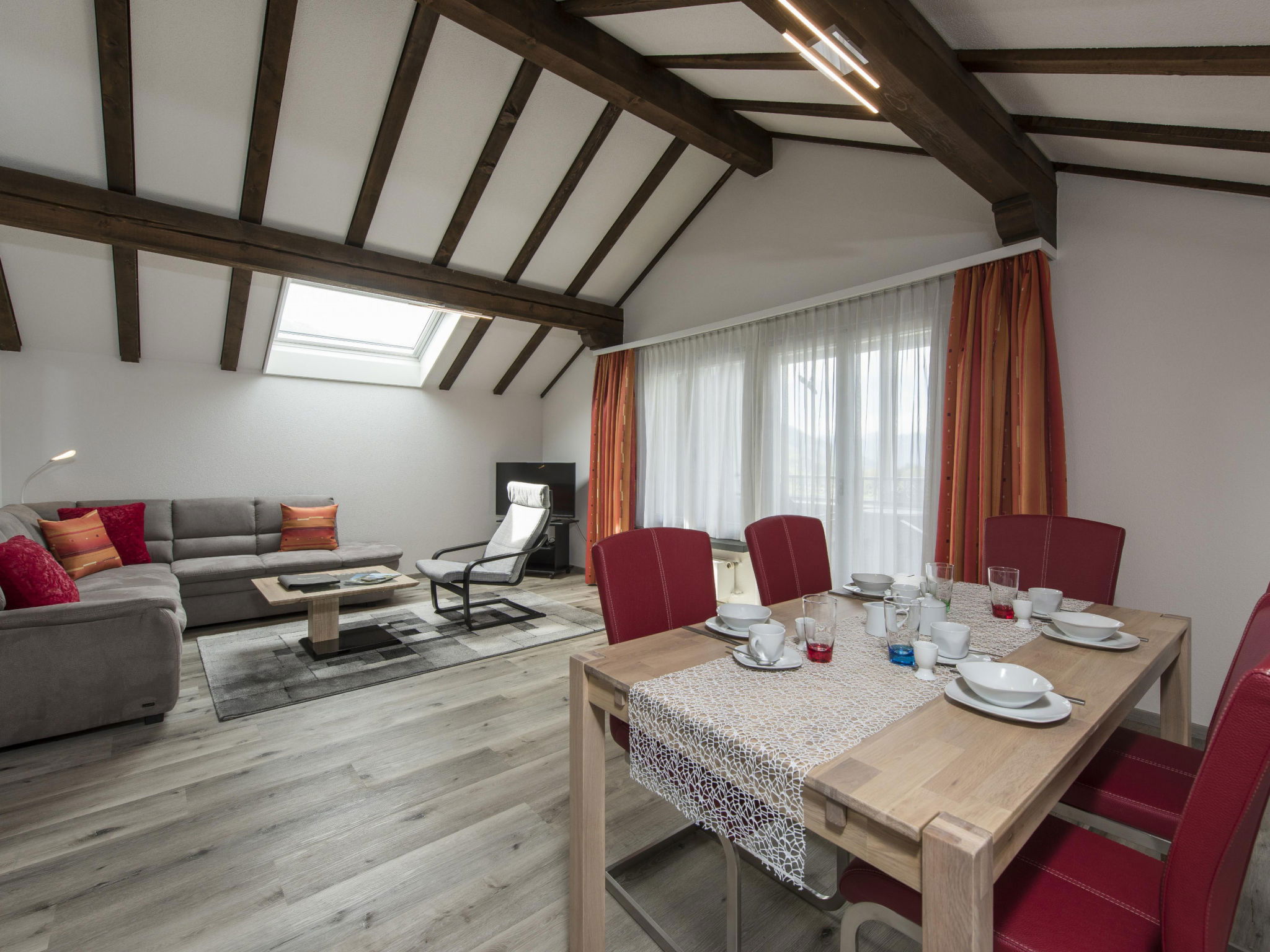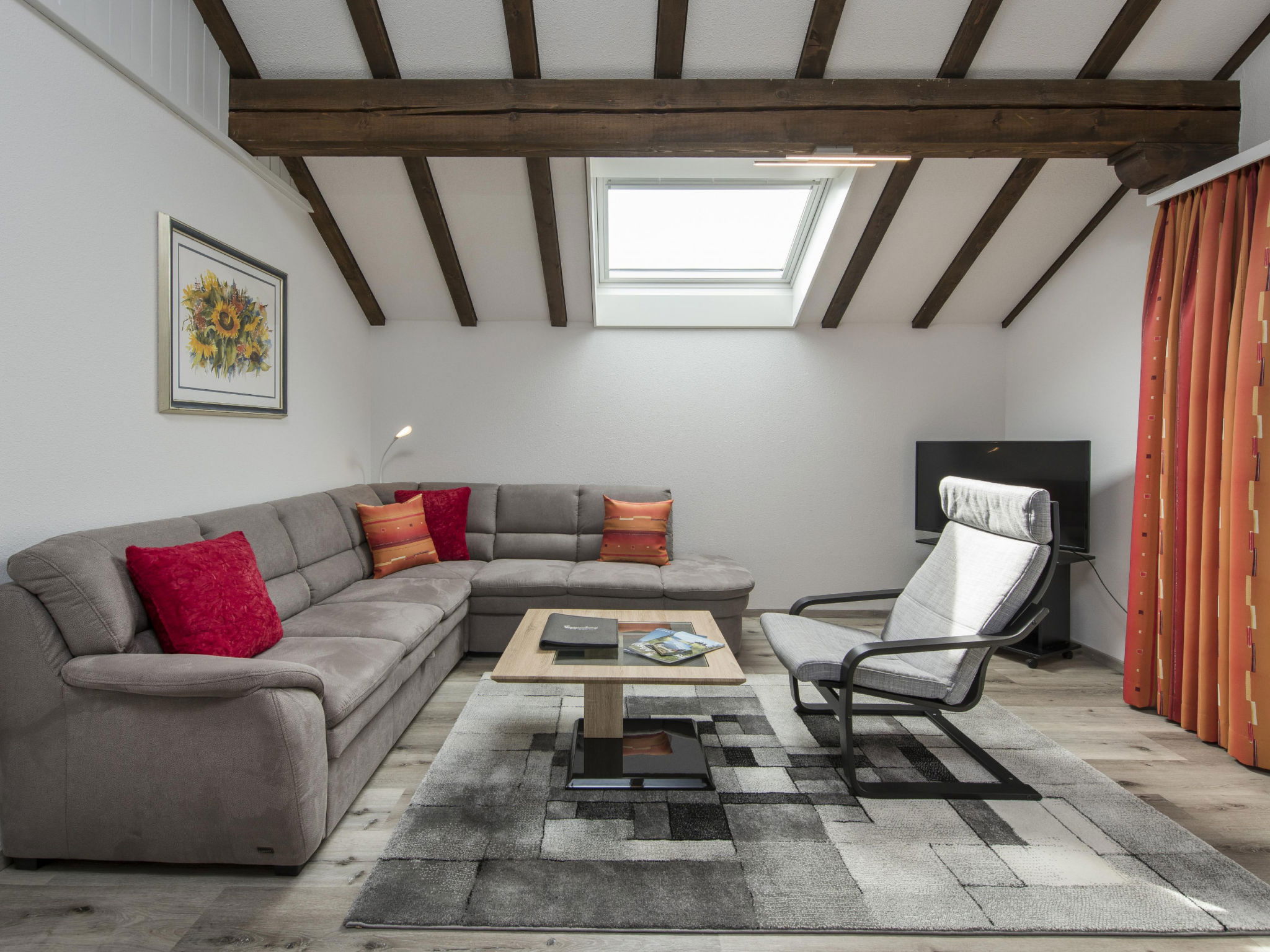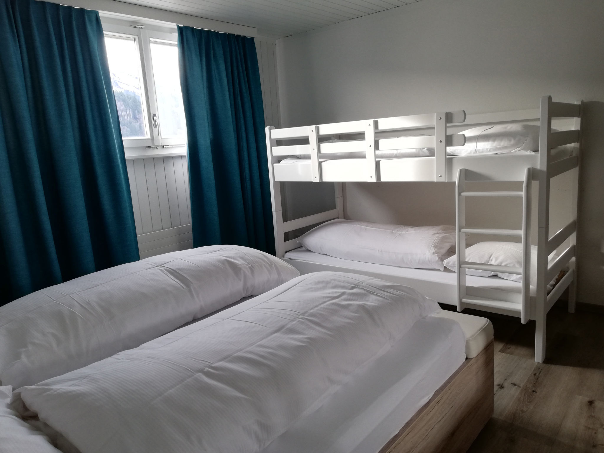 "Bella Vista", 2-room apartment 65 m2 on 4th floor. Object suitable for 4 adults. 1 room with 1 x 2 bunk beds, 1 double bed and TV. Living room with 1 sofabed and 1 pull-out bed. Open kitchen (oven, dishwasher, 4 induction hot plates, toaster, kettle, microwave, freezer, electric coffee machine, raclette grill). Bath/WC. Balcony. View of the mountains and the ski run. Facilities: hair dryer. Internet (WiFi, free). Garage (2 cars). Please note: non-smokers only. 1 pet/ dog allowed. DescriptionThe holiday apartment Bella Vista is a cosy retreat in Wildhaus. The freshly renovated and lovingly furnished 2-room holiday apartment is located in the quiet Riethalden district on the eastern village edge of Wildhaus. It is situated in a multi-family house and offers space for up to 4 people on 65 m². This makes it ideal for families and couples who want to enjoy peace and nature.A special highlight is the bright conservatory on the west side, from which you can enjoy a magnificent view of the nearby Munzenriet, the Churen and the surrounding Toggenburg mountain landscape. The view compensates for the climb to the top floor, as the house has no lift.The equipment includes a cosy bedroom with a double bed and a bunk bed. The apartment offers an additional sleeping option on the comfortable sofa bed as well as a modern bathroom with a bathtub. The fully equipped kitchen features an induction hob, refrigerator, freezer and all necessary utensils. WiFi and central heating ensure pleasant comfort and private parking spaces are available in a garage as well as in an outdoor area. Additionally, there are sufficient storage options for your sports equipment.The valley station Wildhaus Thur is only 1.6 kilometres away, the bus station in the village is reachable in just 700 metres. A supermarket is also located in the immediate vicinity, so you can conveniently run all your errands.Mandatory or included services:Baby high chair : IncludedBed linen : CHF 12.00 /personFinal Cleaning : CHF 120.00 /bookingGarage : IncludedHeating : IncludedInternet Access : IncludedStarter Package : CHF 25.00 /bookingTowels : CHF 8.00 /personOptional services:Pet : CHF 10.00 / dayCheck-in schedule:1.1-31.12 from 00:00 to 23:59, Monday, Tuesday, Wednesday, Thursday, Friday, Saturday, SundayCheck-out schedule: 10:00