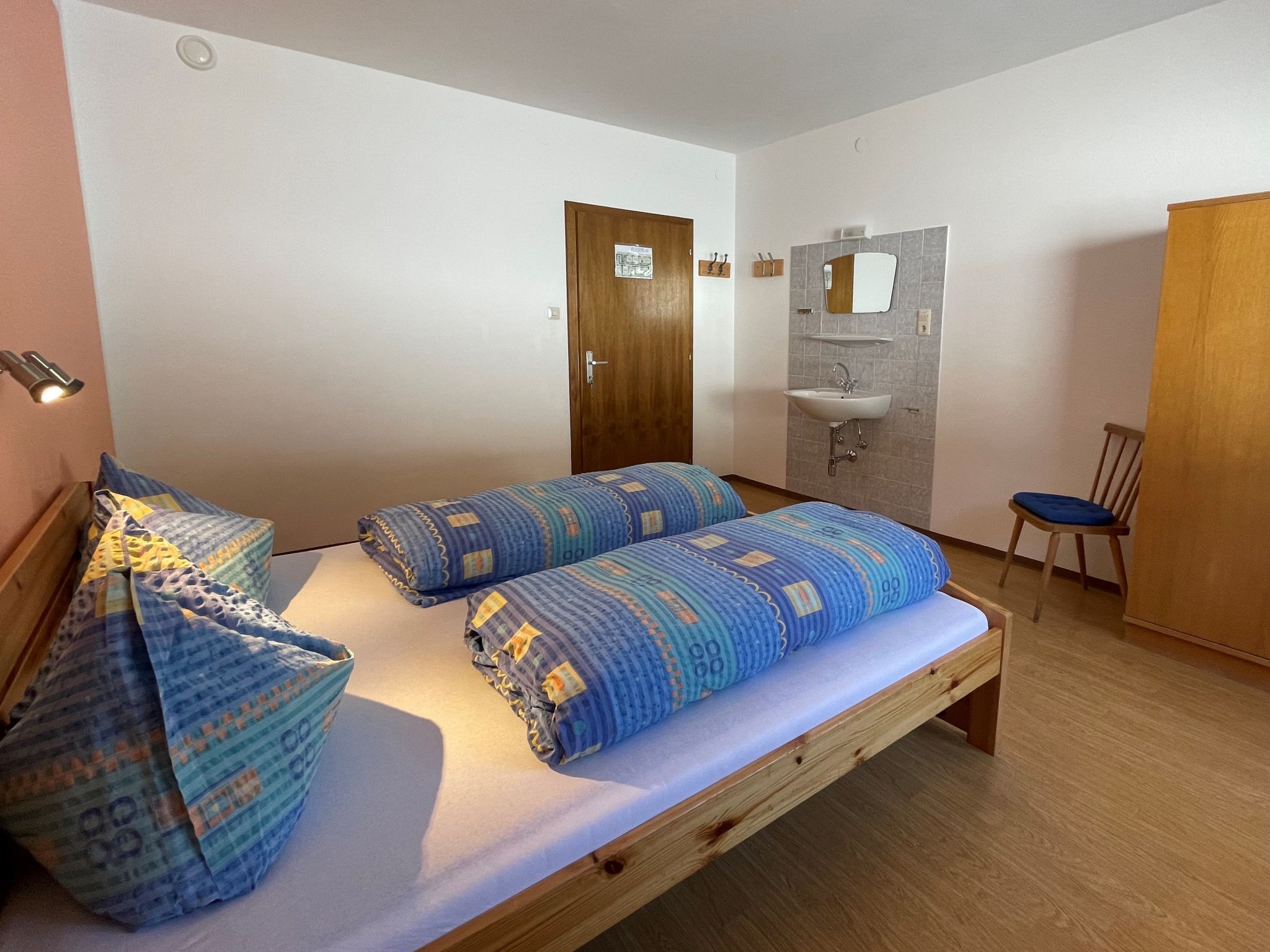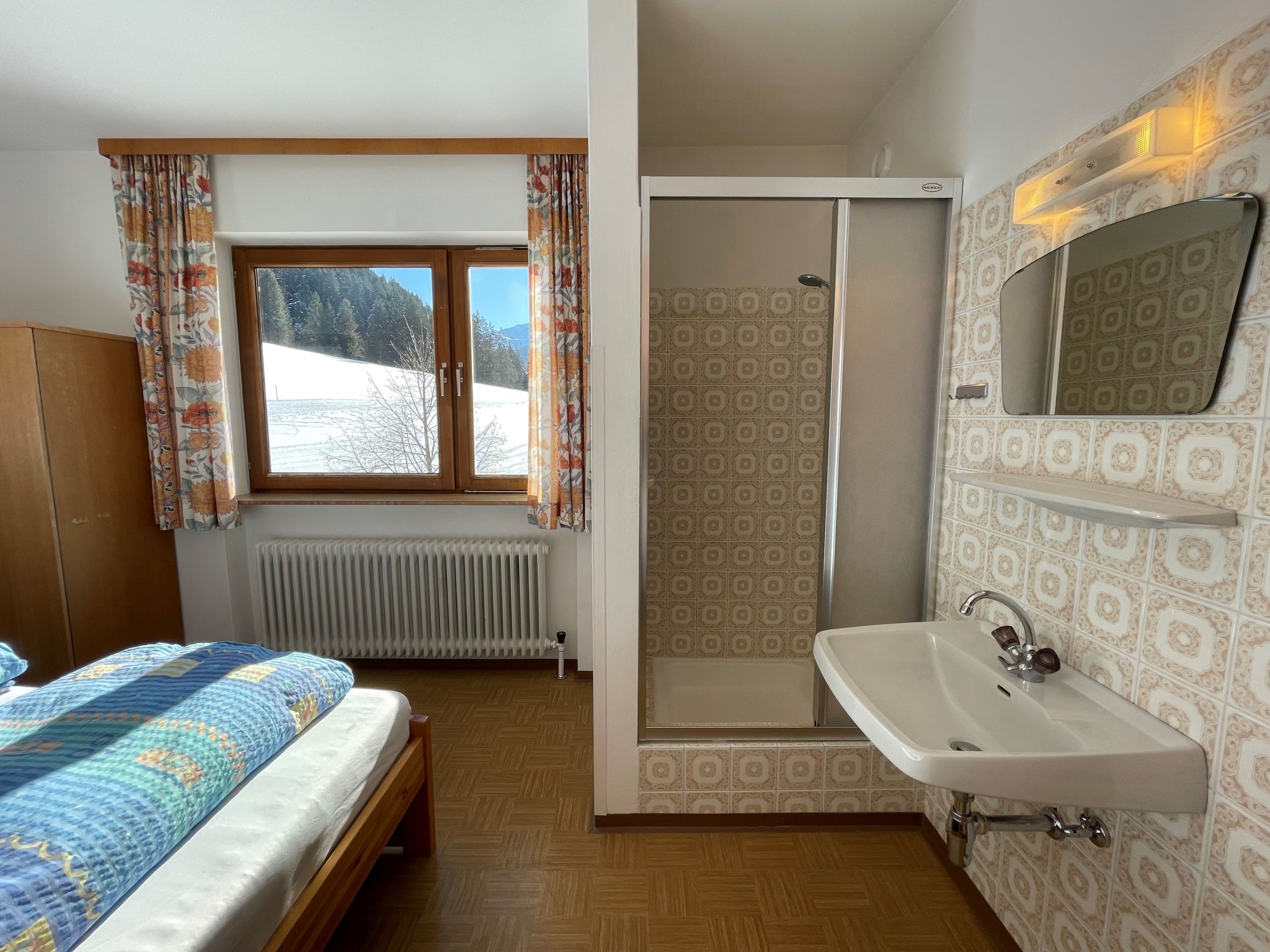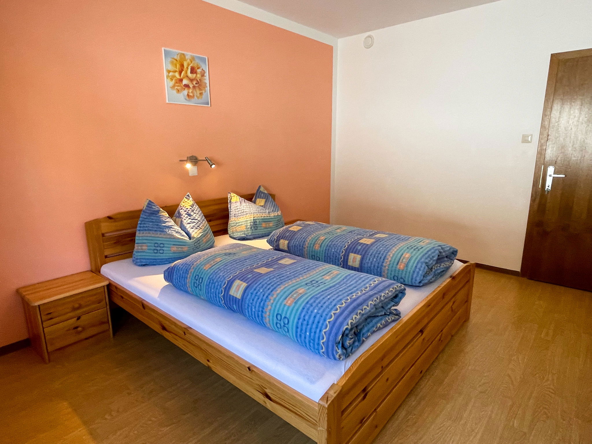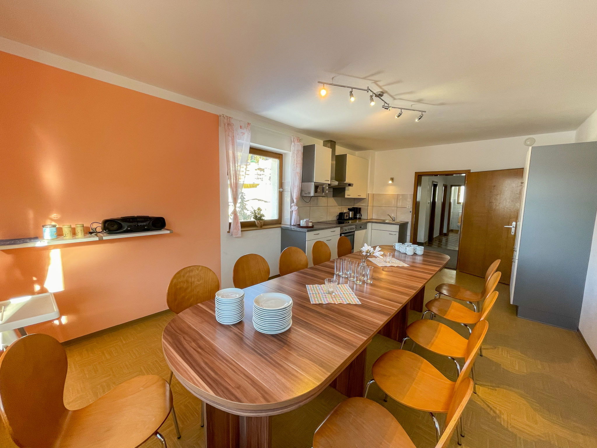 "Roggenboden", 8-room apartment 200 m2 on 2nd floor, south-west facing position. Object suitable for 14 adults. Spacious and bright, simple and practical furnishings: living room with dining nook and satellite TV. Exit to the balcony. 1 double bedroom with hand-basin and shower. Exit to the balcony. 1 double bedroom with hand-basin and shower. Exit to the balcony. 1 room with 1 bed, 1 double bed and hand-basin. Exit to the balcony. 1 room with 1 double bed, 1 folding bed and hand-basin. Exit to the balcony. 1 double bedroom with hand-basin. Exit to the balcony. 1 double bedroom with hand-basin. Exit to the balcony. Large kitchen (oven, dishwasher, 4 ceramic glass hob hotplates, toaster, kettle, microwave, electric coffee machine) with dining table and radio. Shower, 2 sep. WC's. Heating. 2 balconies. Balcony furniture. Very beautiful view of the mountains and the valley. Facilities: children's high chair, baby cot. Internet (WiFi, free). Please note: non-smokers only. Maximum 1 pet/ dog allowed. Smoke alarm, fire extinguisher. When there are less than the maximum number of guests staying at the property, not all of the housing units will be available for use.