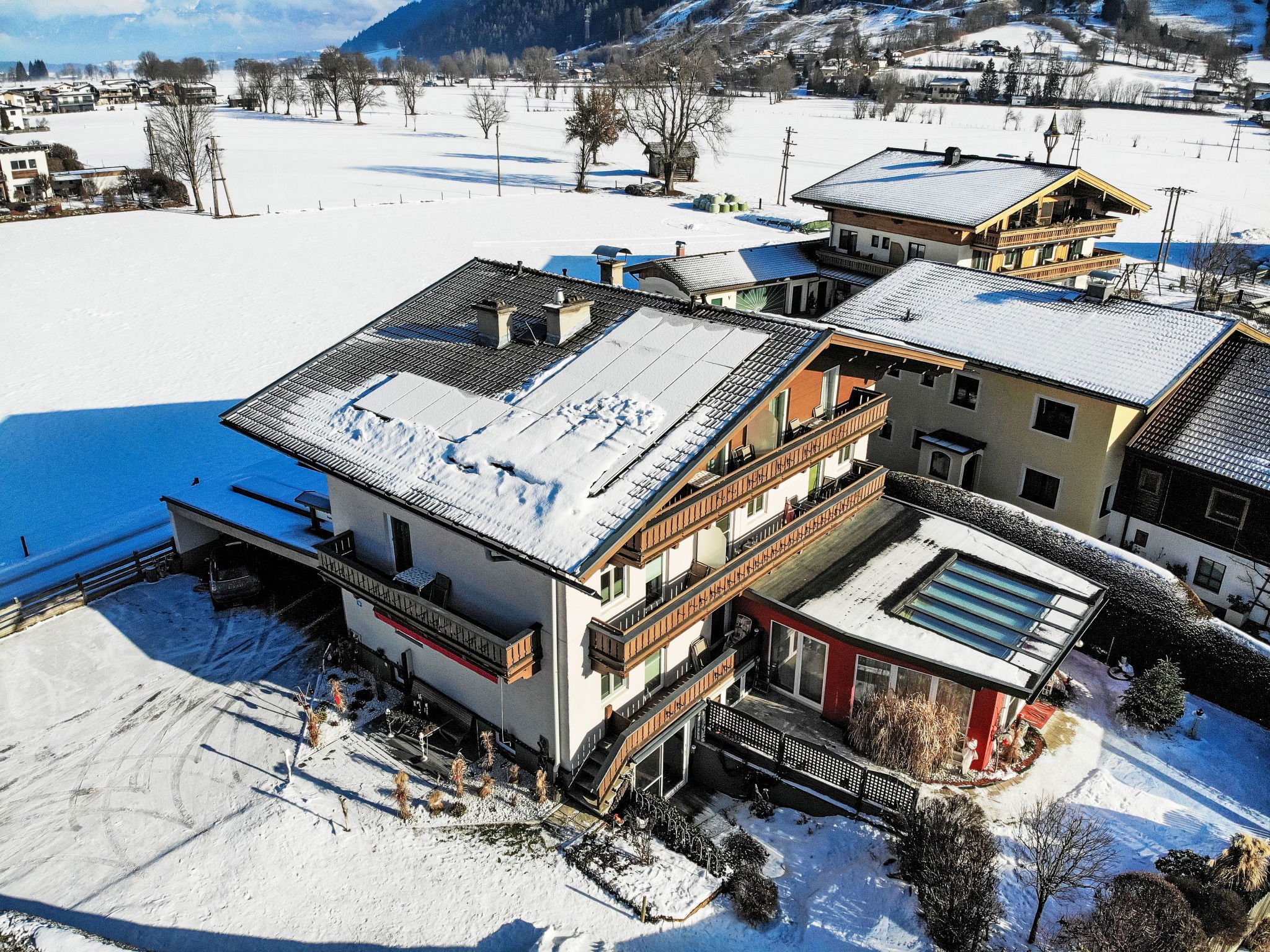 Comfortable apartment block "Rupertus". In the district of Point 5 km from the centre of Zell am See, in a quiet, sunny position, 1.2 km from the lake. For shared use: natural garden (fenced). Table tennis, garden furniture, barbecue. In the house: WiFi, sauna, storage room for skis, central heating system. Parking at the house. Grocery 1.5 km, restaurant 1.5 km, bus stop 800 m, railway station "Zell am See" 5 km, indoor swimming pool 4 km, thermal baths "Tauernspa" 10 km, bathing lake 1.3 km. Golf course (18 hole) 9 km, tennis 1.5 km, riding stable 5 km, skisport facilities 4 km, ski bus stop 800 m, ski school 8 km, cross country ski track 100 m, ice rink 3 km. Well-known ski regions can easily be reached: Schmittenhöhe, Kitzsteinhorn. Hiking paths: Schmittenhöhe. Please note: Additional accommodations can be booked.