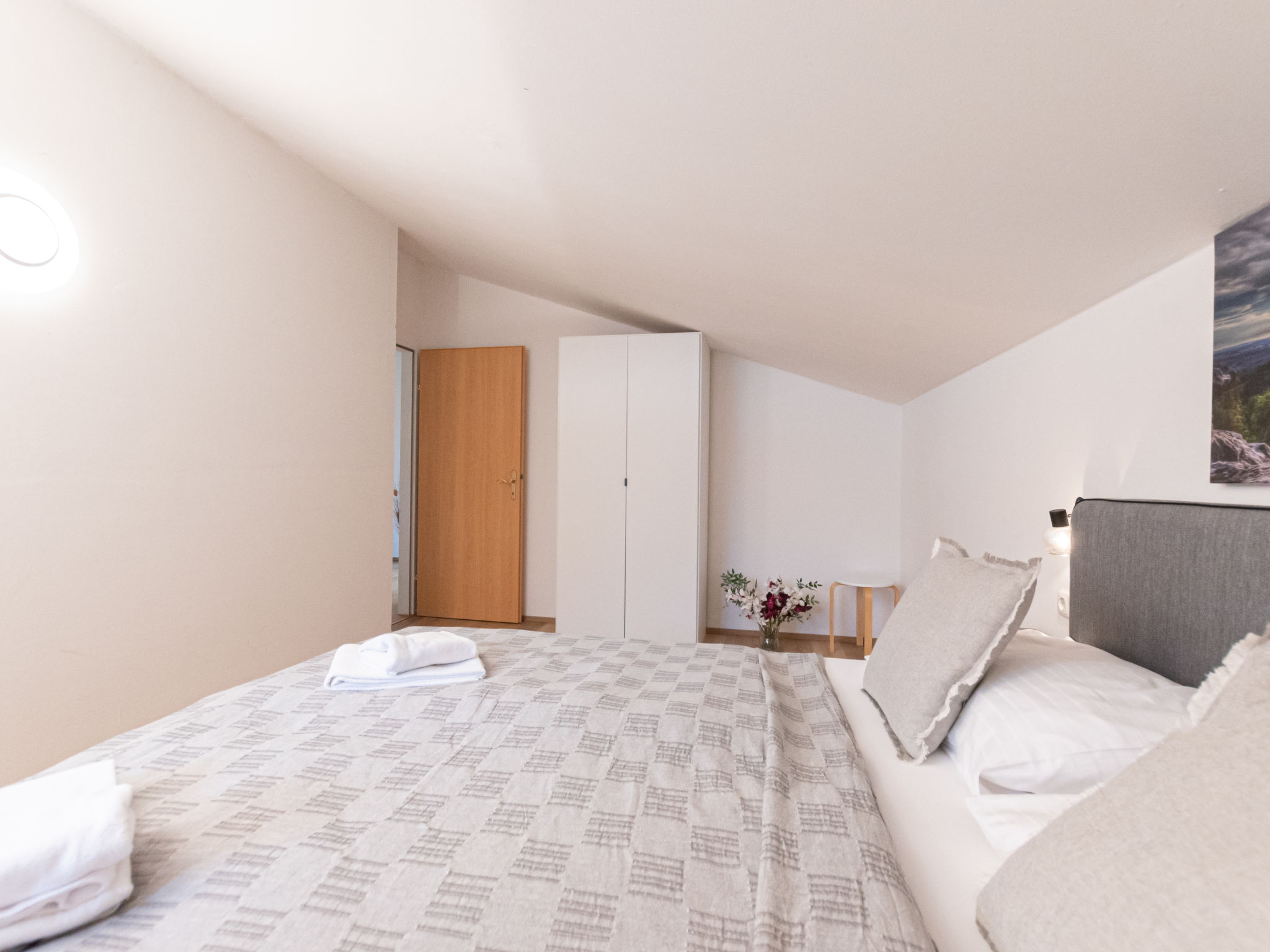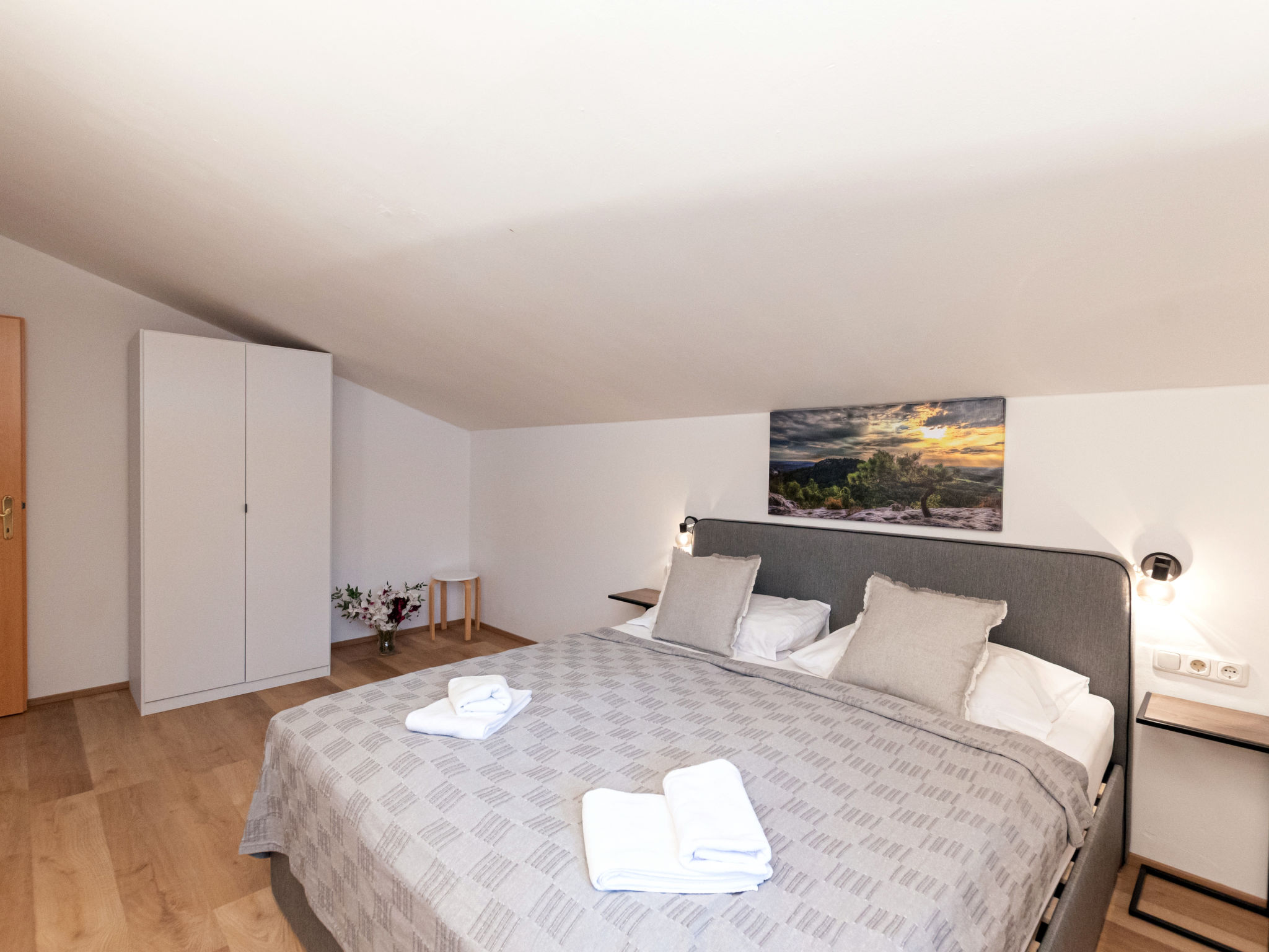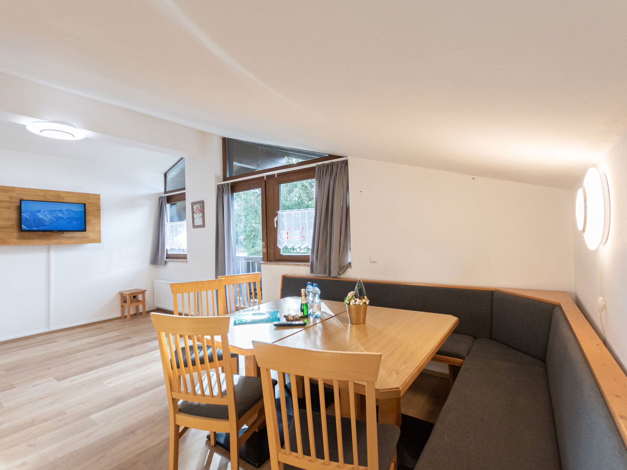 "Alpenchalets", 5-room apartment 100 m2 on 1st floor. Renovated in 2019, cosy furnishings: 1 room with sloping ceilings with 1 double bed (160 cm). Exit to the balcony. 3 rooms with sloping ceilings, each room with 1 double bed (160 cm). With sloping ceilings kitchen-/living room (oven, dishwasher, 4 ceramic glass hob hotplates, toaster, kettle, microwave, electric coffee machine) with dining nook. Exit to the balcony. 2 showers/WC. Electric heating. Parquet floors. Balcony. Balcony furniture. Facilities: Internet (WiFi, free). Parking (2 cars). 1 pet/ dog allowed. 50628-001024-2020