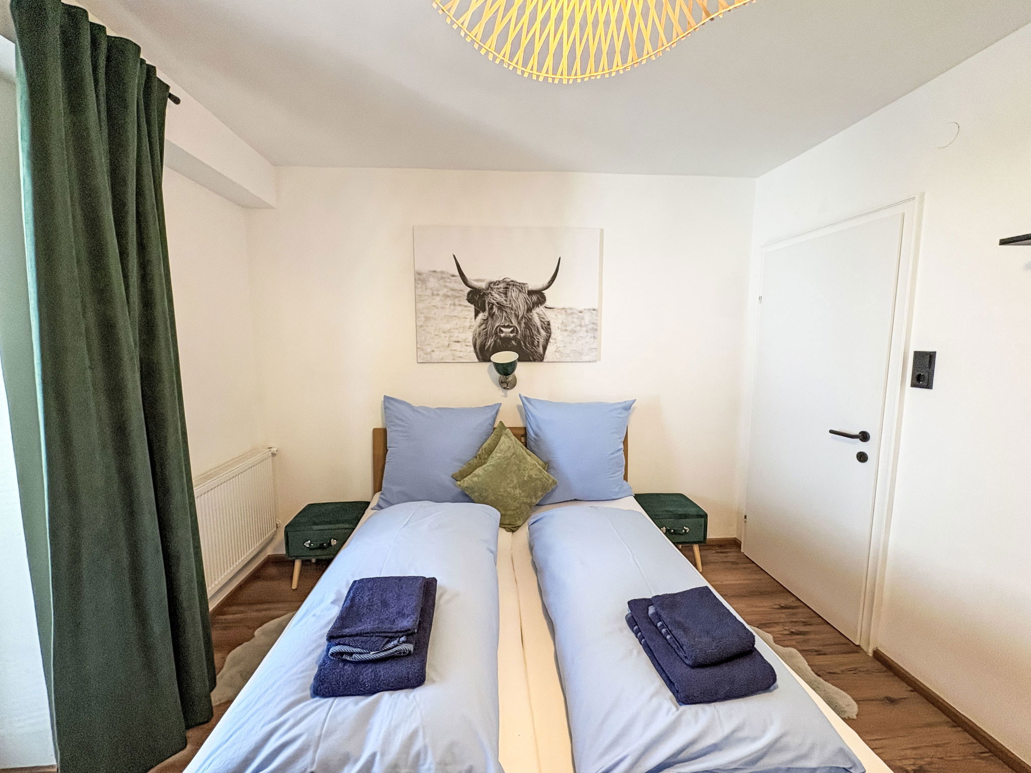 "Anny 3", 4-room apartment 78 m2 on 1st floor. Modern and tasteful furnishings: living/sleeping room with 1 bed, dining table and satellite TV. Living/sleeping room with 1 sofabed, dining table and satellite TV (flat screen). 2 double bedrooms. Open kitchen (dishwasher, 2 ceramic glass hob hotplates, kettle, electric coffee machine). 2 showers/WC. Electric heating. Balcony terrace. Terrace furniture. Side view of the lake. Facilities: washing machine (extra). Internet (WiFi, free). Please note: non-smokers only. 1 pet/ dog allowed. Smoke alarm. 50628-001695-2025