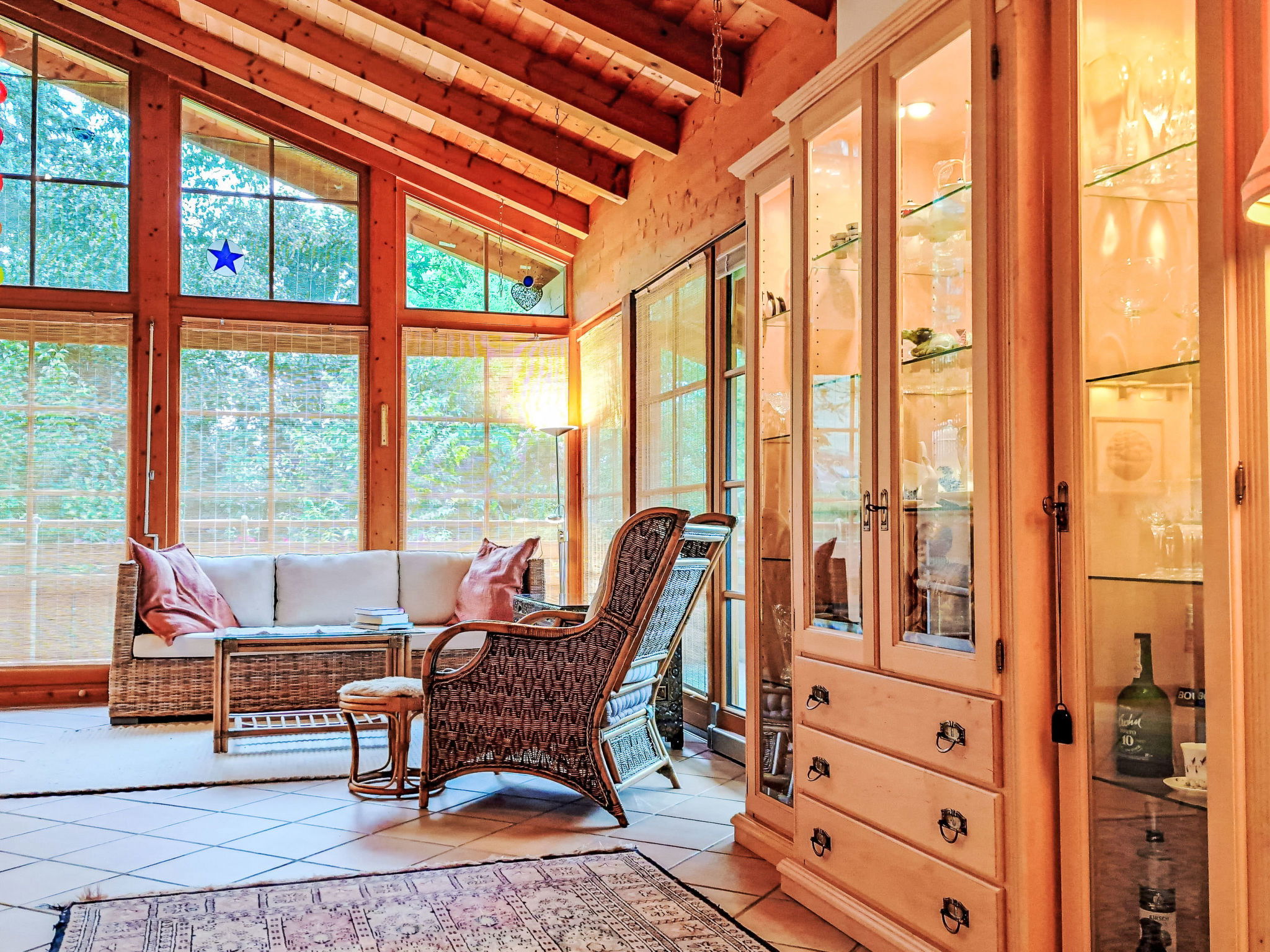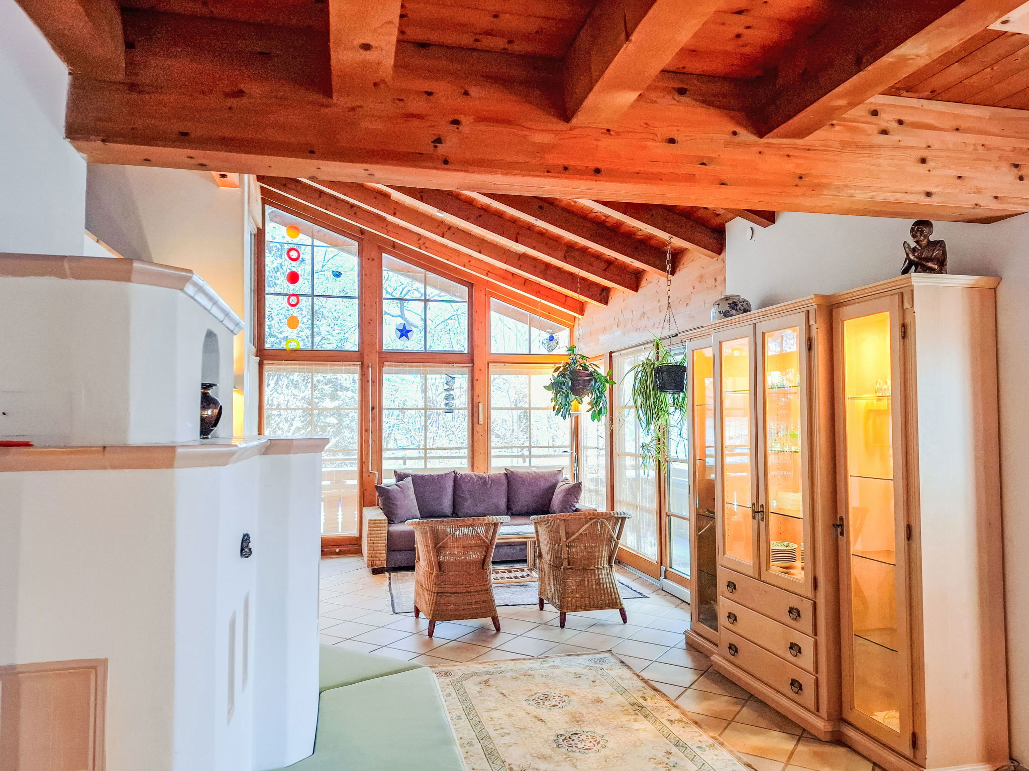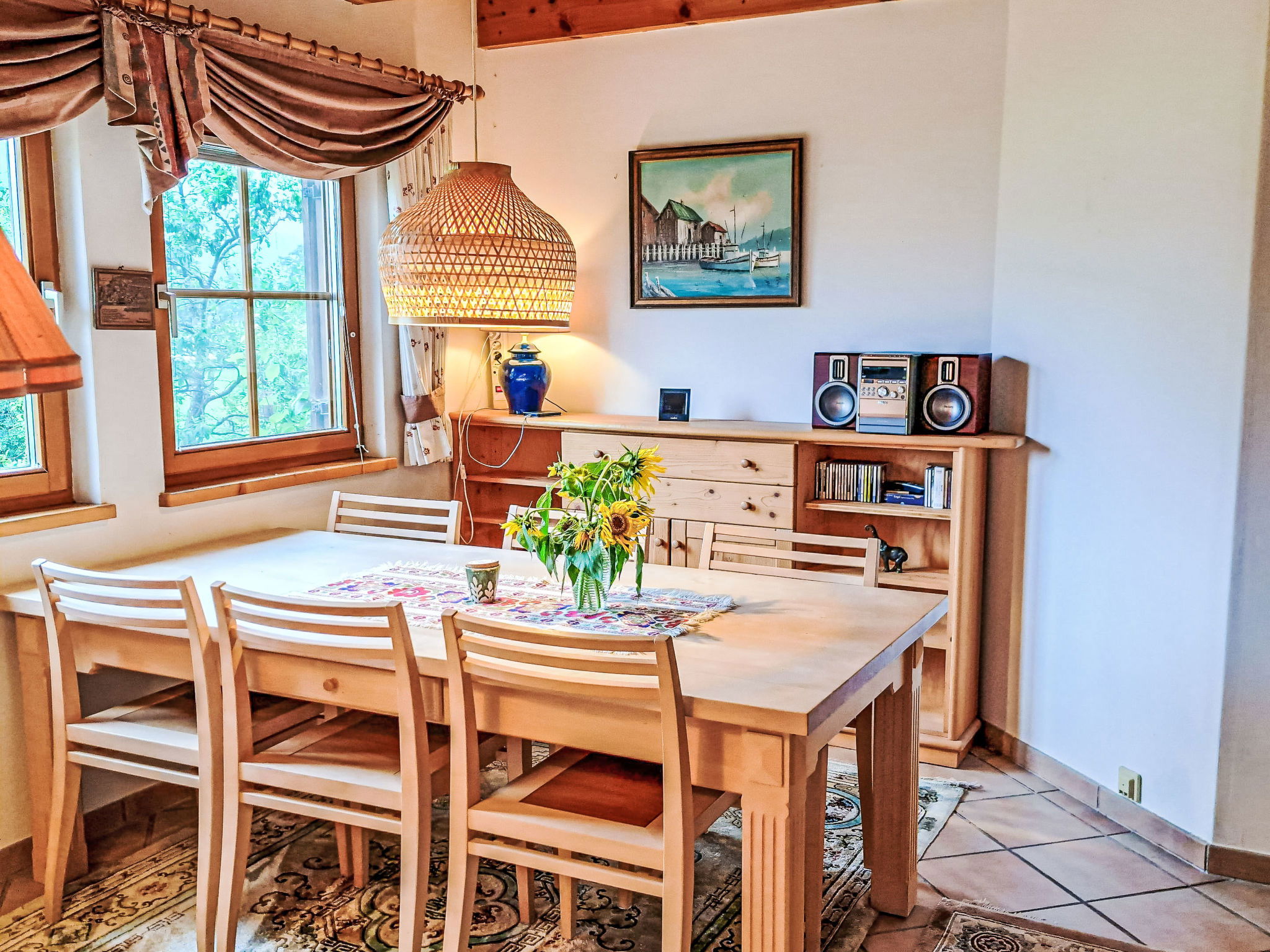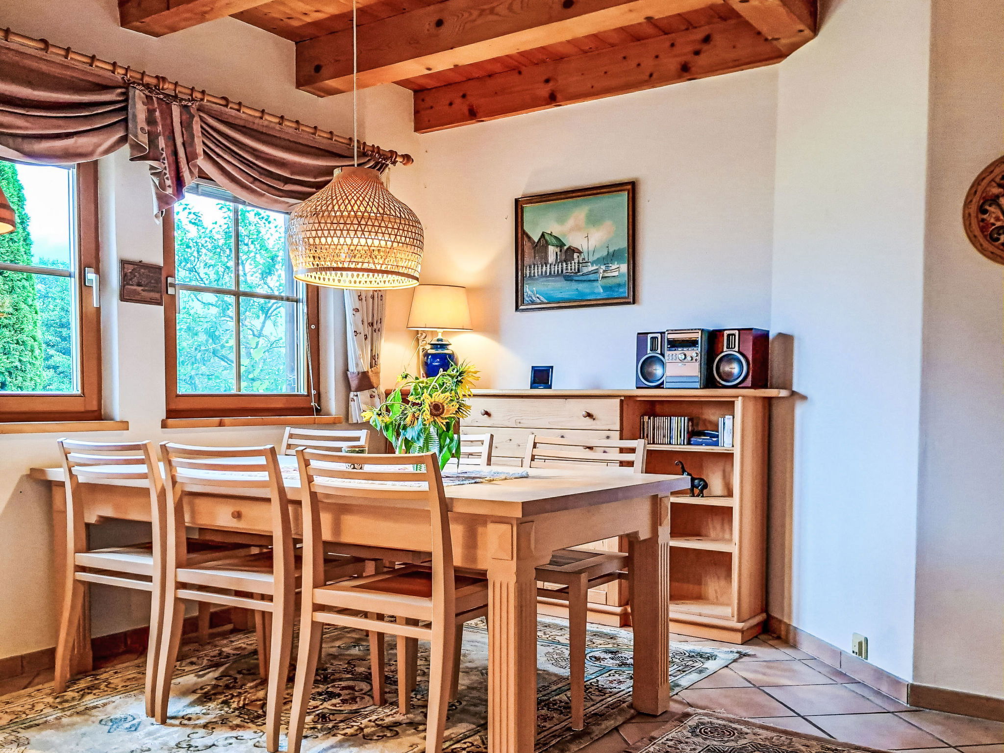 "Martinsklause", 4-room apartment 120 m2. Comfortable and tasteful furnishings: entrance hall. Living/dining room with dining table, dining nook and satellite TV. 1 double bedroom. Large kitchen (oven, dishwasher, 4 ceramic glass hob hotplates, toaster, kettle, freezer, electric coffee machine). Sep. WC. Upper floor: 1 double bedroom with Dressing room with bath/shower/WC. Exit to the balcony. 1 double bedroom with shower/WC. Exit to the balcony. Wooden floors. Large terrace, patio. Barbecue. Beautiful view of the lake and the mountains. Facilities: Internet (WiFi, free). 2 pets/ dogs allowed. Beautiful spacious terrace and fantastic garden! 50611-002133-2020