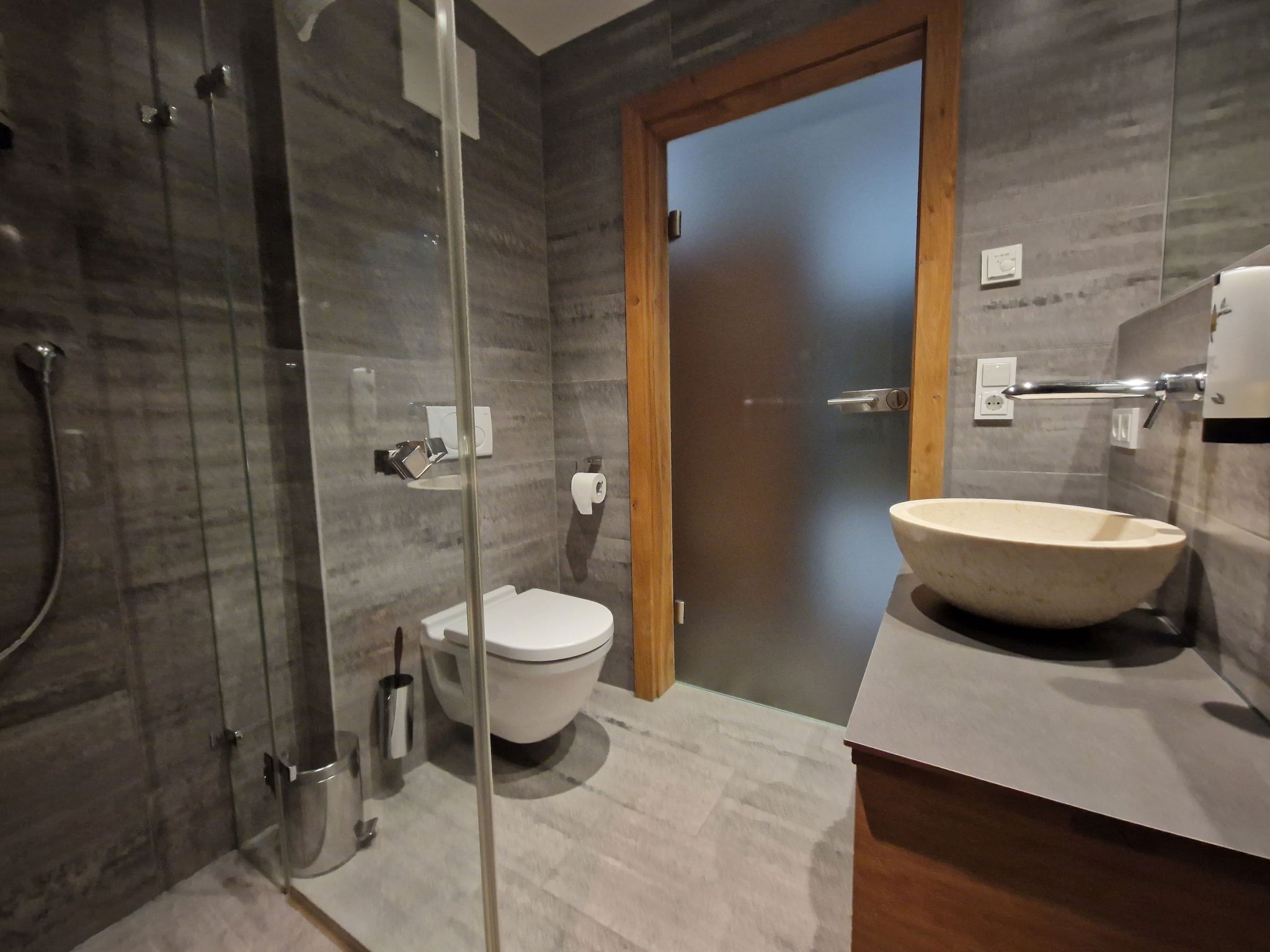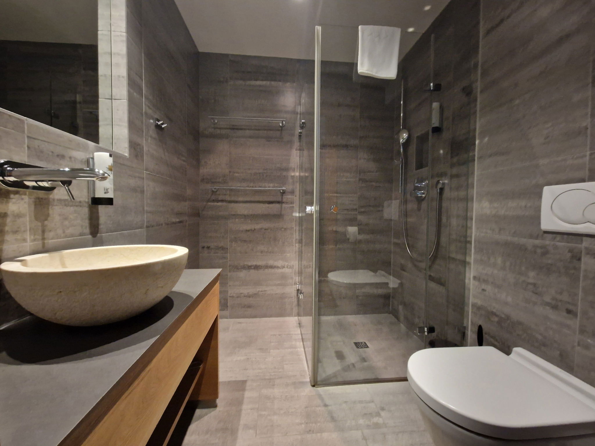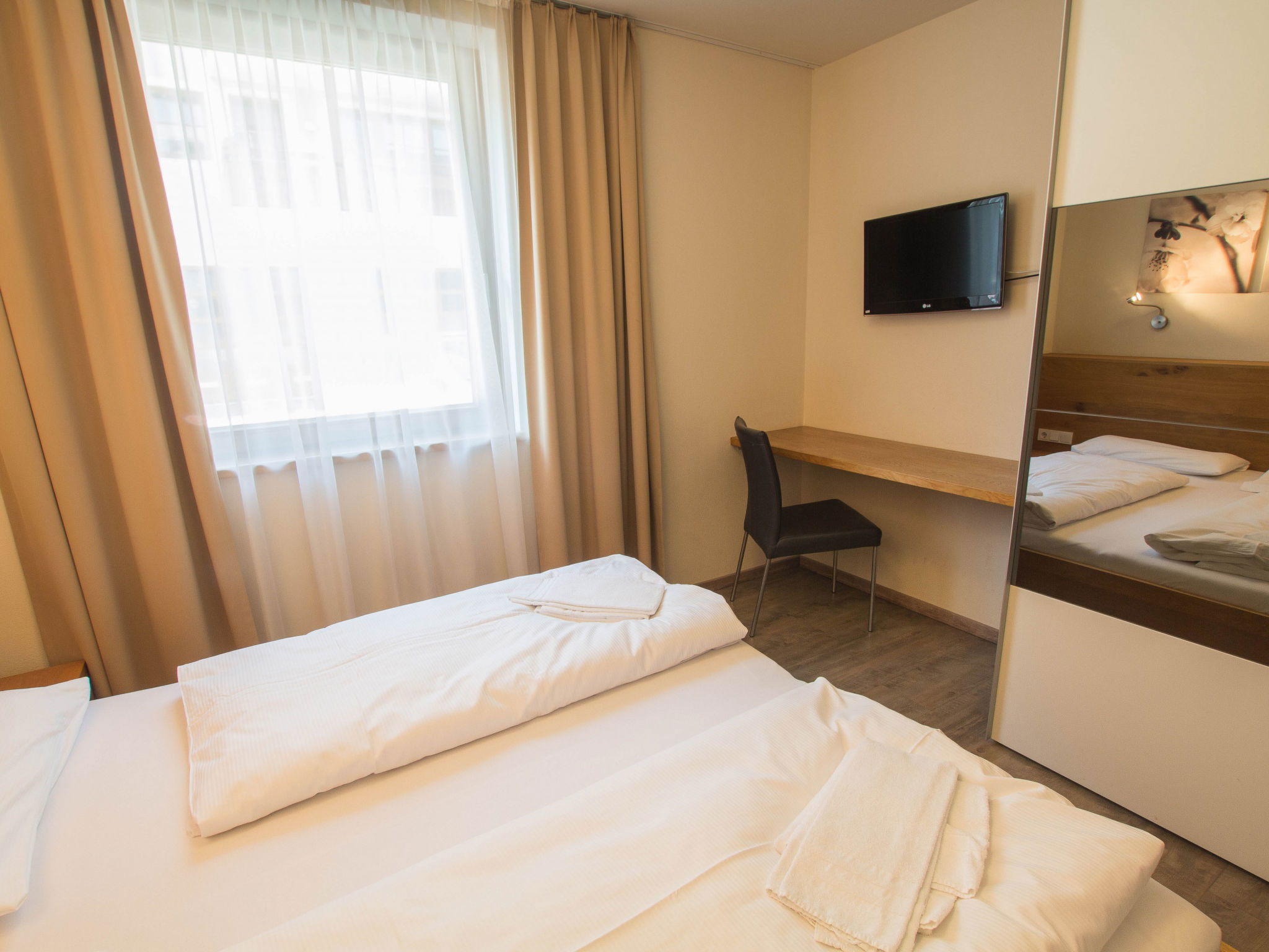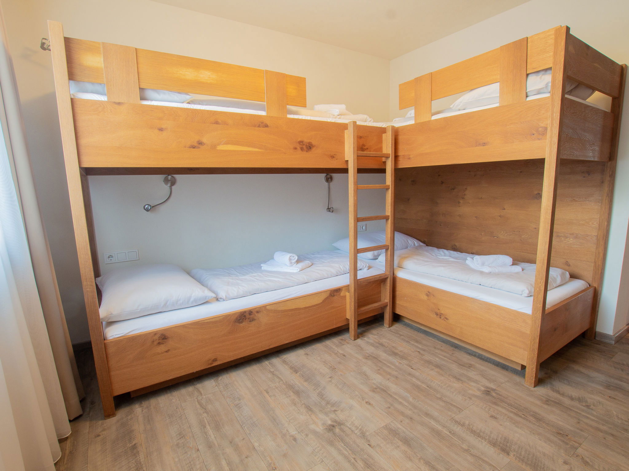 "Max Residence im Zentrum mit Terrasse, Garage", 4-room apartment 90 m2. Object suitable for 8 adults. Living room with TV and DVD. 1 room with 1 double bed and TV. 1 room with 1 double bed and TV. 1 room with 2 x 2 bunk beds, TV. Open kitchen (4 hot plates, oven, dishwasher, toaster, kettle, microwave, freezer, electric coffee machine). 2 showers/WC. Terrace 30 m2. View of the garden. Facilities: washing machine, dryer, iron, hair dryer. Internet (WiFi, free). Please note: non-smokers only. Maximum 1 pet/ dog allowed. 50628-001563-2022