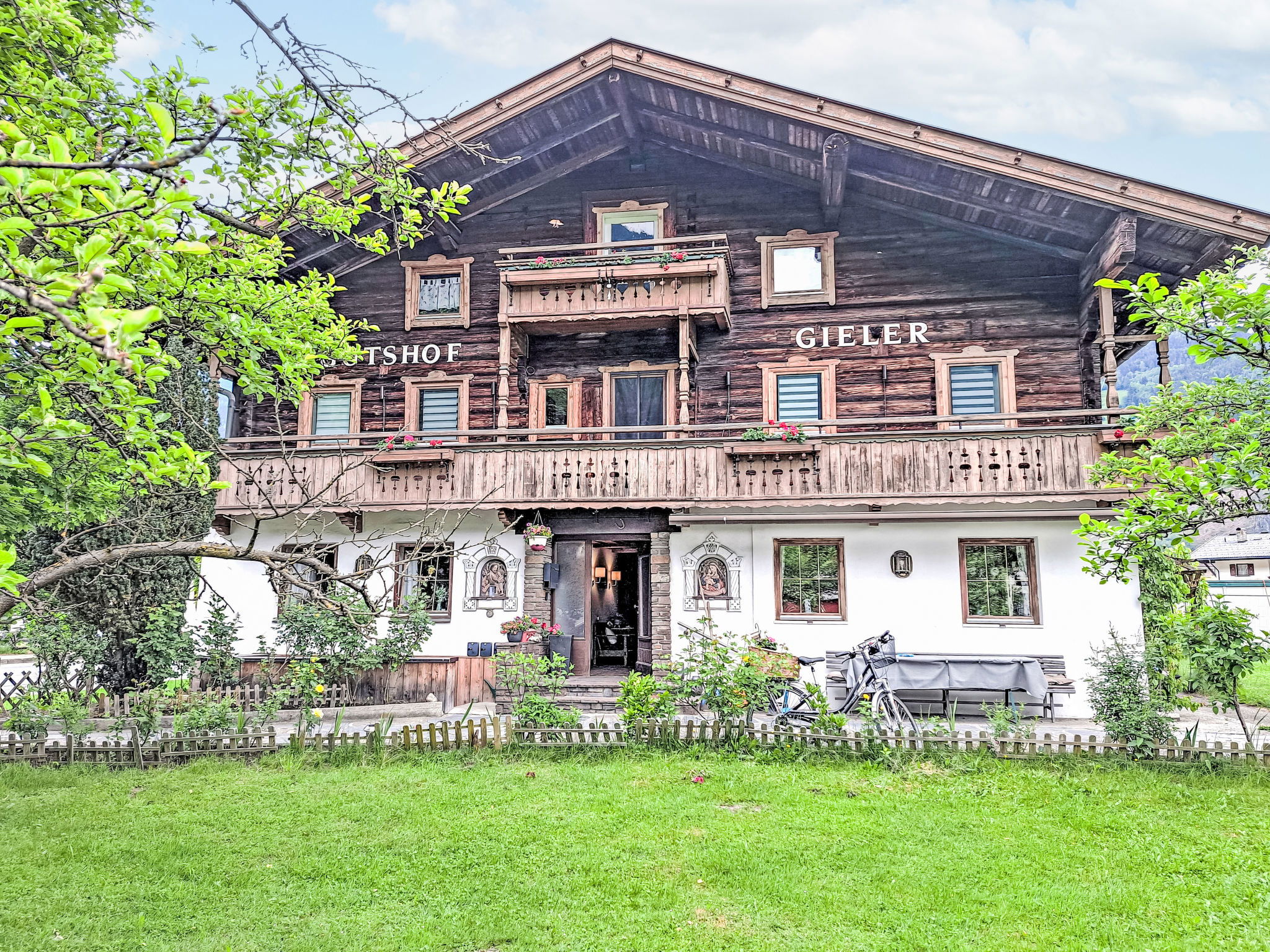 Beautiful farmhouse "Gielerhof". 5 apartments in the property. 500 m from the centre of Zell am Ziller, 8 km from the centre of Mayrhofen, in a central position, 4 km from the lake, 1.1 km from the skiing area. For shared use: property with trees, natural garden, meadow. Terrace, garden furniture. In the house: storage room for skis, ski boot dryer. Motor access to the house. Parking on the premises. Supermarket 50 m, restaurant 200 m, bus stop "Zell a.Z. Rosengarten" 190 m, railway station "Zell a.Z. Bahnhof" 750 m, outdoor swimming pool 500 m, indoor swimming pool 8 km, bathing lake "Aufenfeld" 4 km. Golf course (18 hole) 15 km, walking paths from the house, cycle lane 500 m, ski lift 1.1 km, gondola lift 1.1 km, ski bus stop 100 m, cross country ski track 50 m. Well-known ski regions can easily be reached: Zillertal Arena 1.1 km. Please note: the owner lives in the same residence. Additional accommodations can be booked.