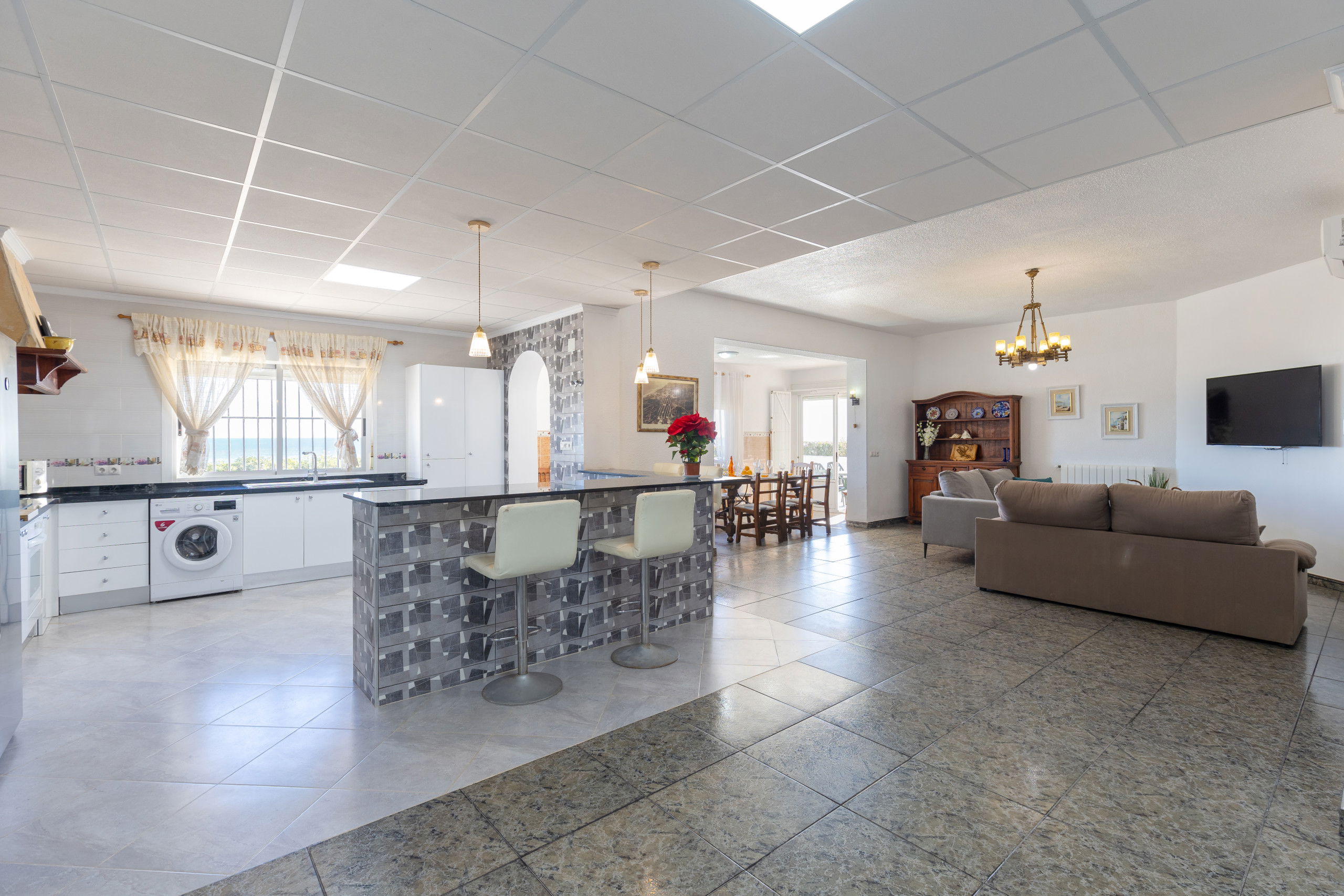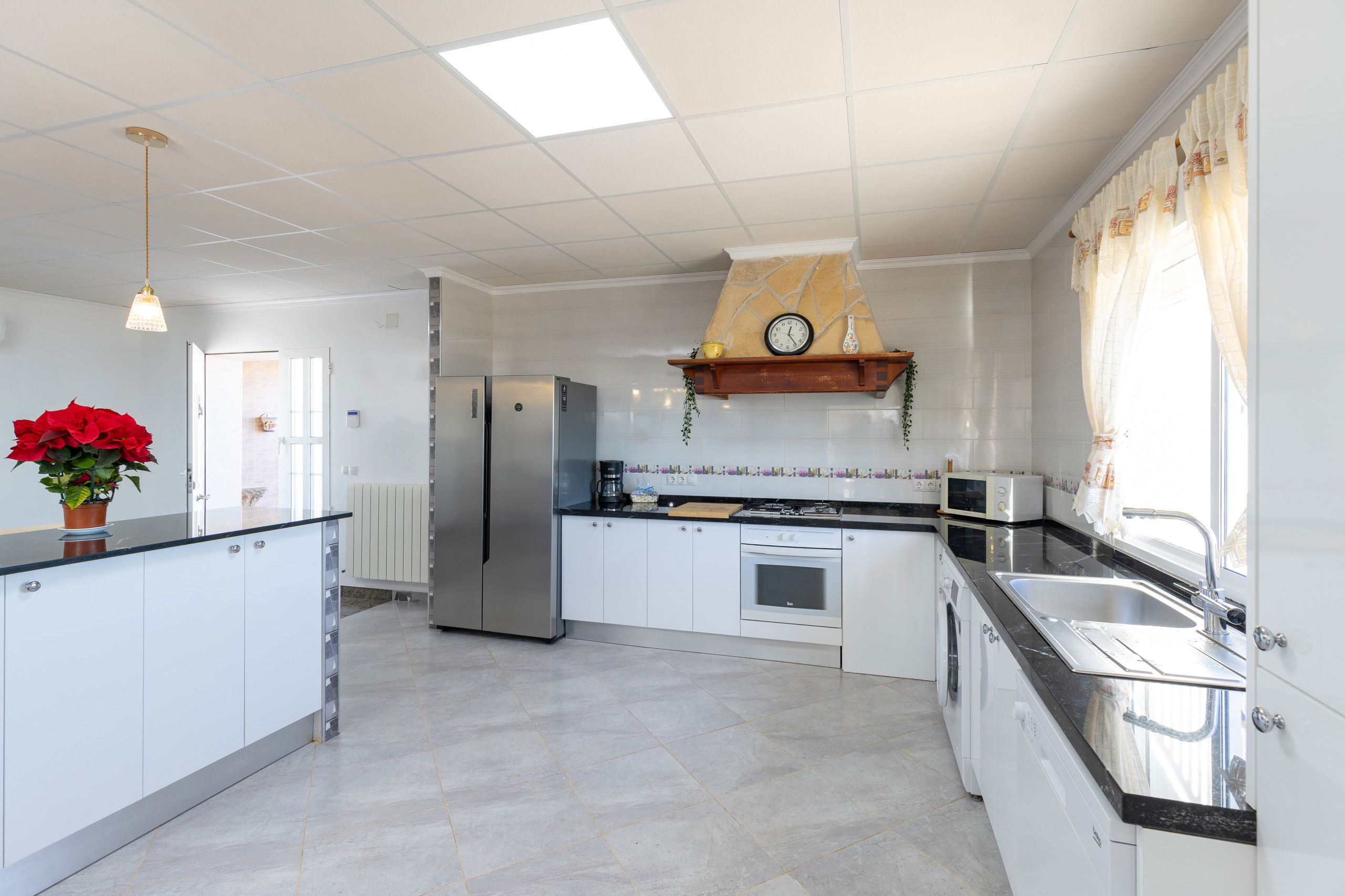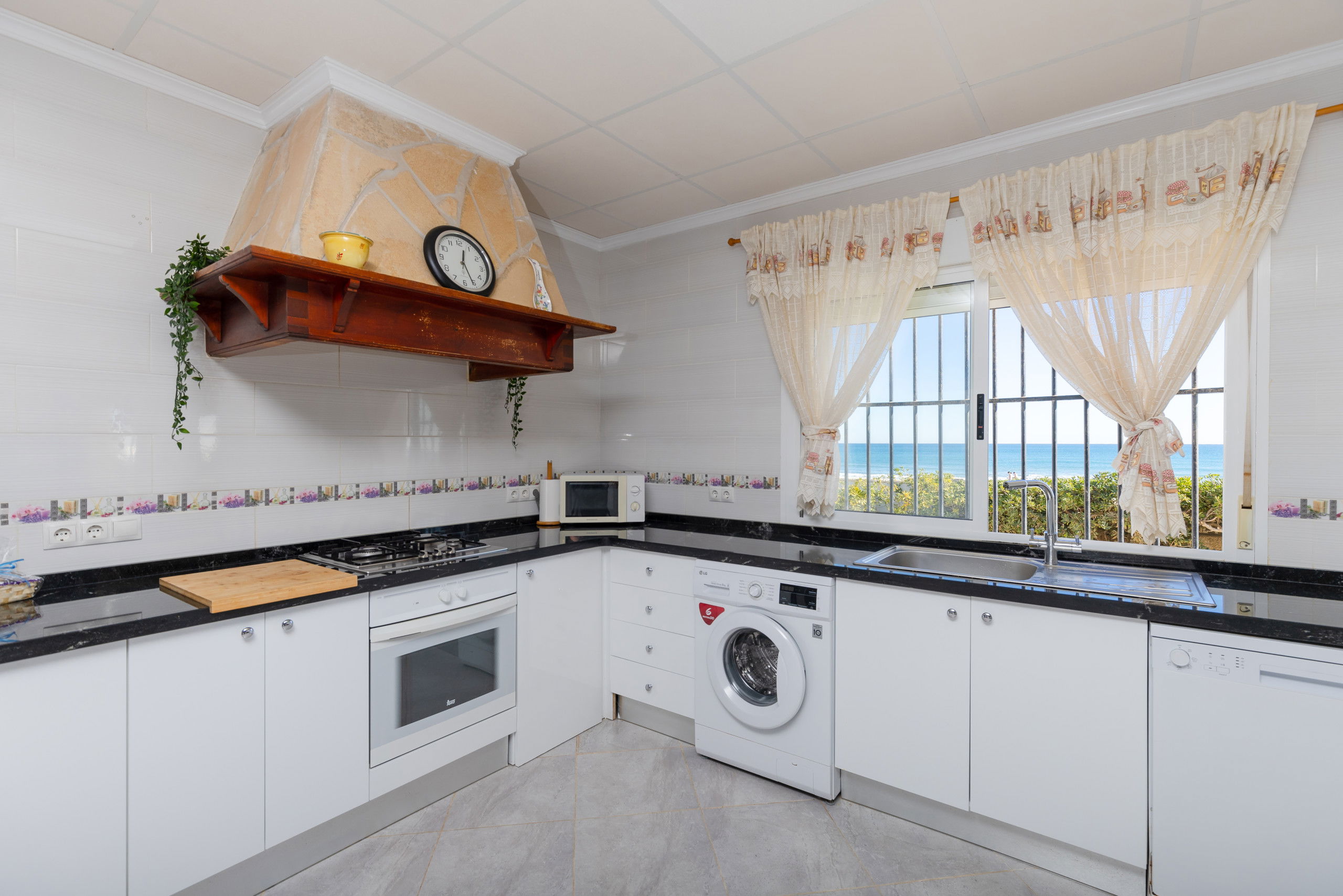 The independent kitchen, completely renovated in 2021 and the 4 bathrooms, all new also renovated in 2021, is equipped with a fridge, microwave, oven, freezer, washing machine, dishwasher, dishes/cutlery, kitchen utensils, coffee maker, toaster, kettle, and juicer.