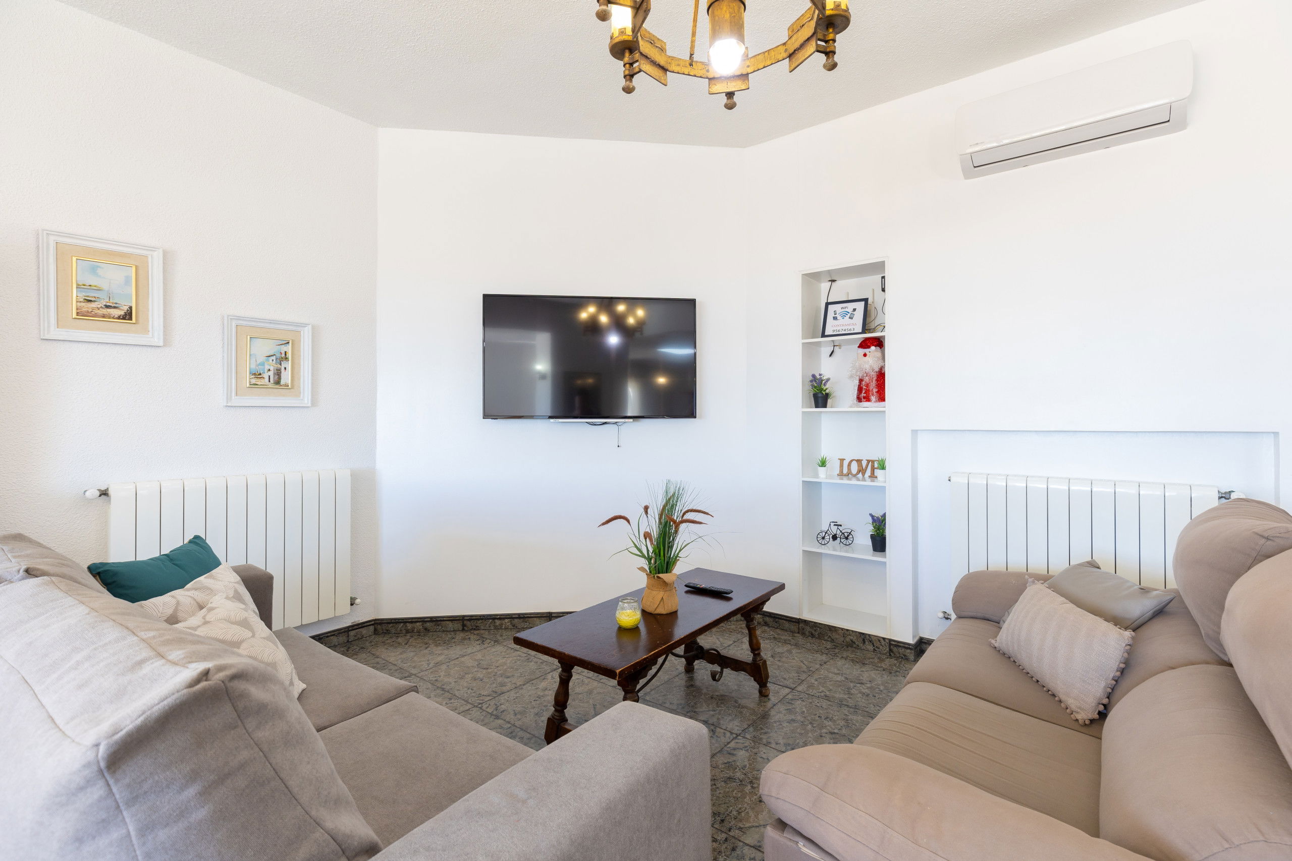 It has a garden, garden furniture, fenced plot, terrace, barbecue, iron, internet access (Wi-Fi), hairdryer, balcony, heat pump heating, air conditioning in some bedrooms, open-air parking in the same building, 1 TV.