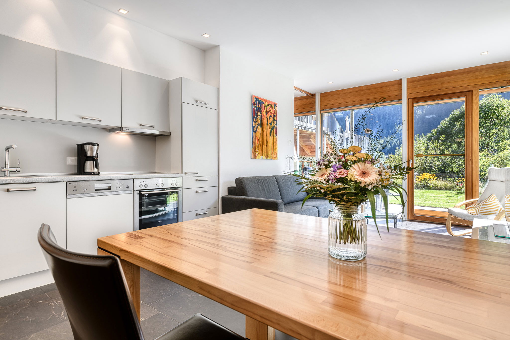 The almost completely glazed exterior walls offer you a unique panoramic view of the breathtaking mountain world without having to sacrifice privacy. Surrounded by nature and with hardly any neighbours, you can feel completely undisturbed - and the blinds can be closed at any time for added security.