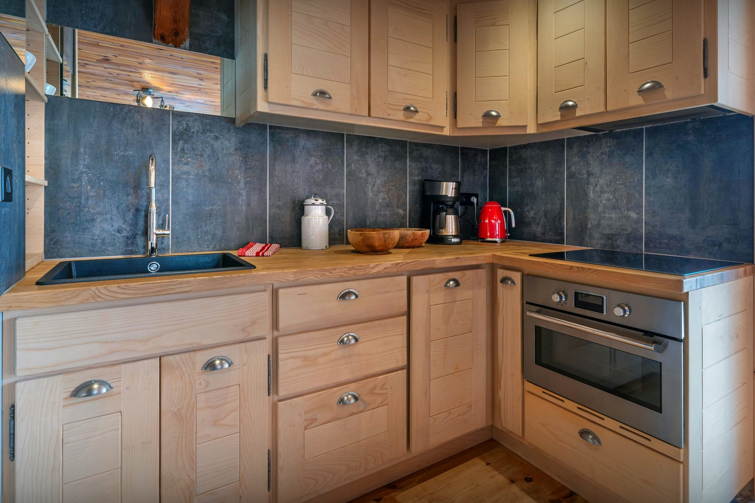 Step into a spacious open-plan living area, which is divided into a cosy living room, with a dining table, armchairs and a wood-burning stove, and a brand new kitchen, fully equipped with everything you might need to cook up a hearty meal. Several doors open on to a furnished terrace, where you’ll be able to take your meals if the weather allows.