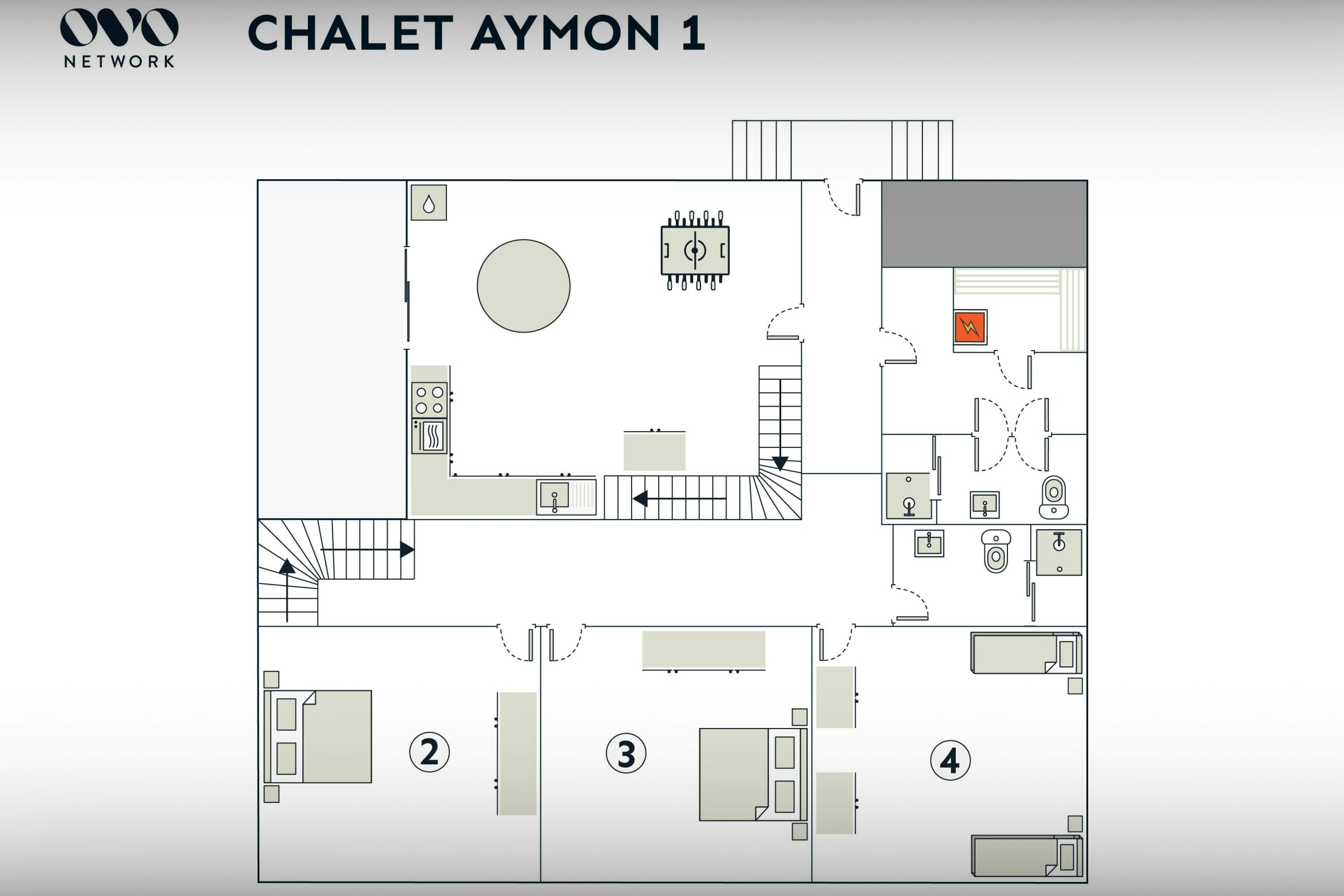 Chalet Aymon can accommodate up to 10 guests in 4 bedrooms and 4 bathrooms, built over 3 floors.