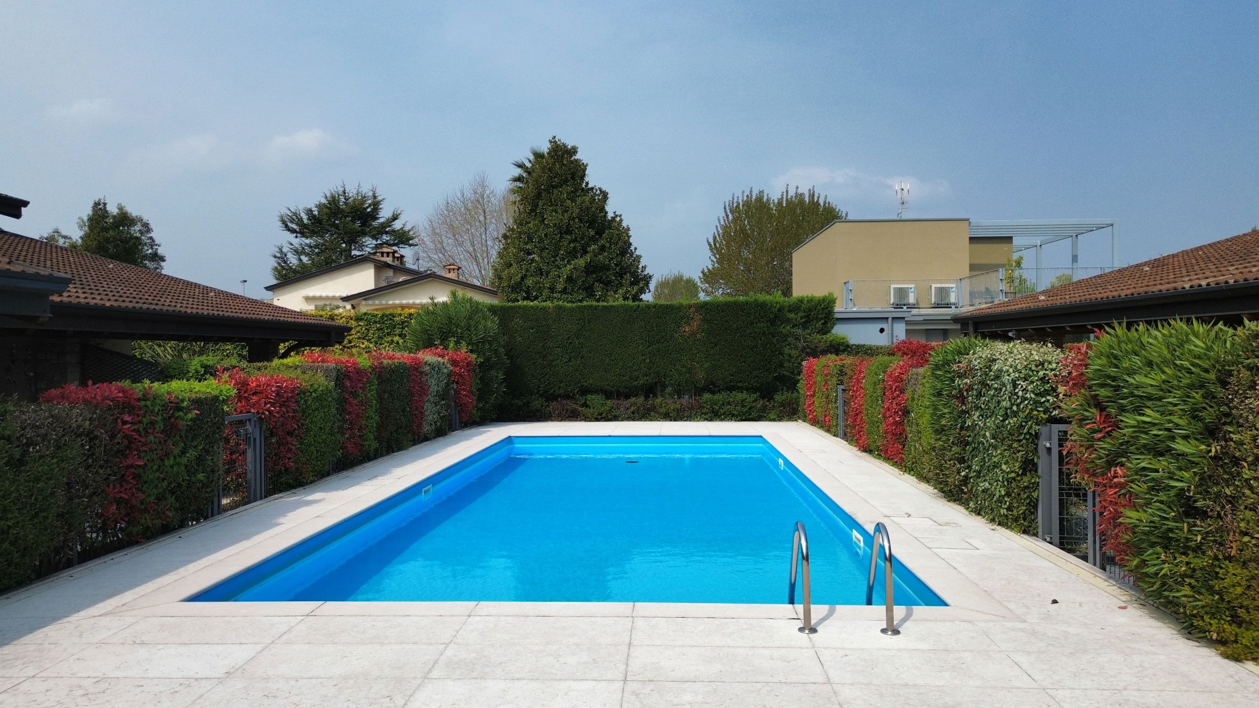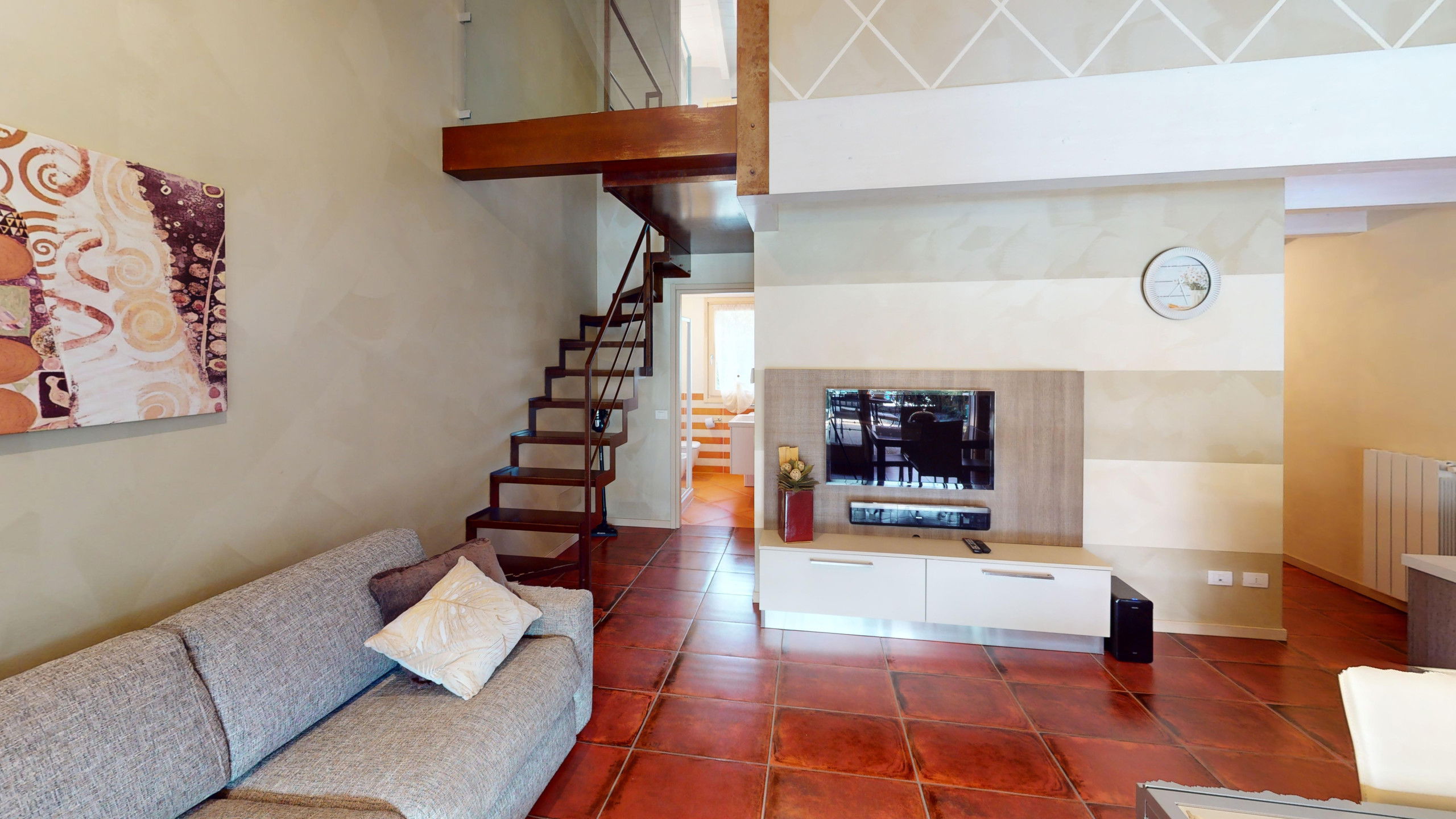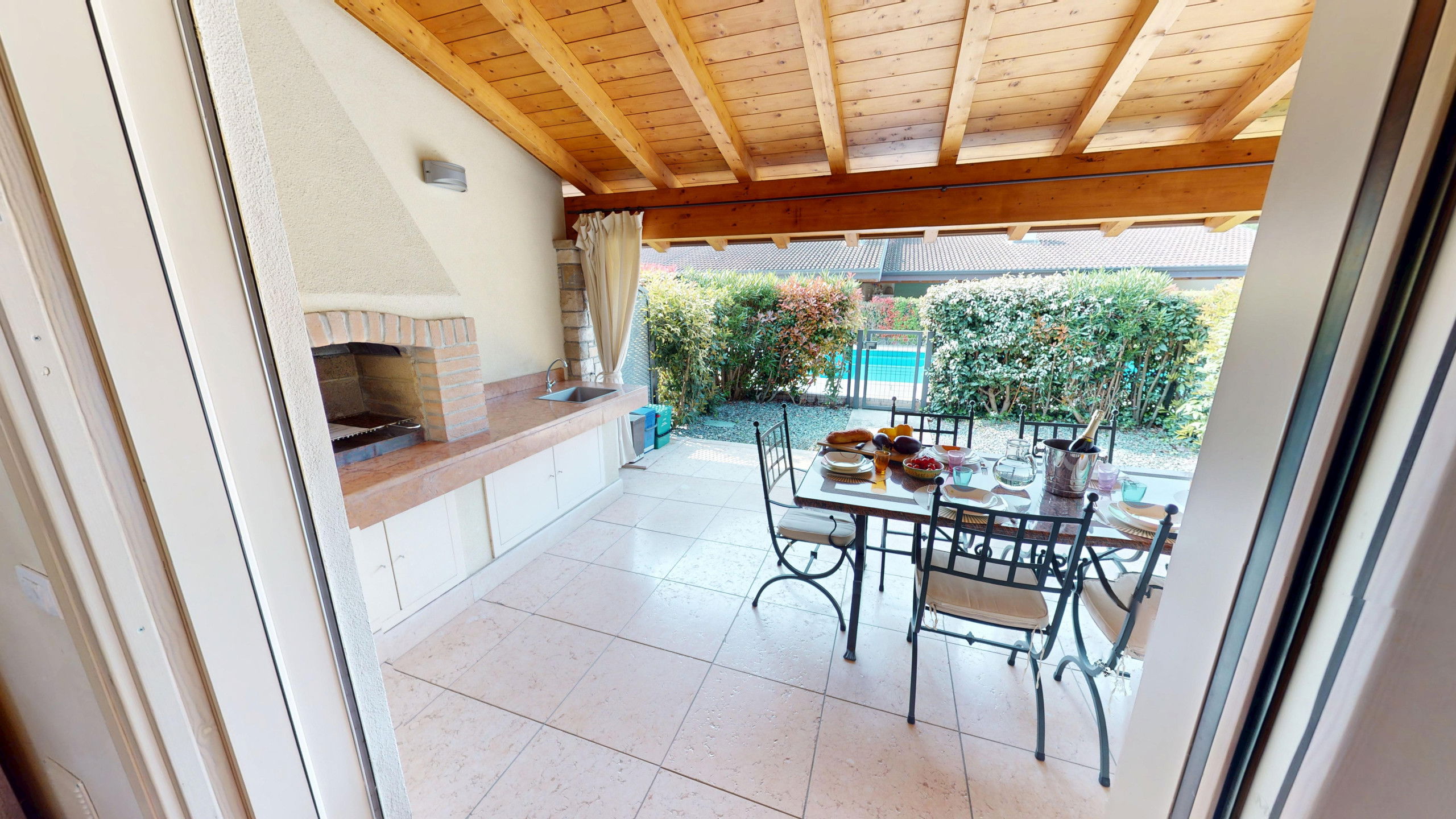 On the ground floor, a spacious living area invites you to relax between natural light and carefully designed spaces, with direct access to the external porch: here the barbecue fireplace, the large table and the view of the pool create the ideal atmosphere for outdoor lunches and evenings under the stars. The fenced garden, equipped with a table and sunbeds, is the perfect place to enjoy relaxation between nature and privacy.