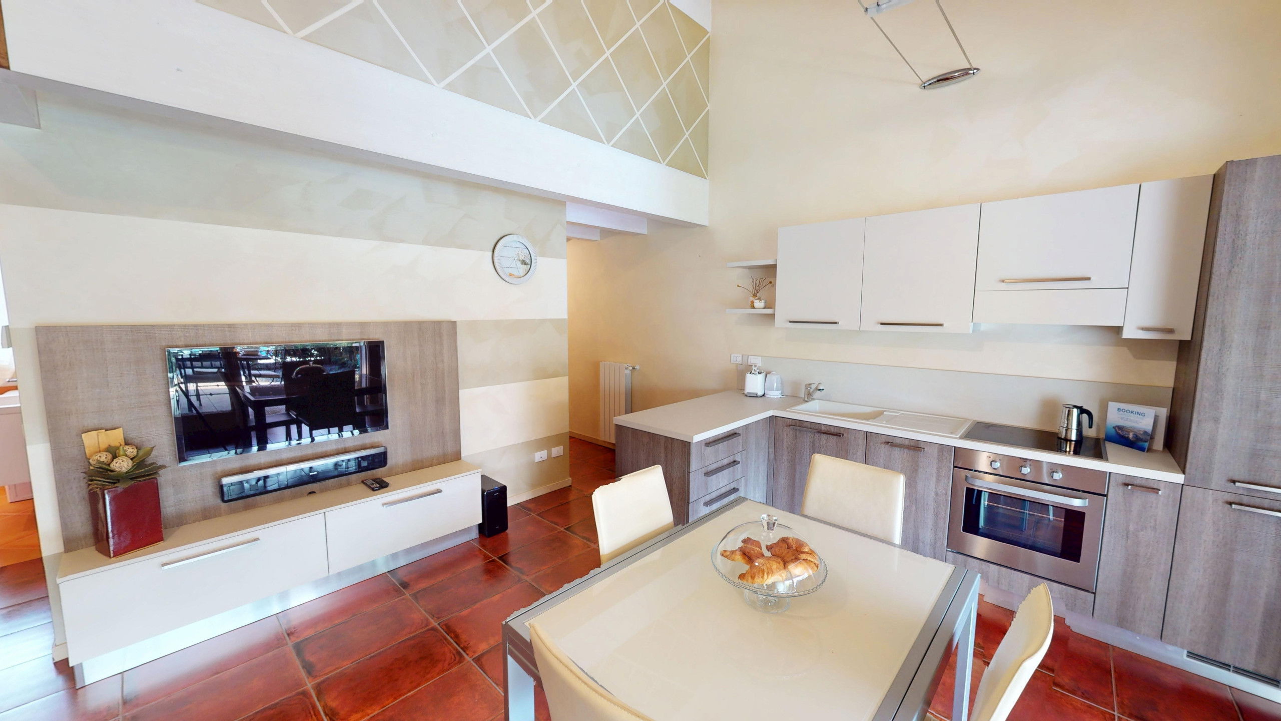 The apartment is completed by two modern bathrooms, a fully equipped kitchen, washing machine, air conditioning in every room, Wi-Fi connection and covered parking.