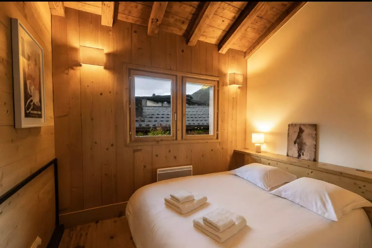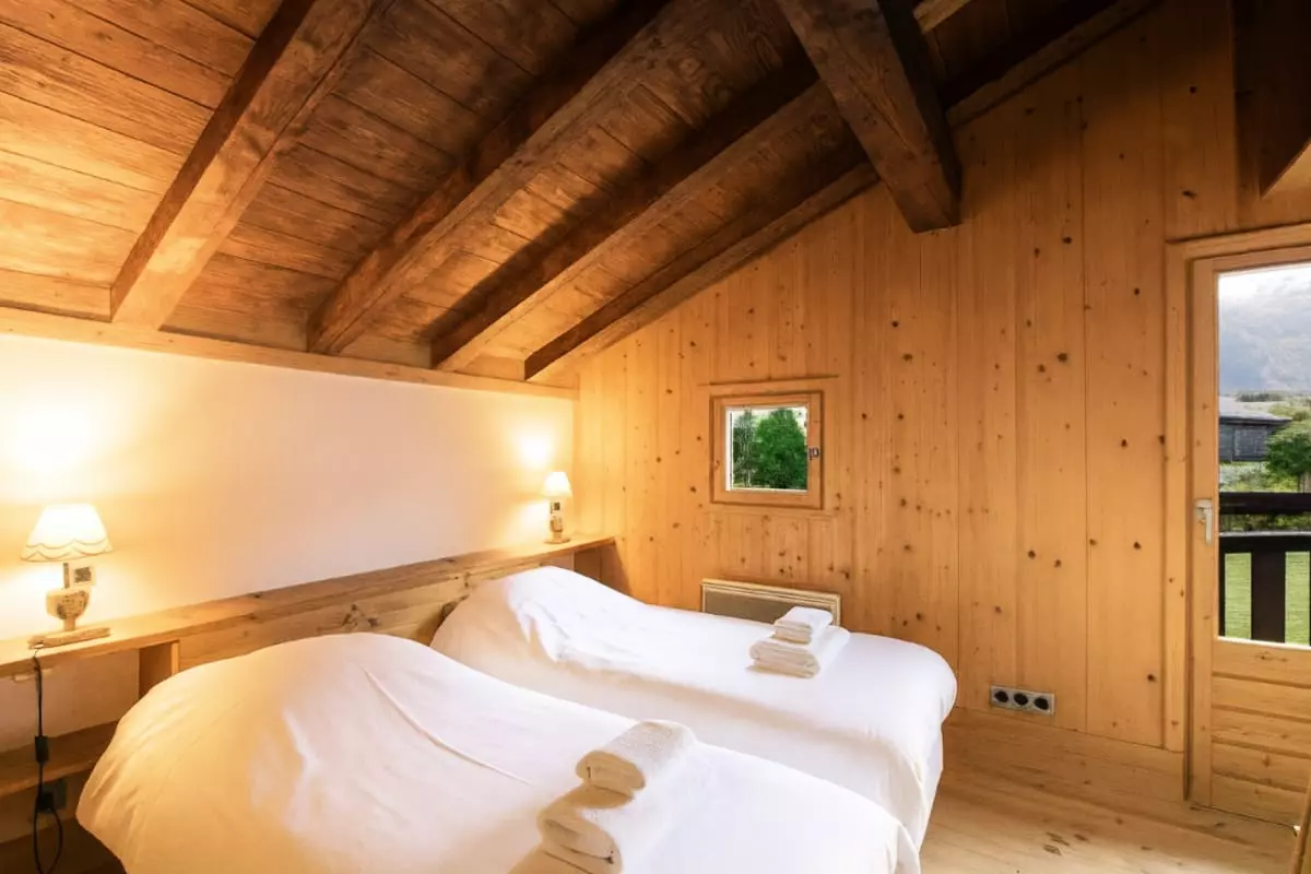 - 1 bedroom with 2 twin beds of 90 cm opening onto 1 balcony with magnificent view of the entire Mont Blanc range,