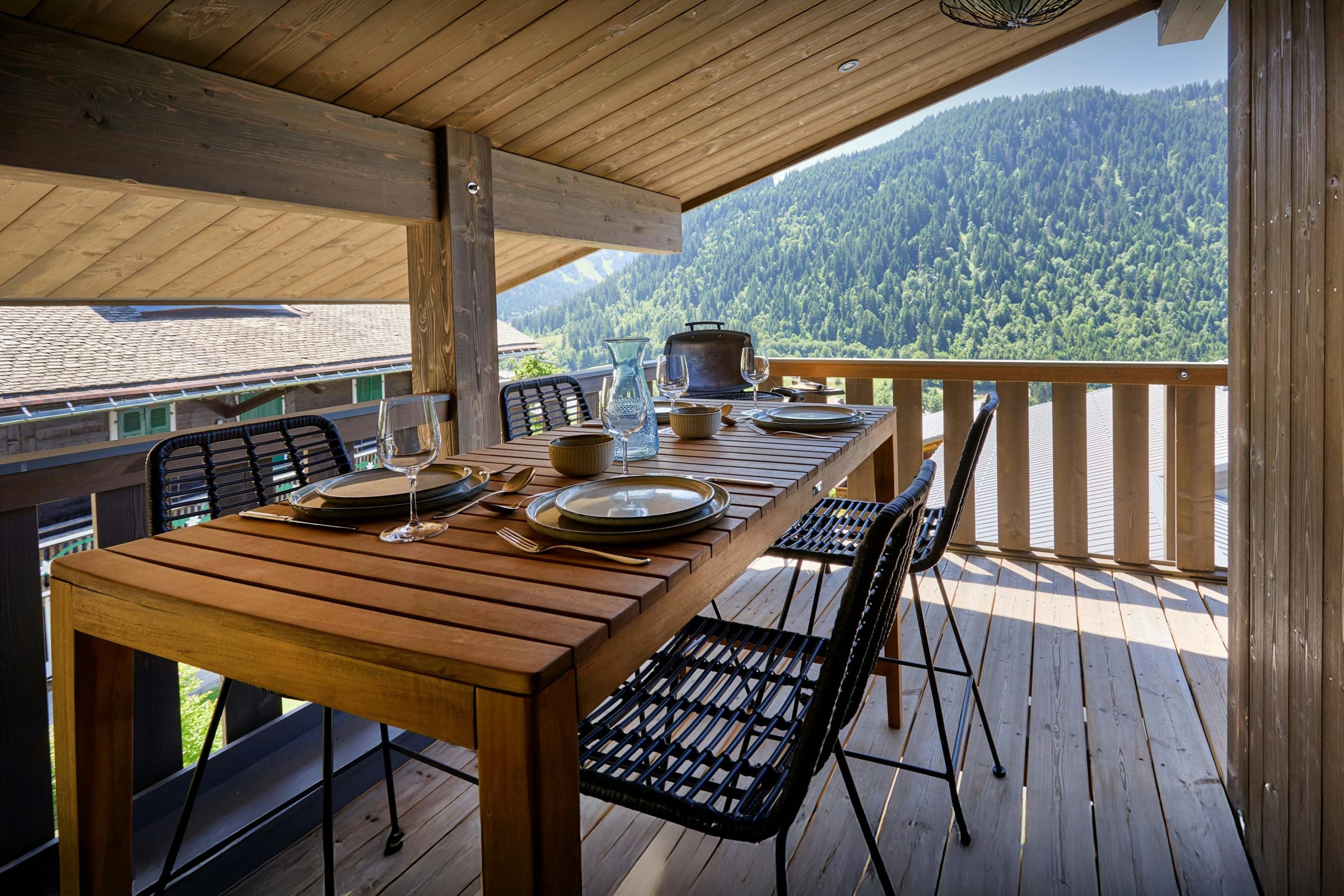 Putting the stylish living area on the top floor means it is full of light and enjoys great views. Whatever season you visit, you'll love relaxing on the balcony, perhaps with a drink before dinner or even enjoying a barbecue together.