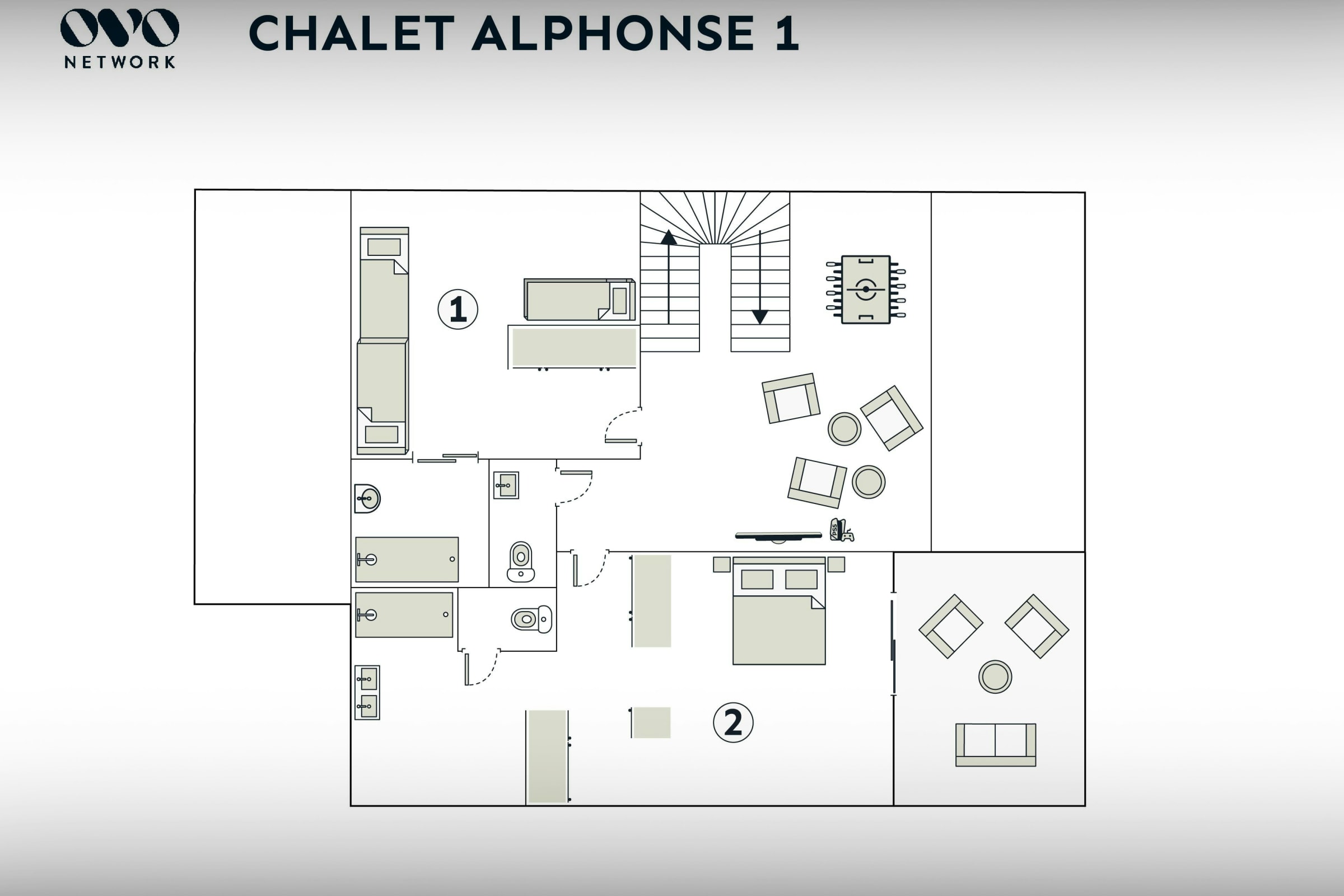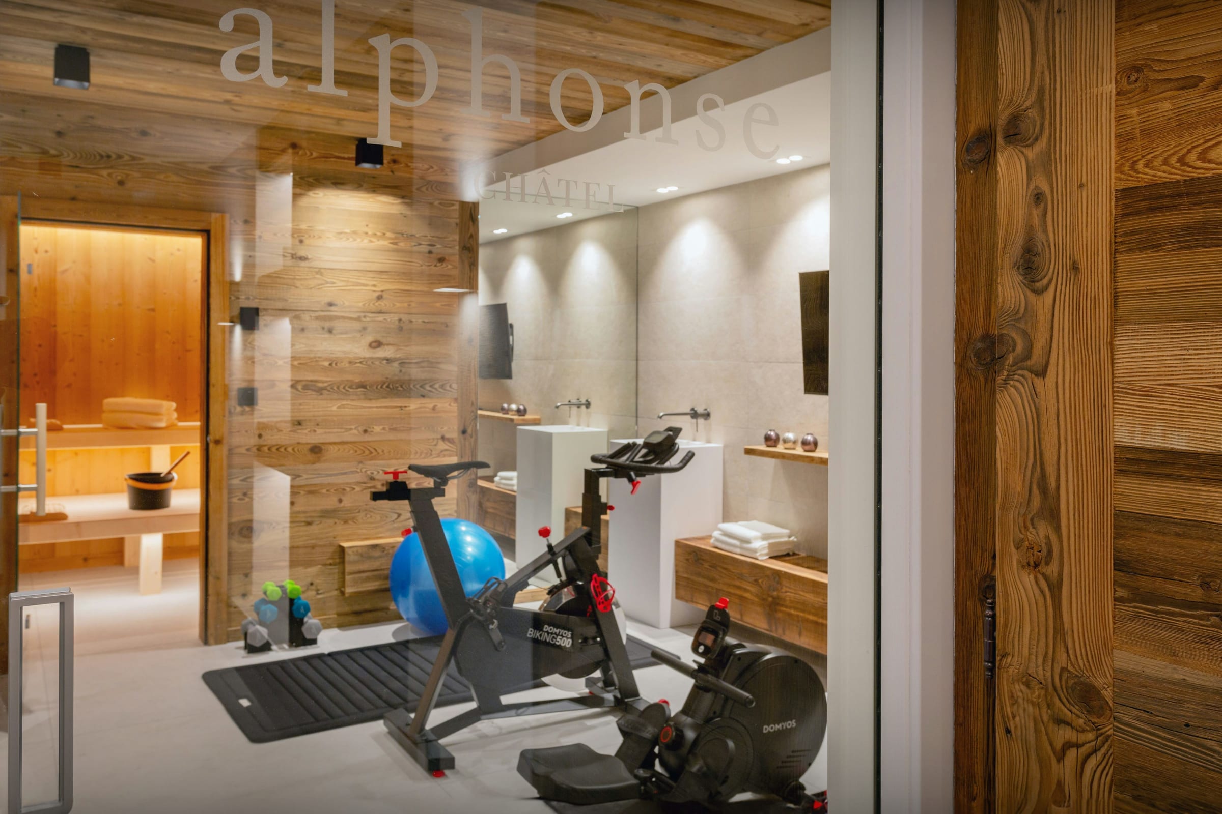 Chalet Alphonse is a three-storey chalet for up to 10 guests (eight adults) with four bedrooms, five bathrooms, a sauna, a hot tub and an exercise area. It also has all the equipment necessary to accommodate two babies.