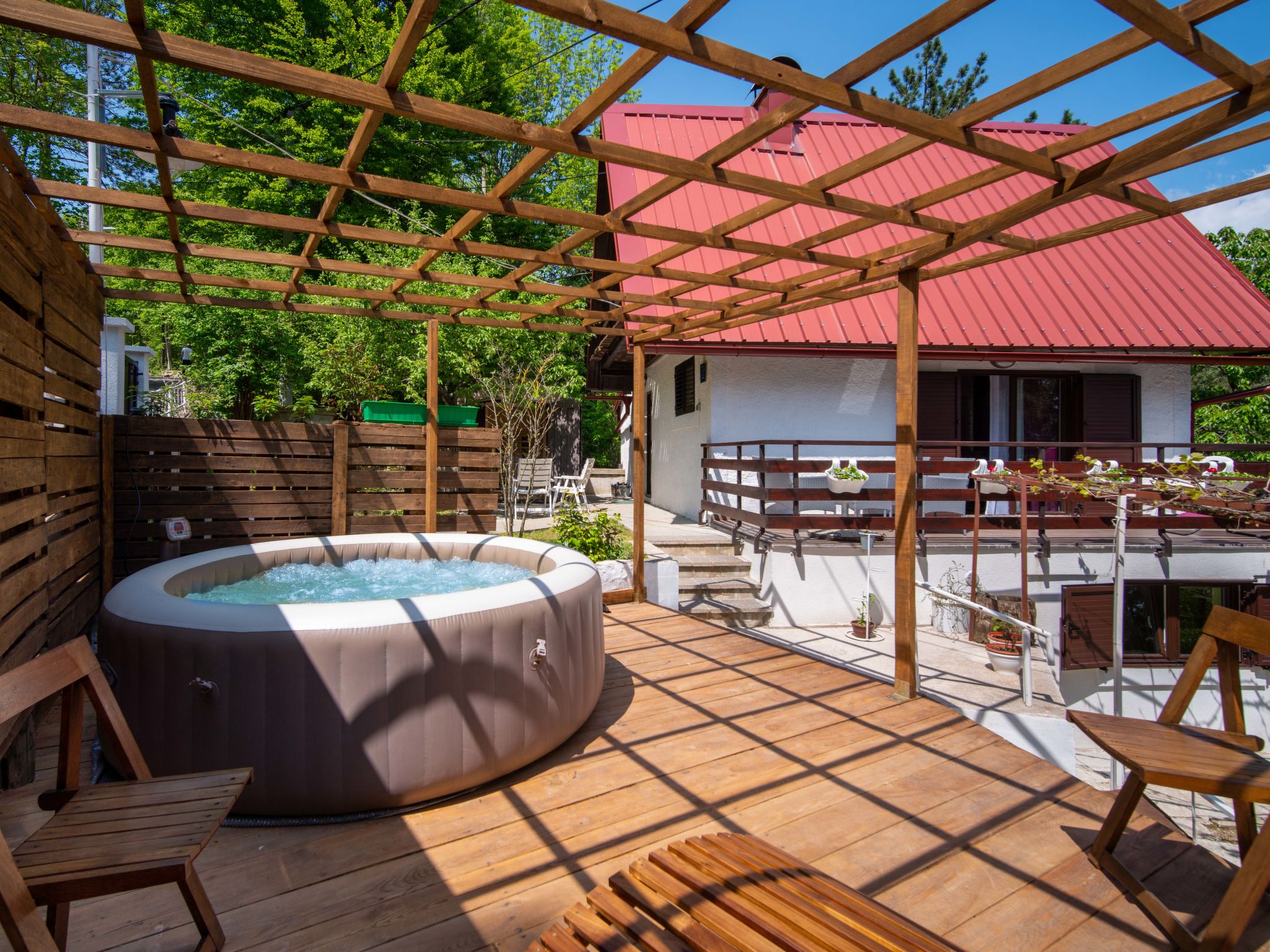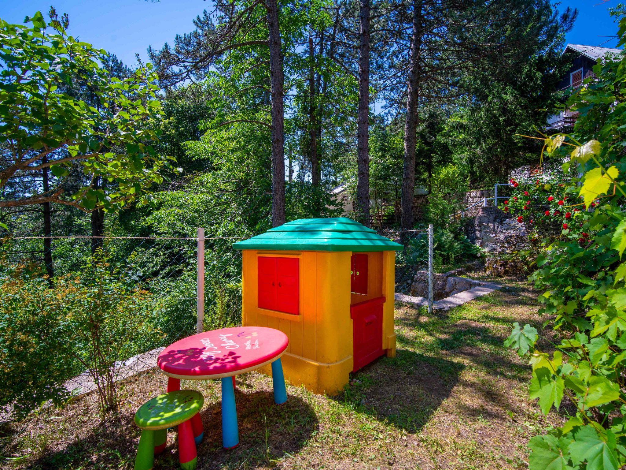 Lič 4 km from Fužine: Chalet "Nina", 3 storeys. 550 m from the centre of Lič, in a quiet, elevated position, 27 km from the sea, 3 km from the lake, in the countryside. Private: property 420 m2, wildlife garden and trees. Hot tub, barbecue. In the house: internet access, infrared sauna, central heating system. Parking (for 2 cars) at the house on the premises. Shop 550 m, restaurant 4.2 km, bus stop 4 km, railway station 4 km, pebble beach 27 km, concrete beach 27 km. Walking paths from the house, cycle lane 300 m, ice rink 17 km. Nearby attractions: špilja Vrelo 6 km. Well-known lakes can easily be reached: Bajer 3 km.