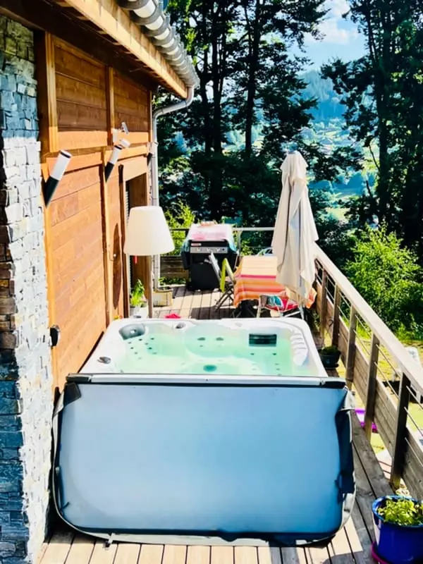 The jacuzzi is available all year round, while the swimming pool (swim spa) is accessible from May to September.