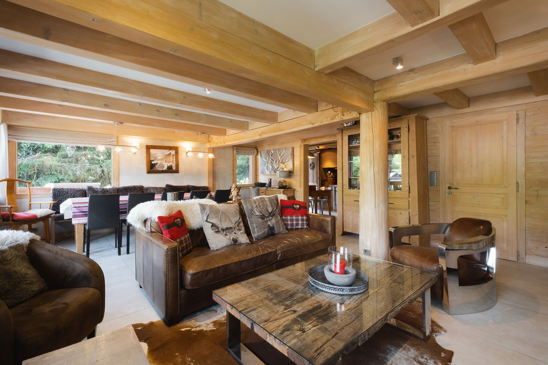 - LIVING ROOM (55.63 m²): eating place, lounge with FIREPLACE, flat screen TV, south facing windows, east facing bays windows + French window, east facing balcony / south facing terrace's access, village / mountain view