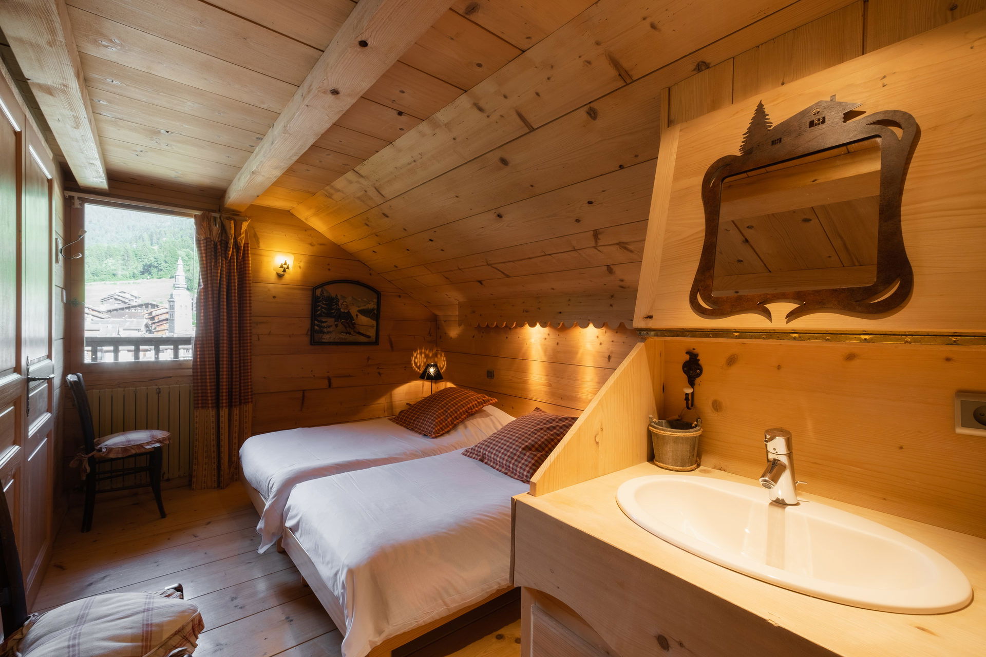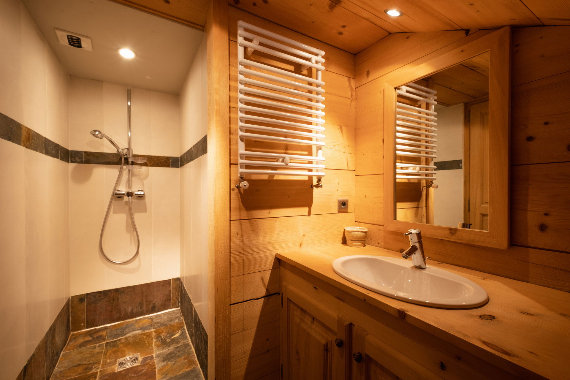 - BEDROOM (12.05 m² dont 2.73m² mansard roofed): 2 SINGLE BEDS (90), bathroom washbasin, shower, east facing window, village / mountain view + communicating BEDROOM (8.28 m²): 1 SINGLE BED (80), bathroom washbasin, shower, east facing French window, village / mountain view