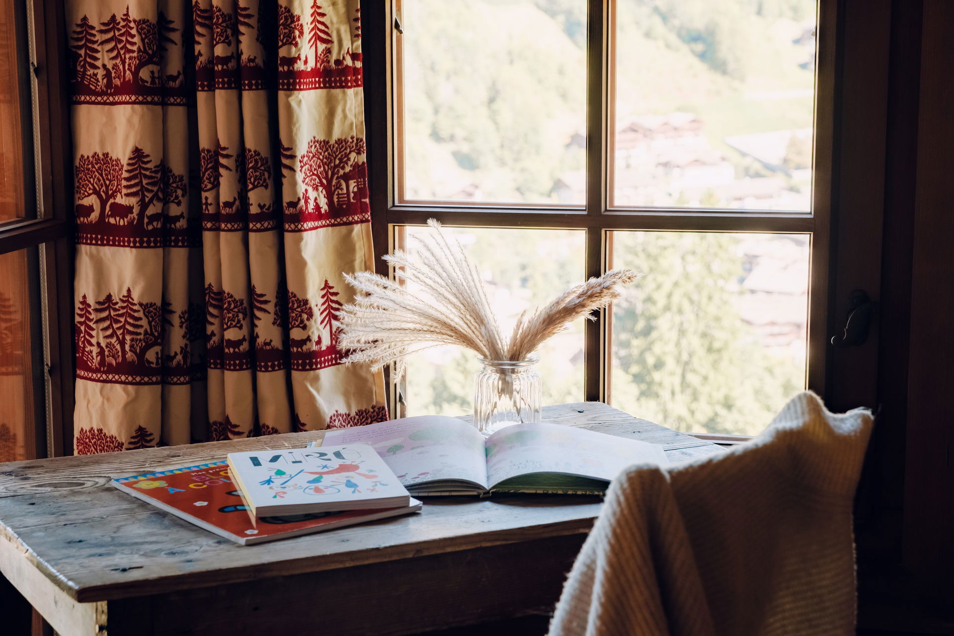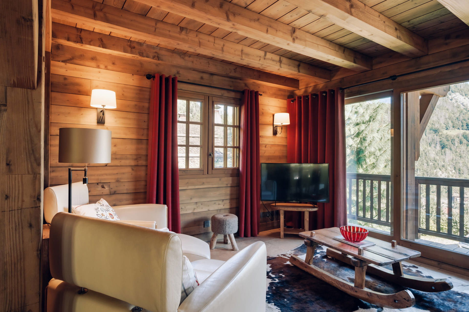 - LIVING ROOM (42.45 m²): TV lounge with a flat screen TV and a relaxing lounge with a FIREPLACE FROM SAVOY + eating place. North facing window, east facing sliding bay window+ balcony, east facing bay window, south facing sliding bay windows,west facing bay window + south west facing terrace, village / mountain view